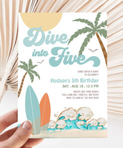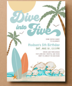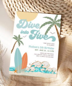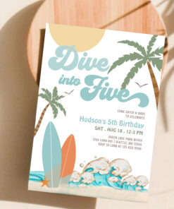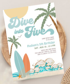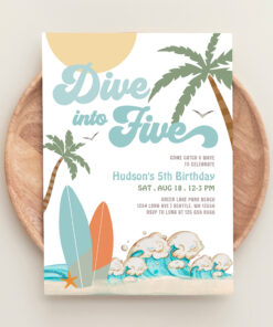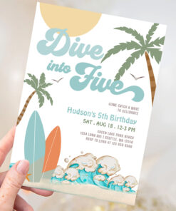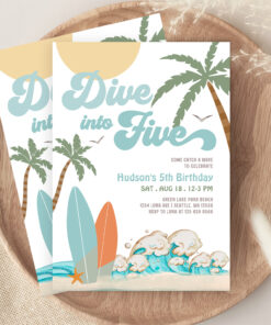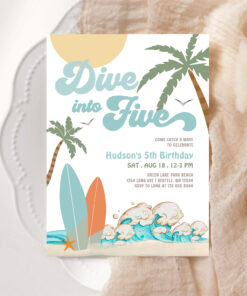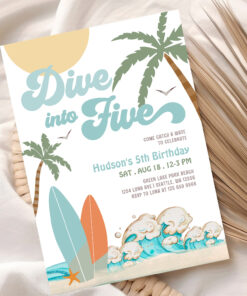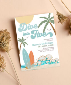 Dive Into Five Surfing Boy 5th Birthday Party Invitation - Related products