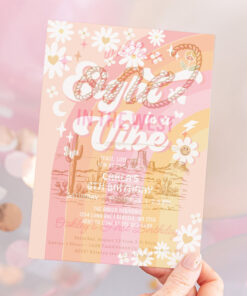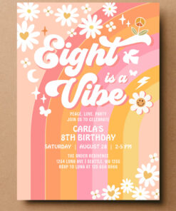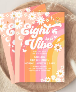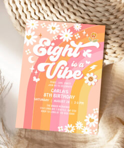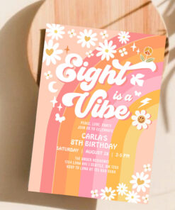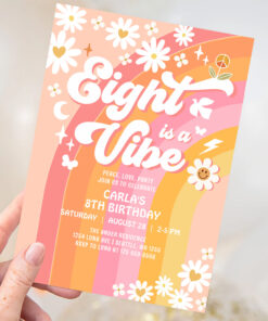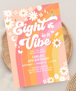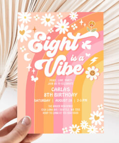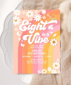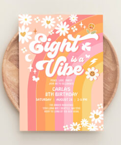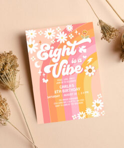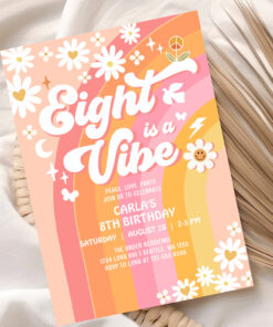 Eight Is A Vibe Pink Peach 8th Groovy Birthday Invitation - Related products