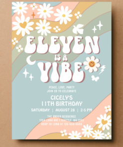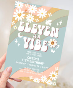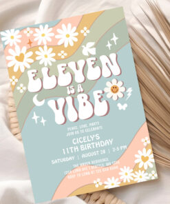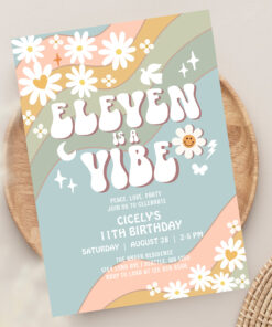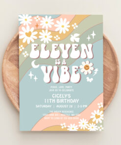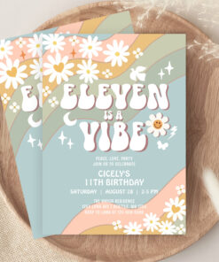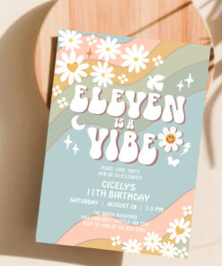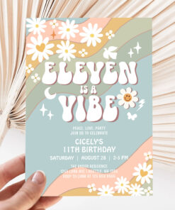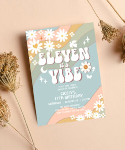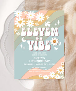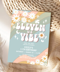 Eleven Is A Vibe Daisy Hippie 70S Retro Birthday Invitation