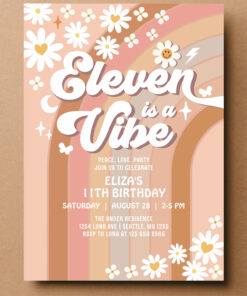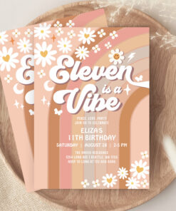 Eleven Is A Vibe Rainbow Hippie 70S Birthday Invitation - Related products
