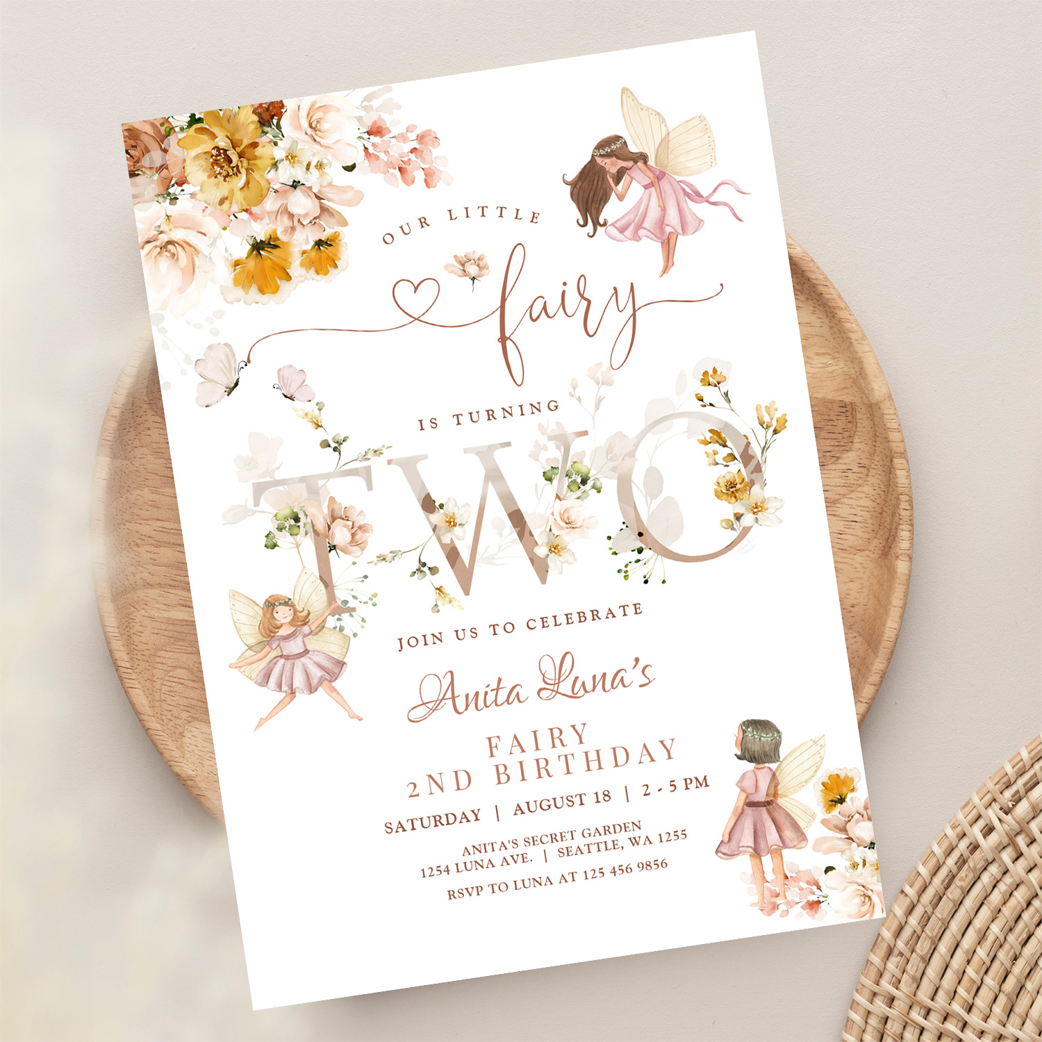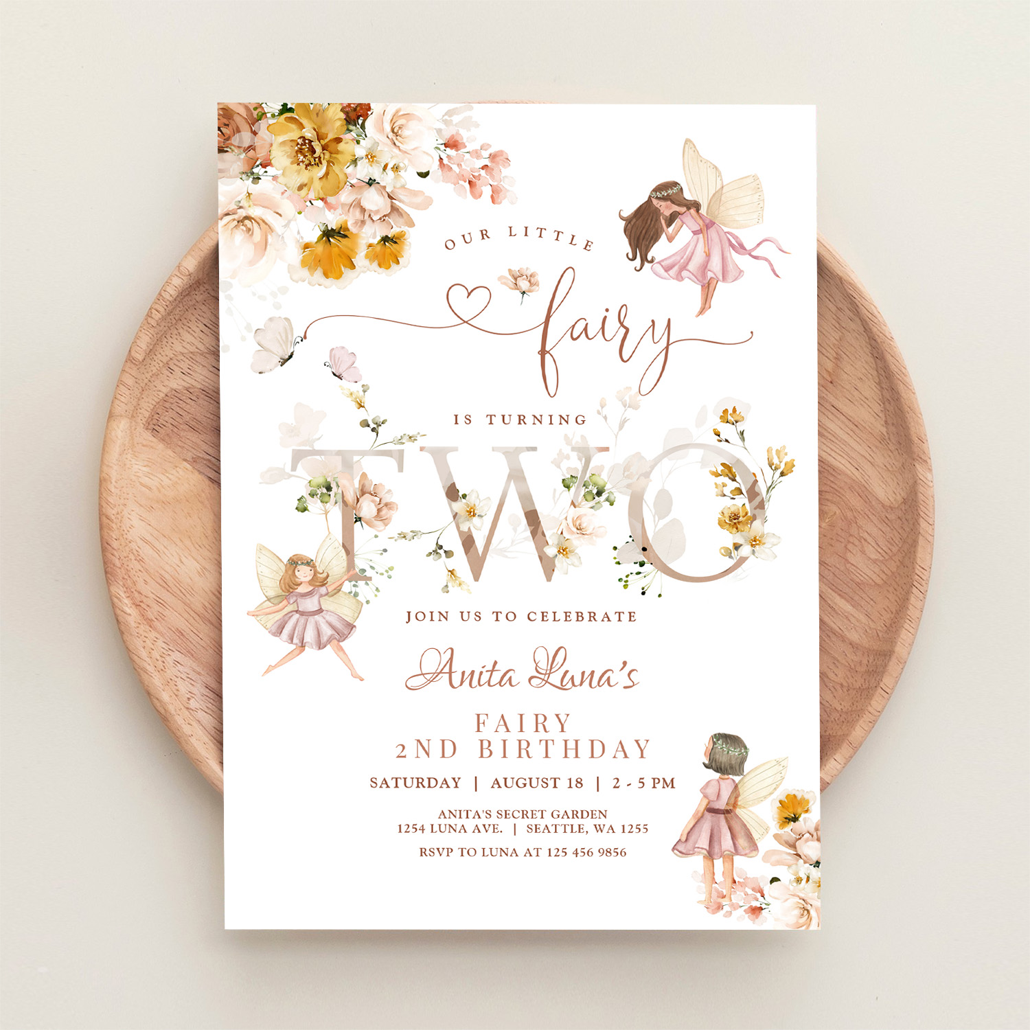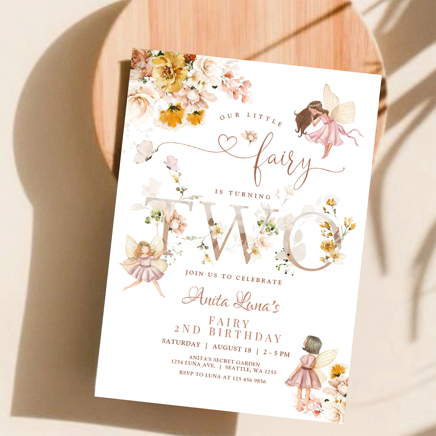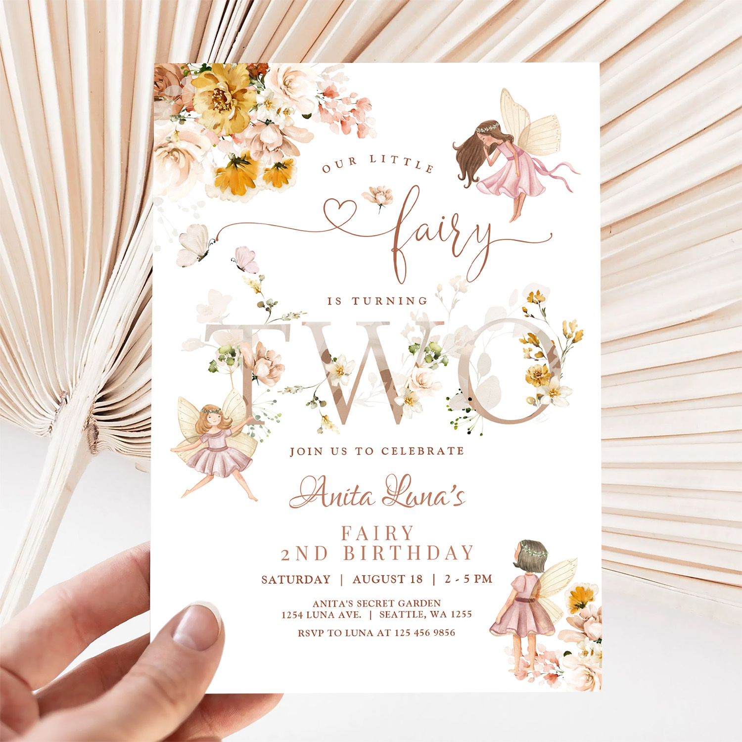 Fairy Butterfly Magical Wildflower 2nd Birthday Invitation