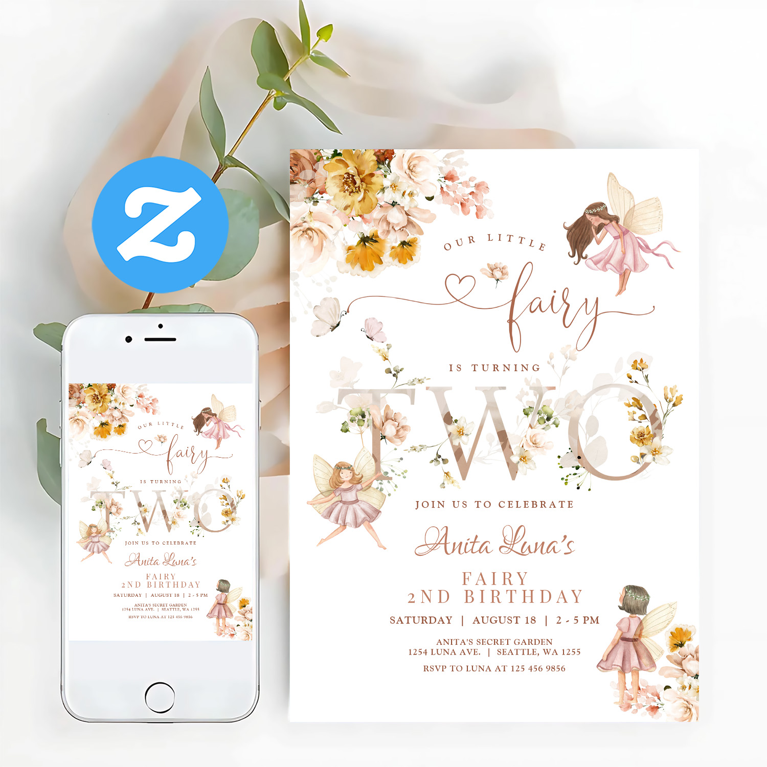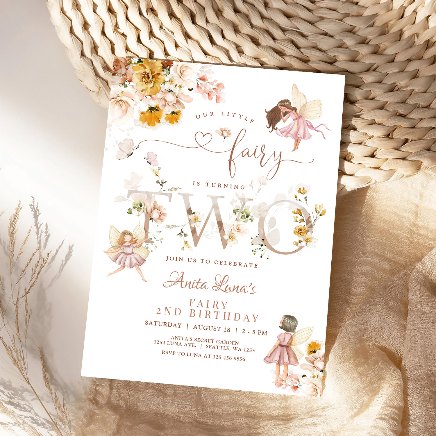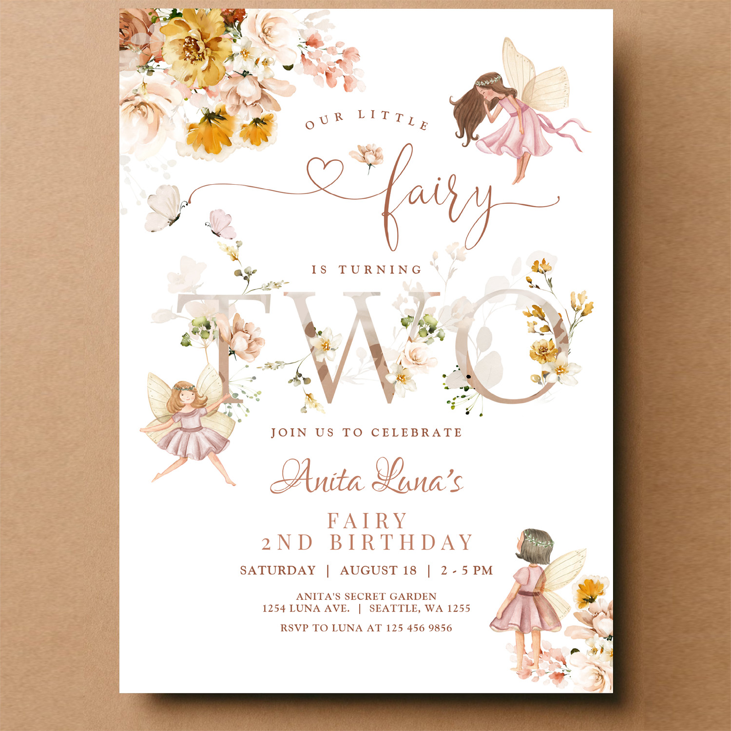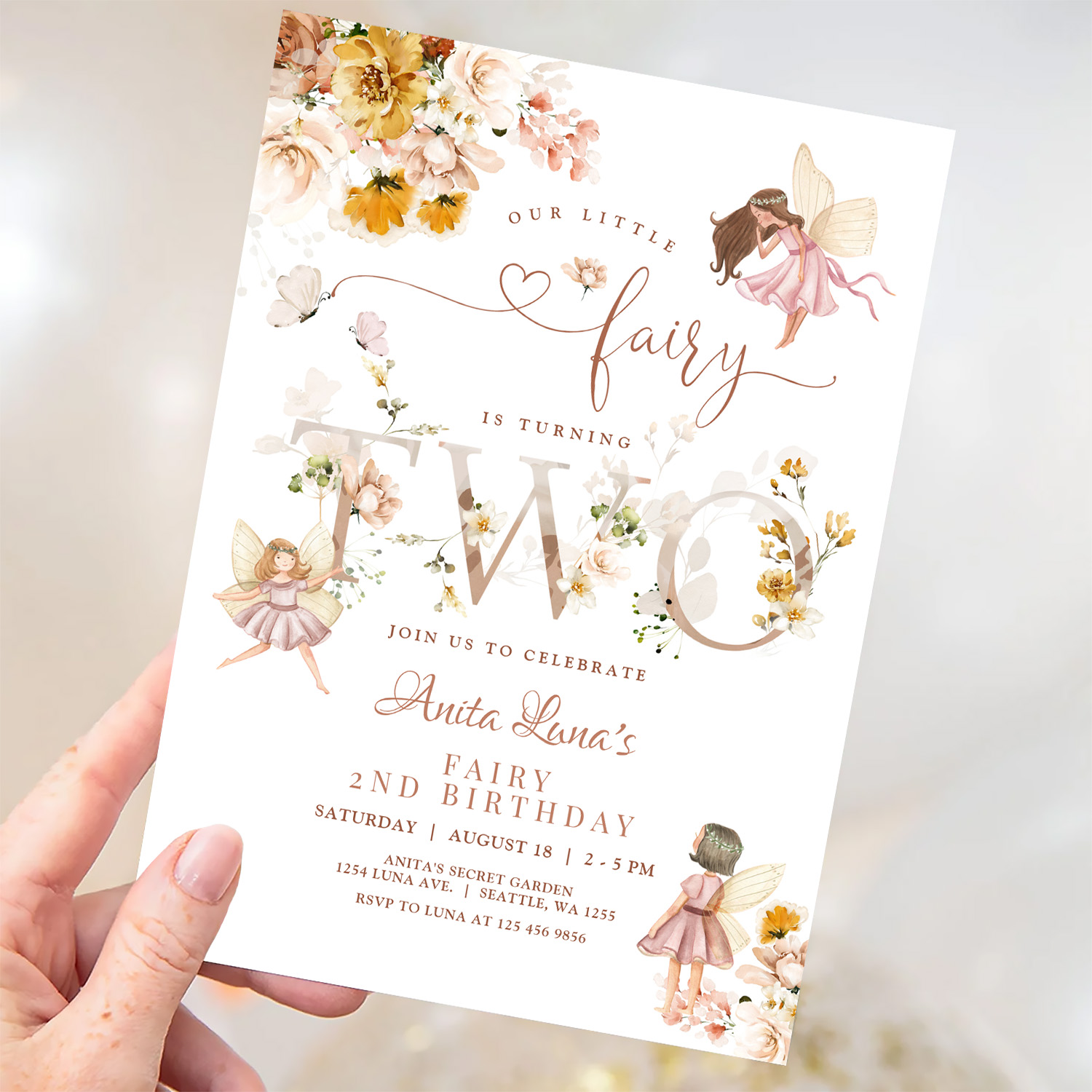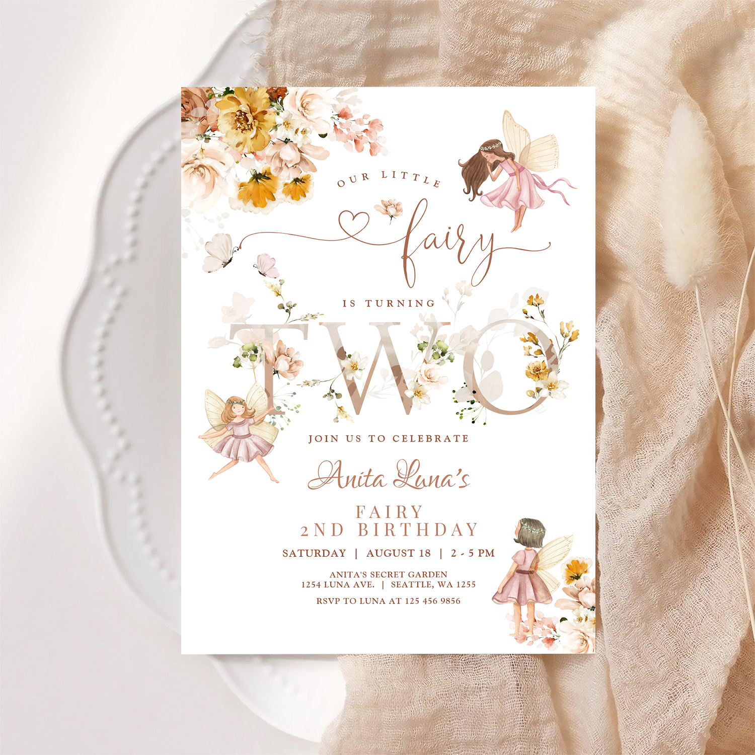 Fairy Butterfly Magical Wildflower 2nd Birthday Invitation
