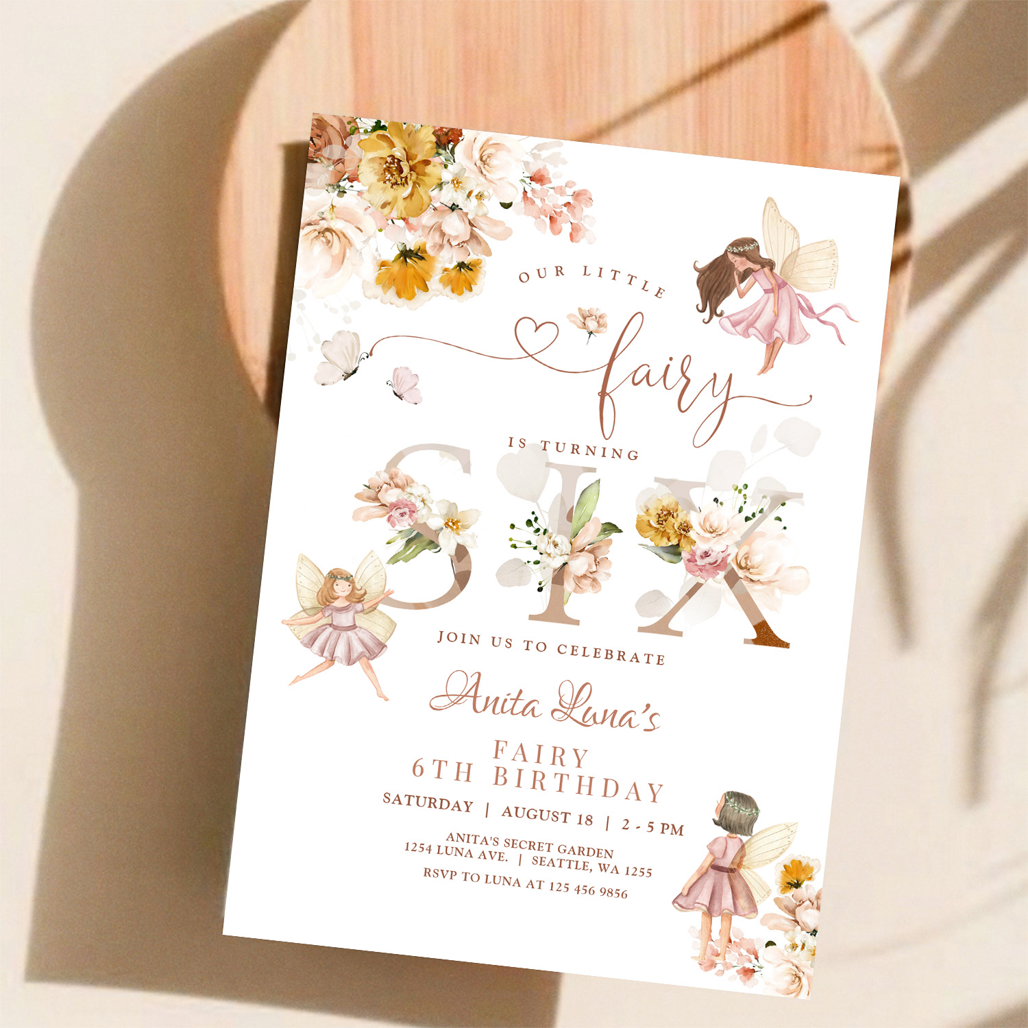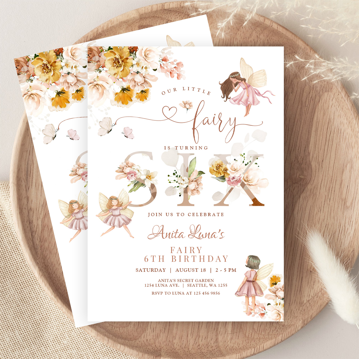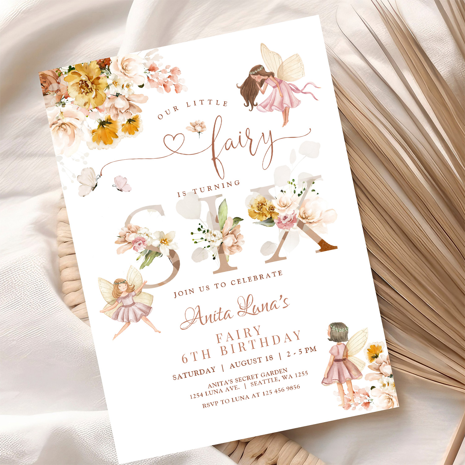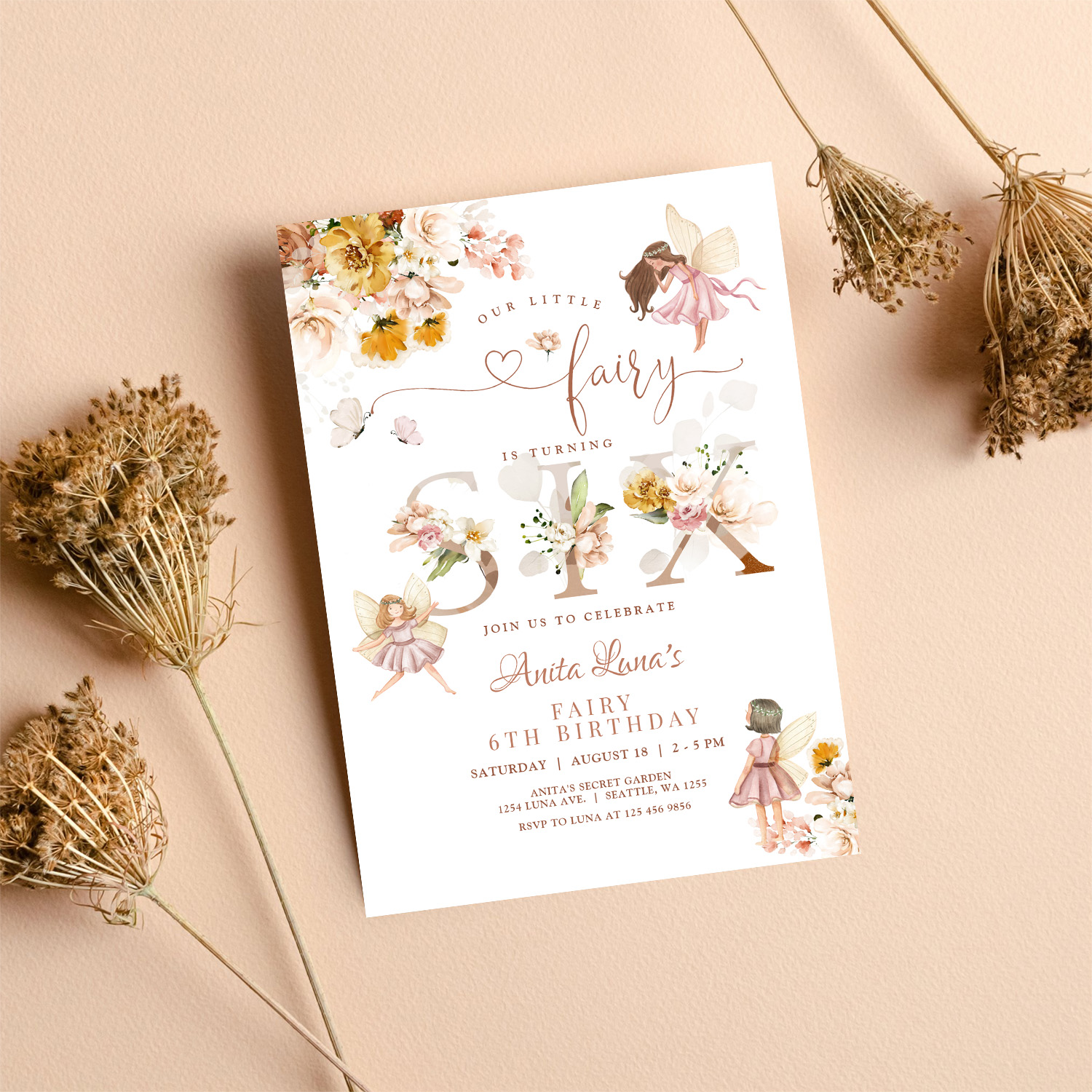 Fairy Butterfly Magical Wildflower 6th Birthday Invitation