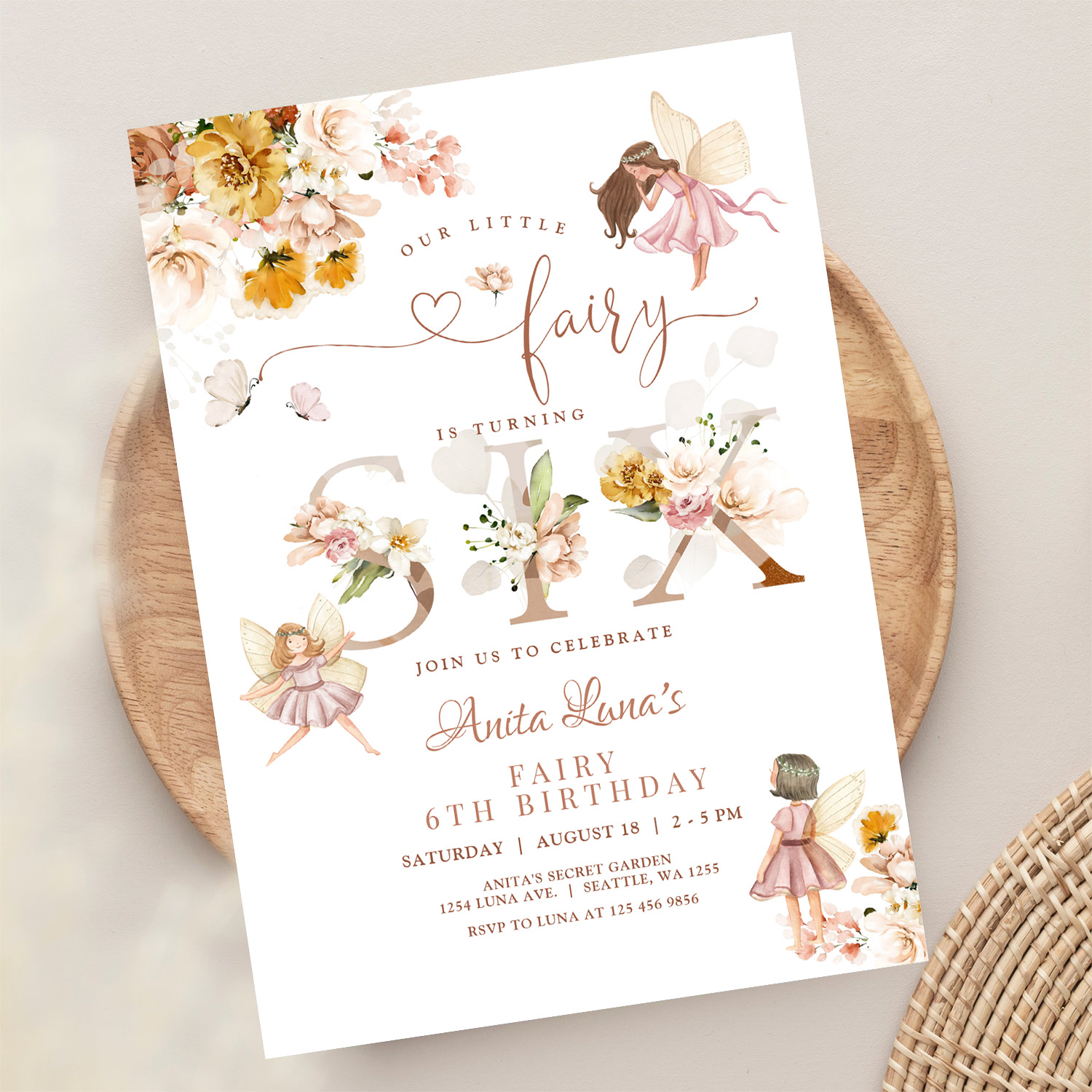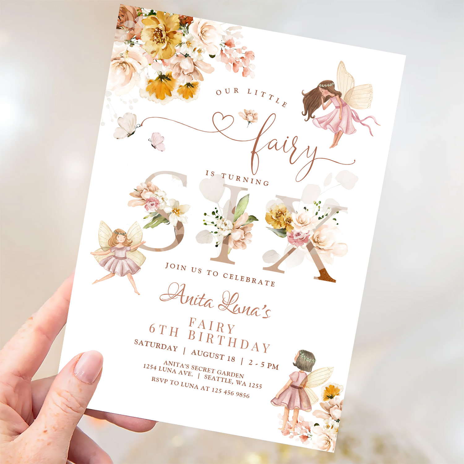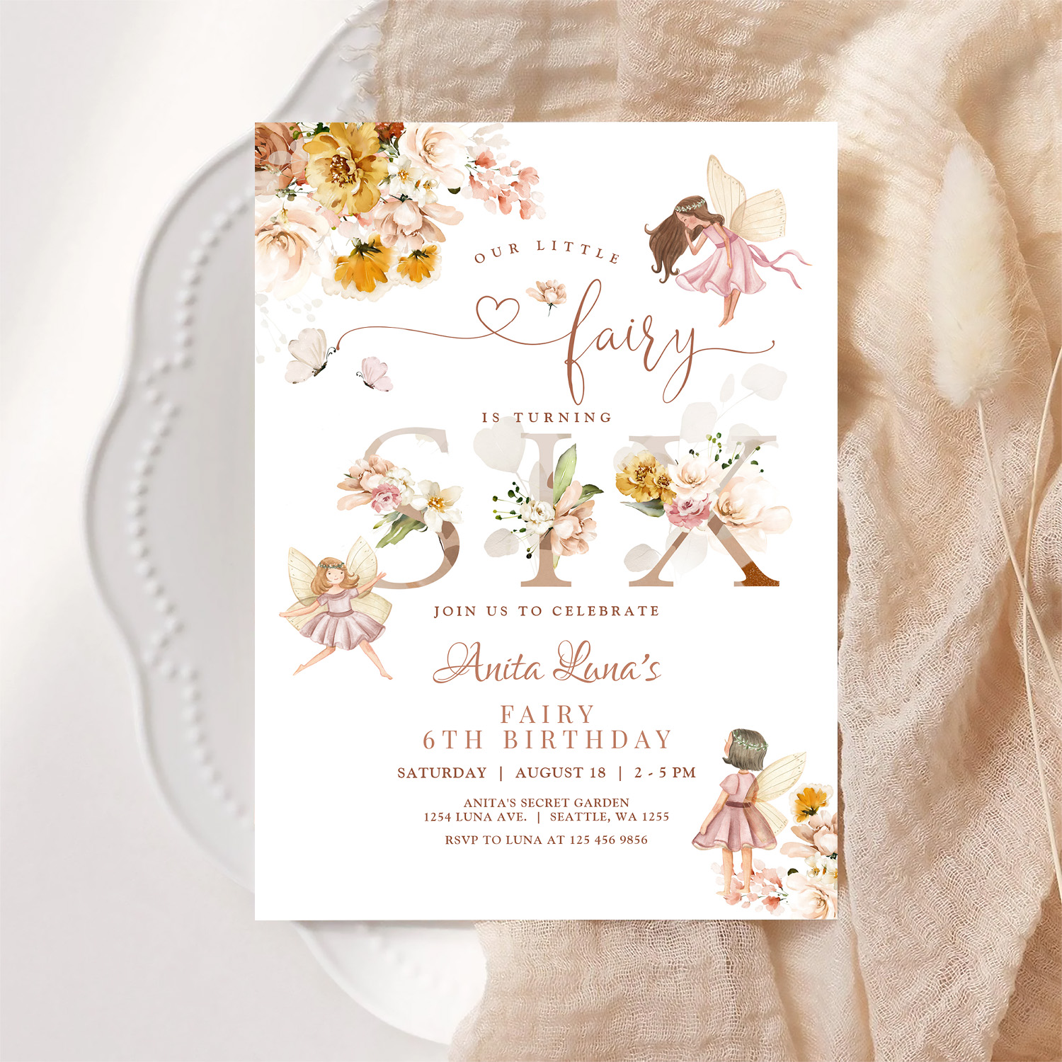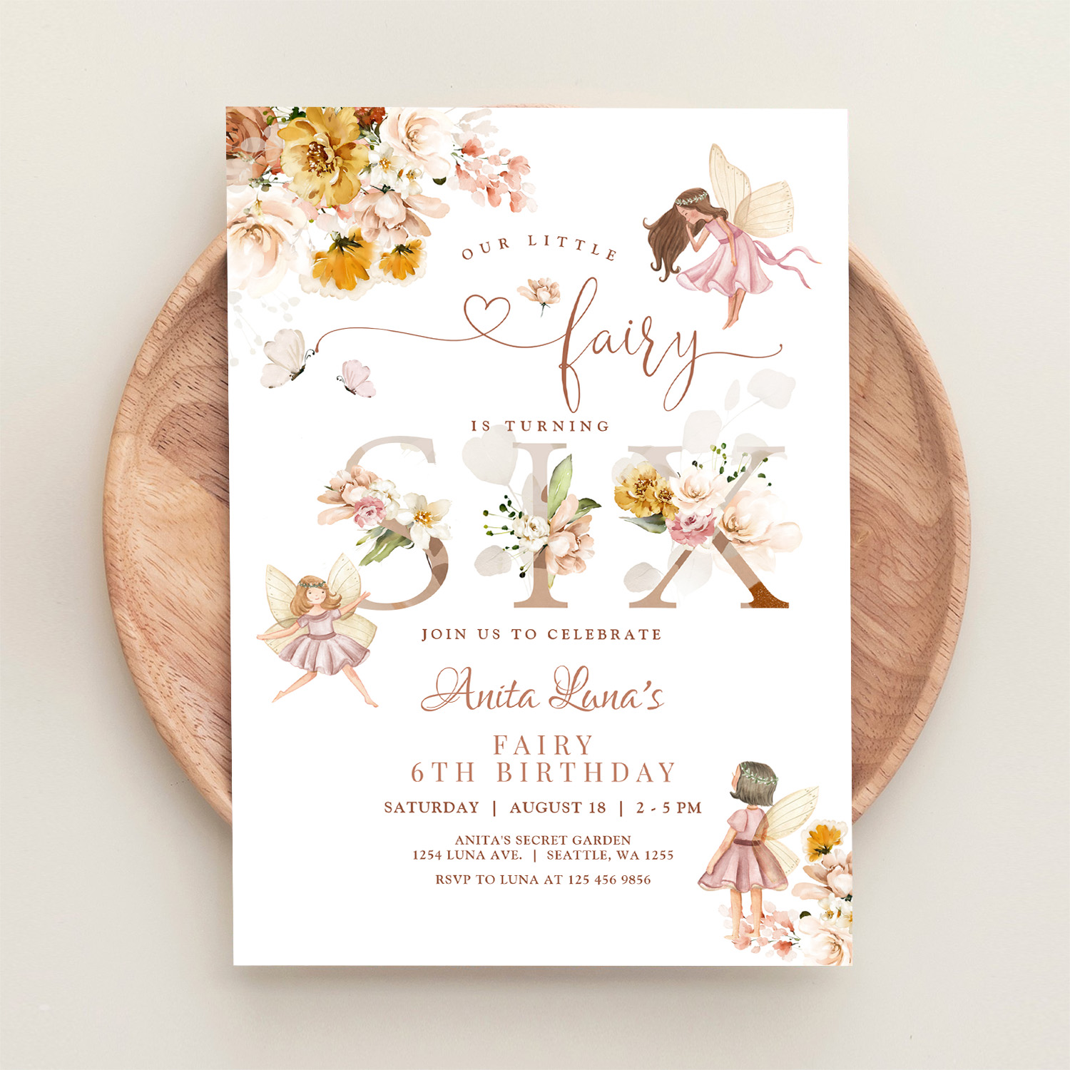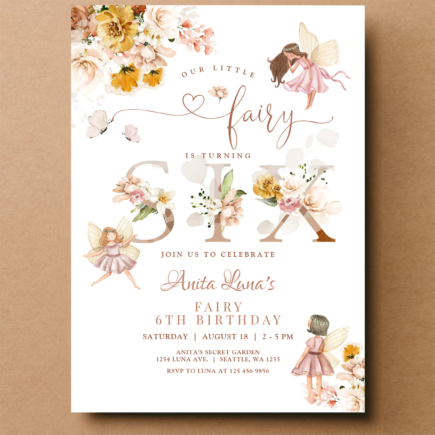Fairy Butterfly Magical Wildflower 6th Birthday Invitation