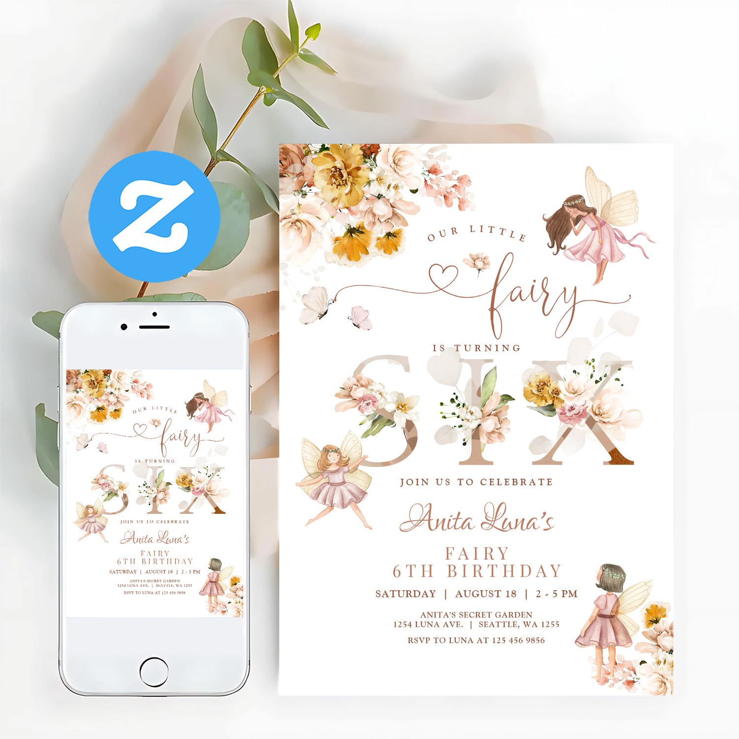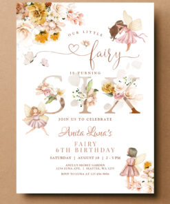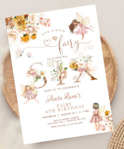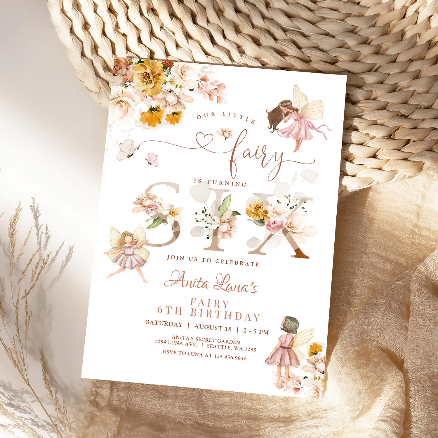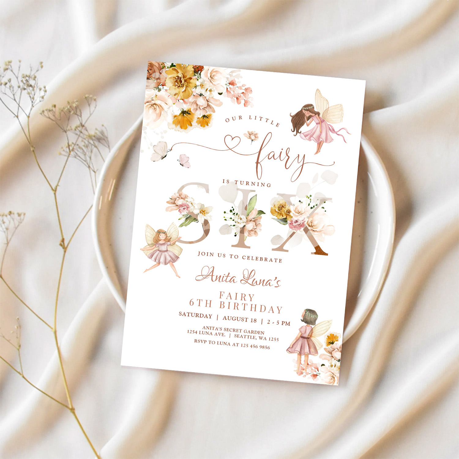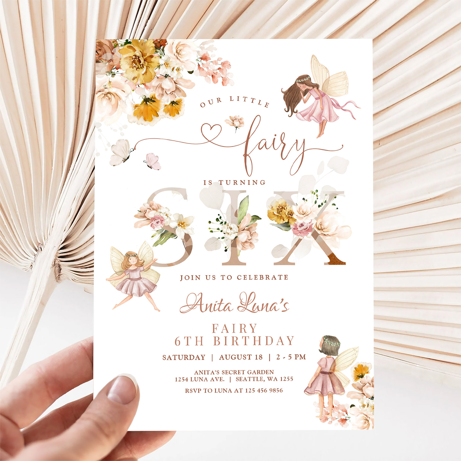 Fairy Butterfly Magical Wildflower 6th Birthday Invitation