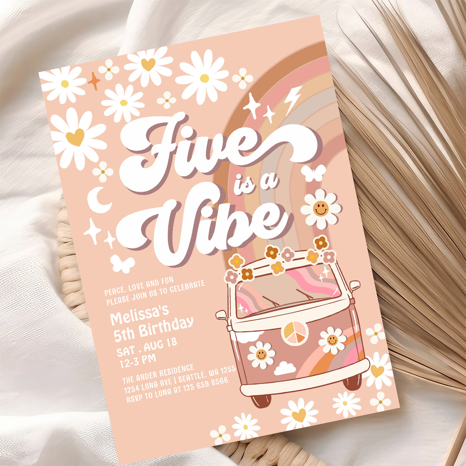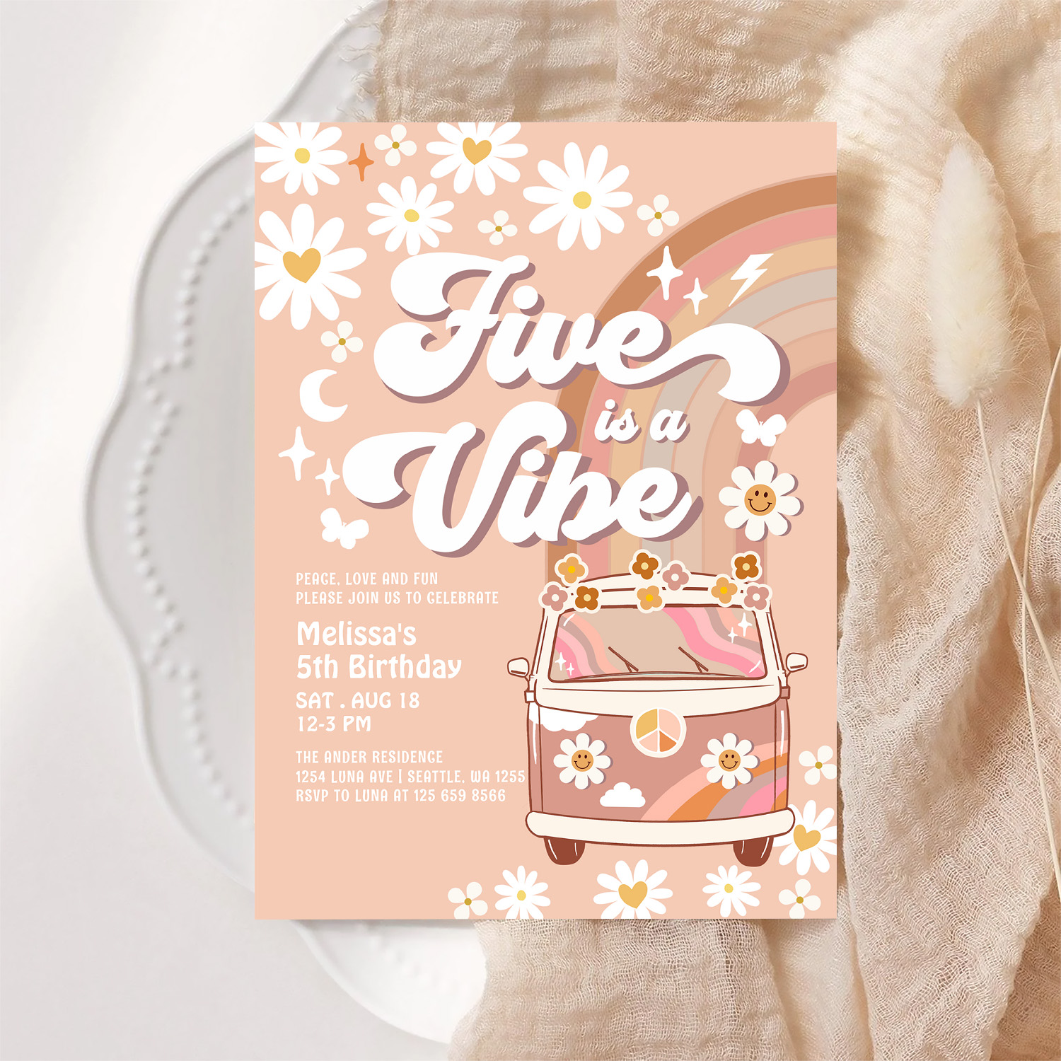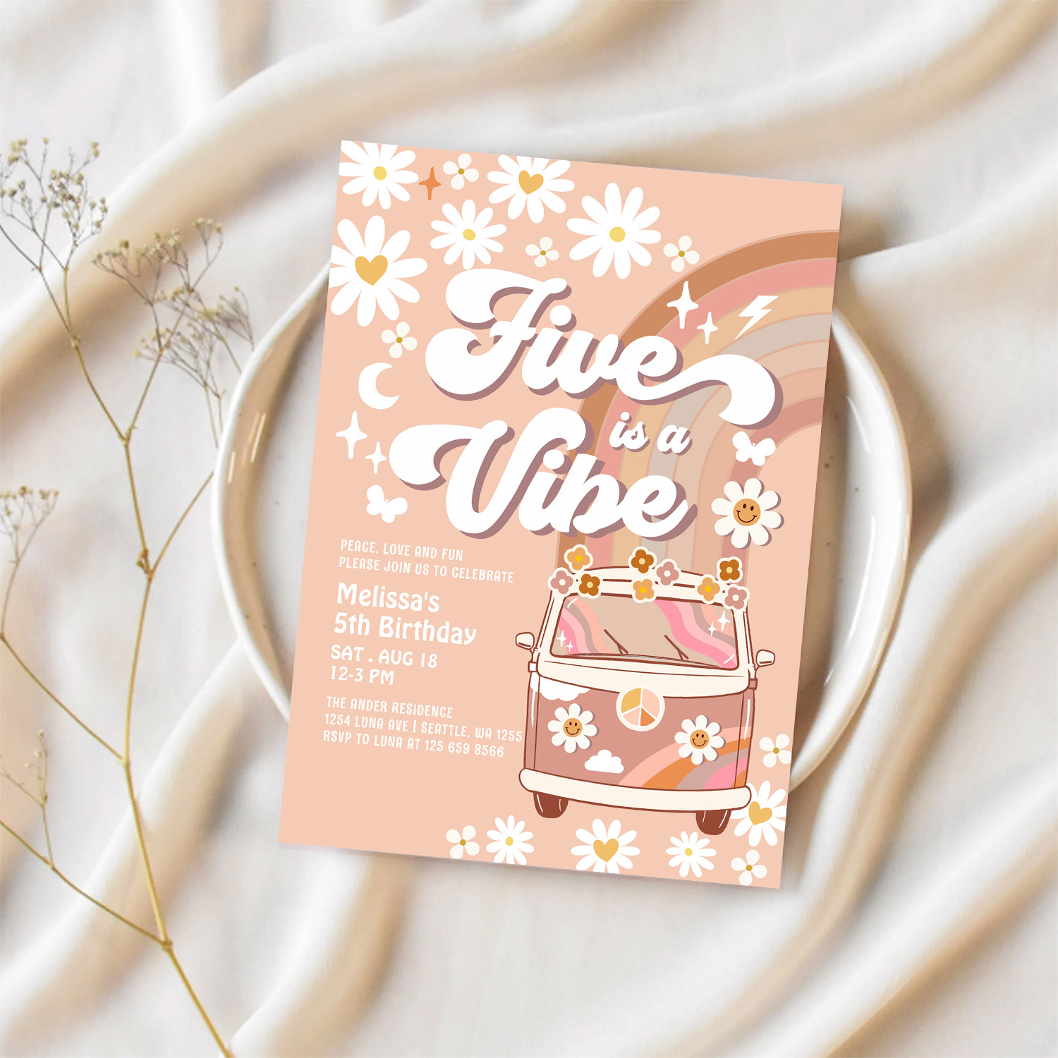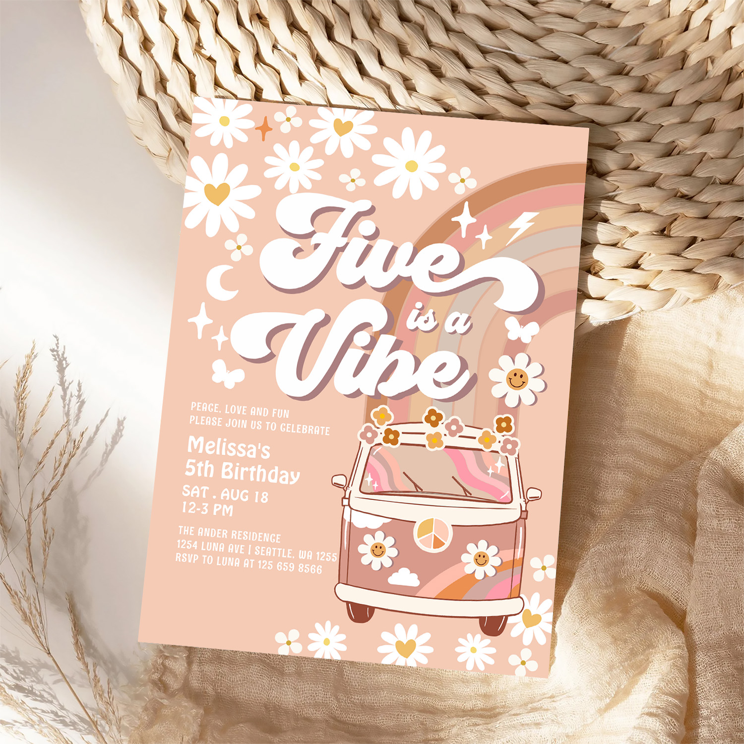 Five Is A Vibe 5th Groovy Van Birthday Invitation