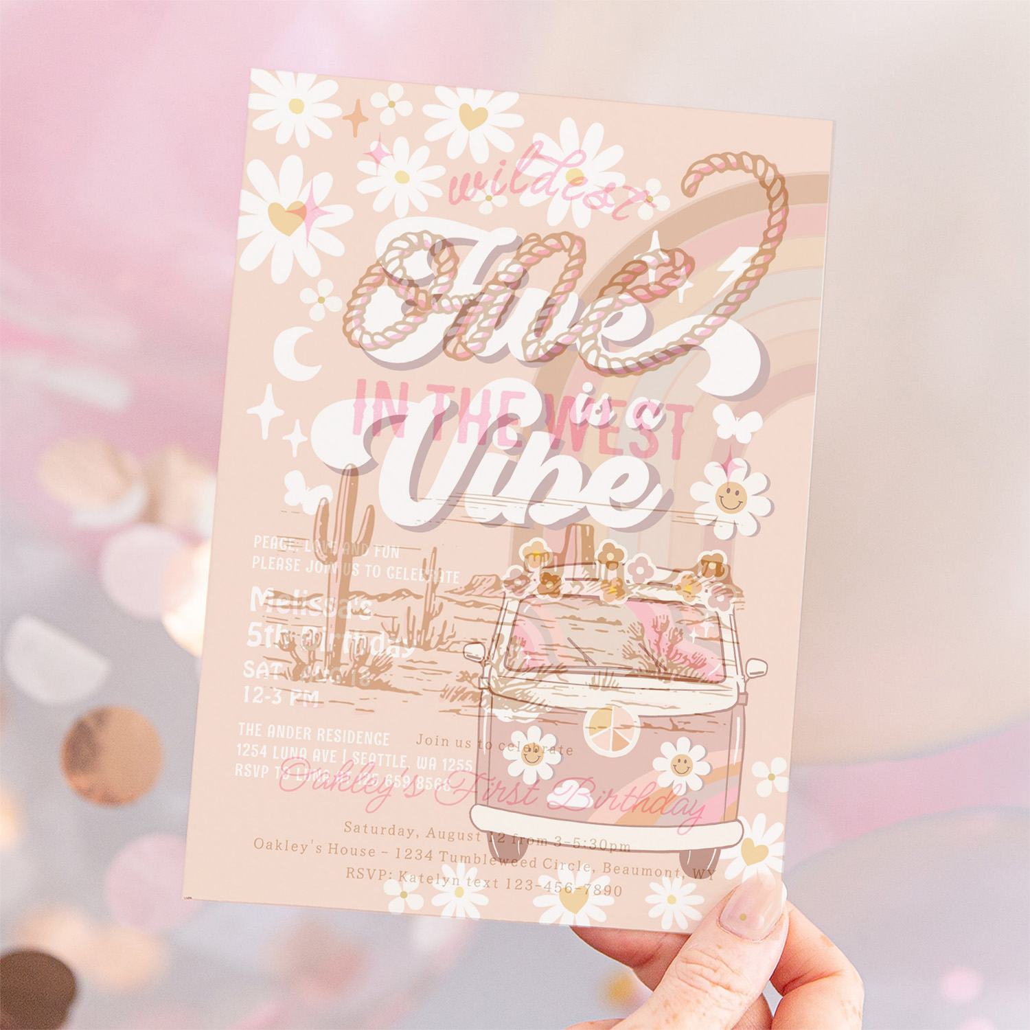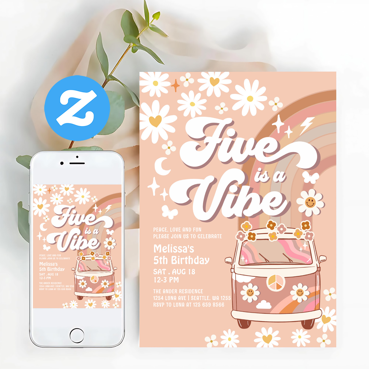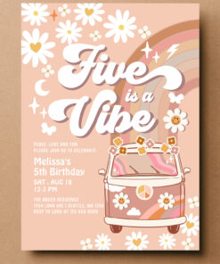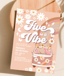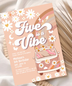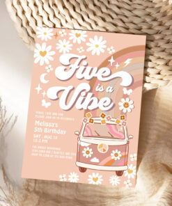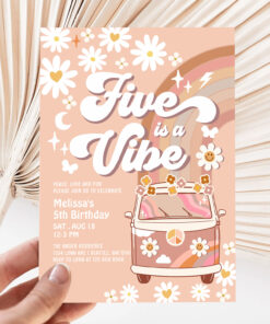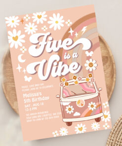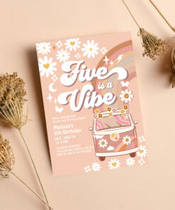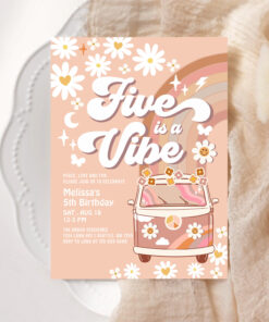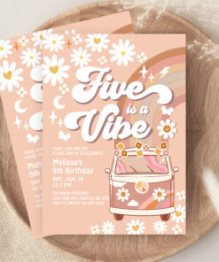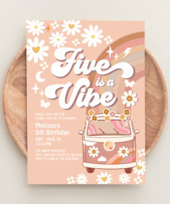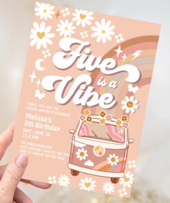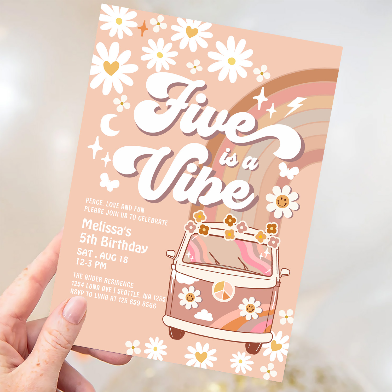 Five Is A Vibe 5th Groovy Van Birthday Invitation