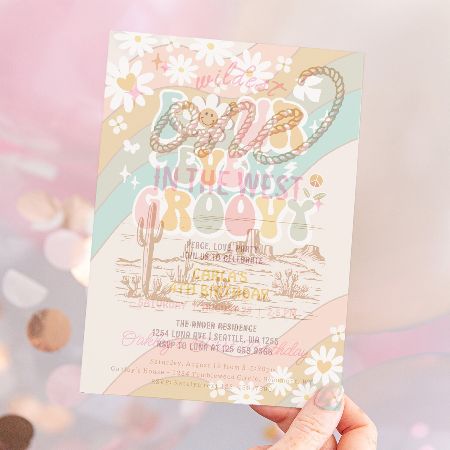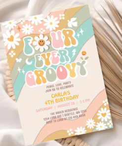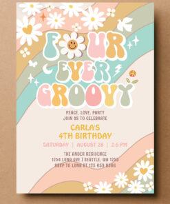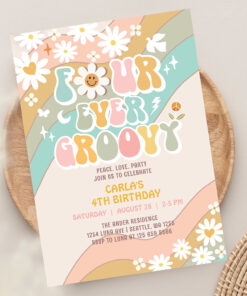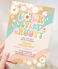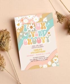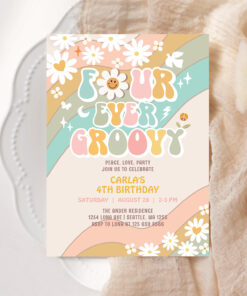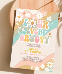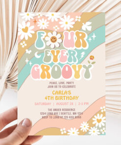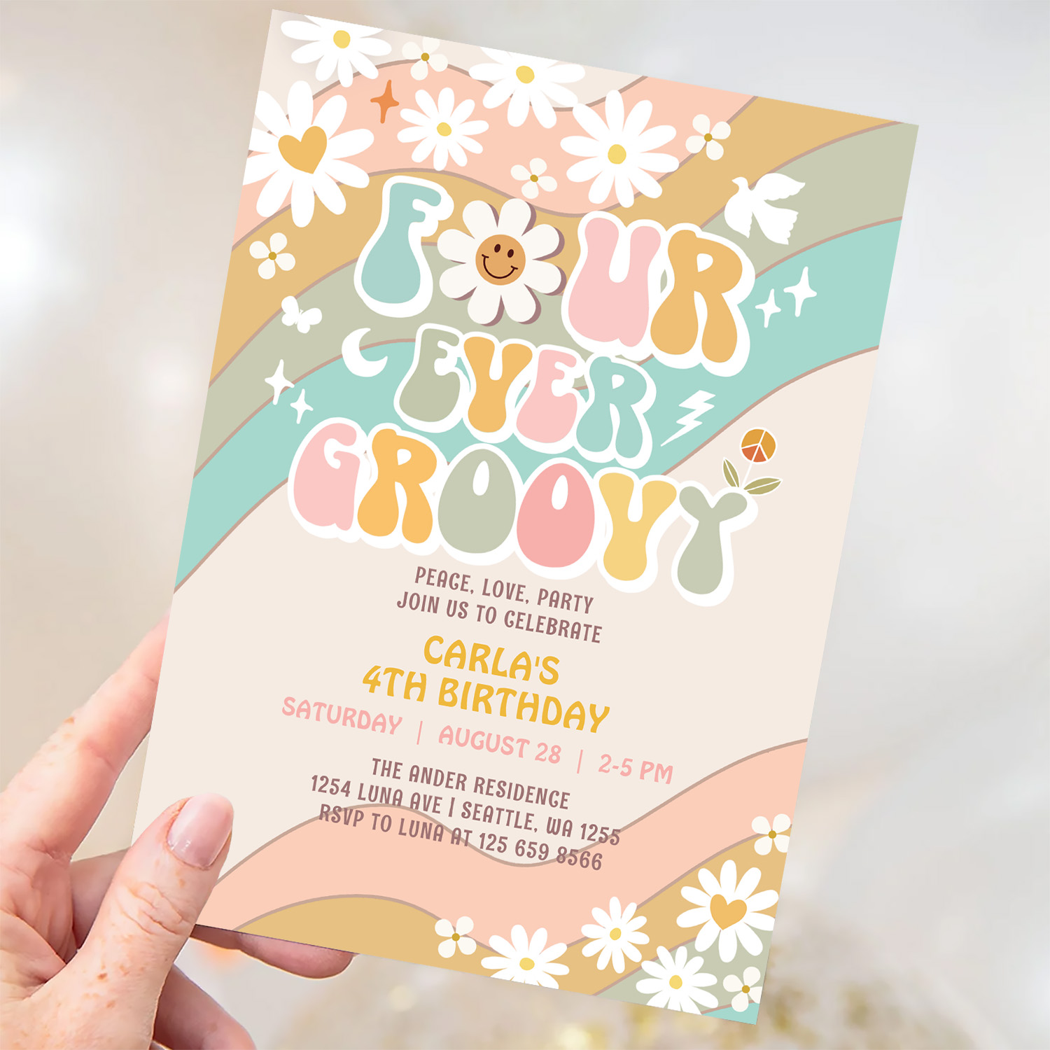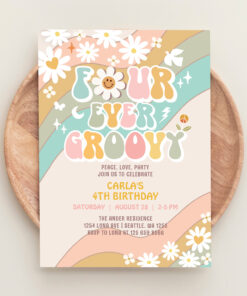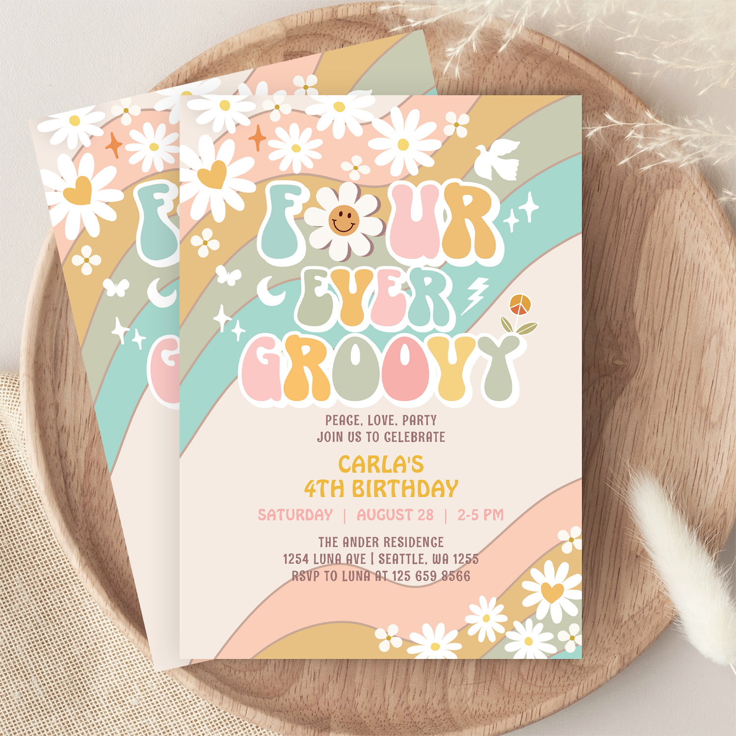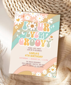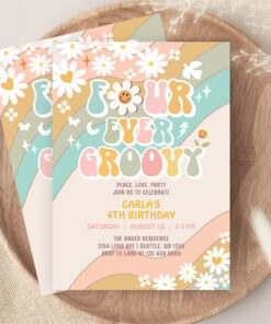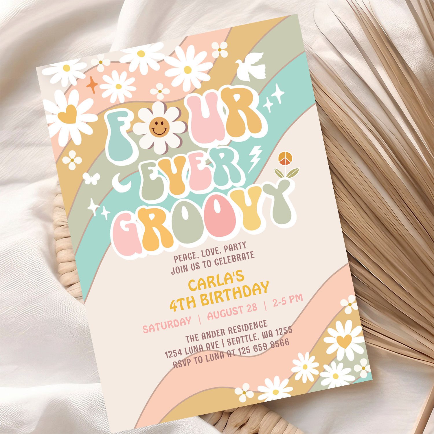 Four Ever Groovy Daisy Hippie 70S Retro Birthday Invitation
