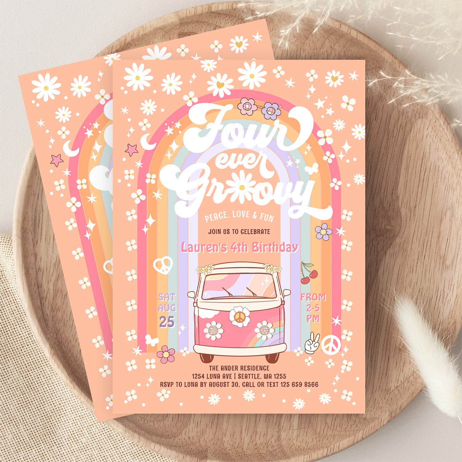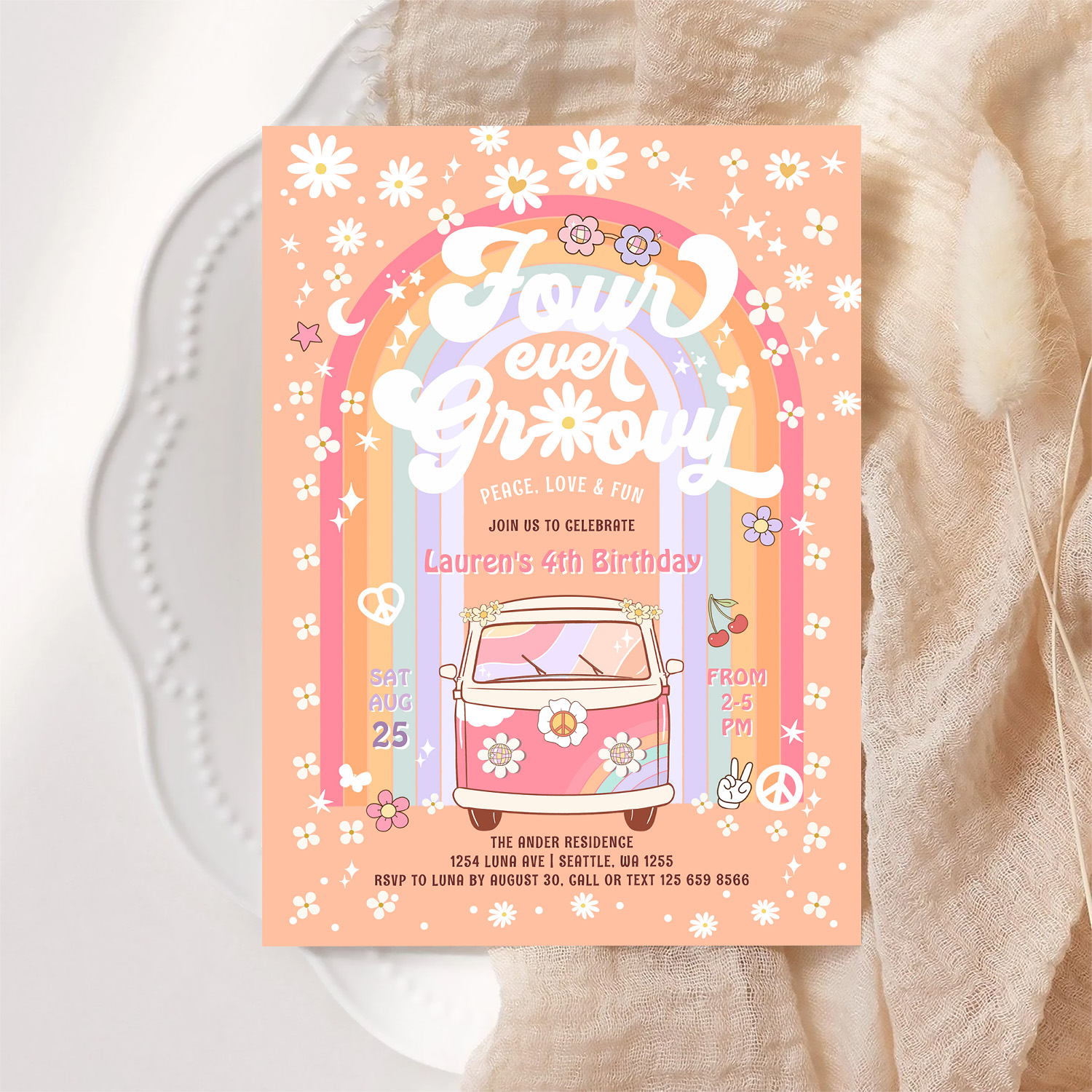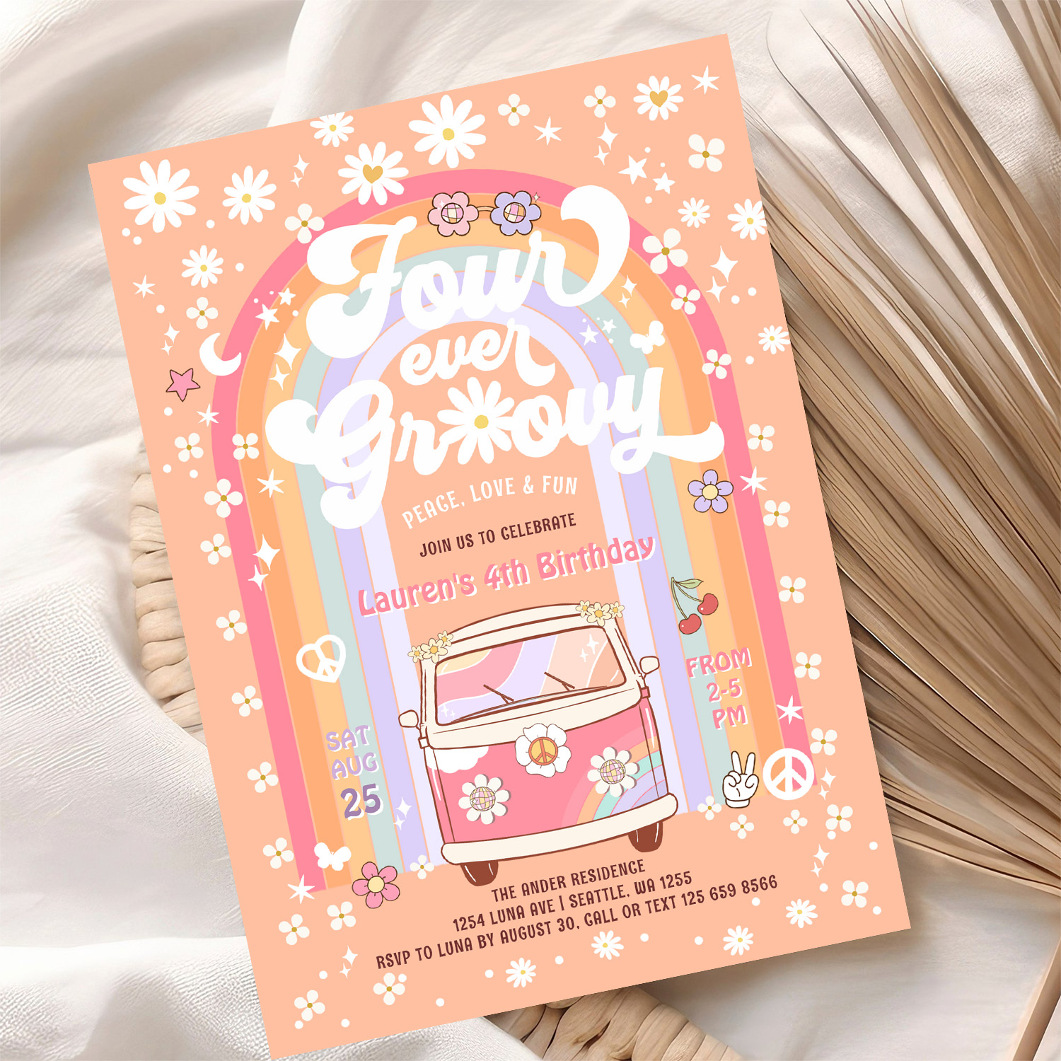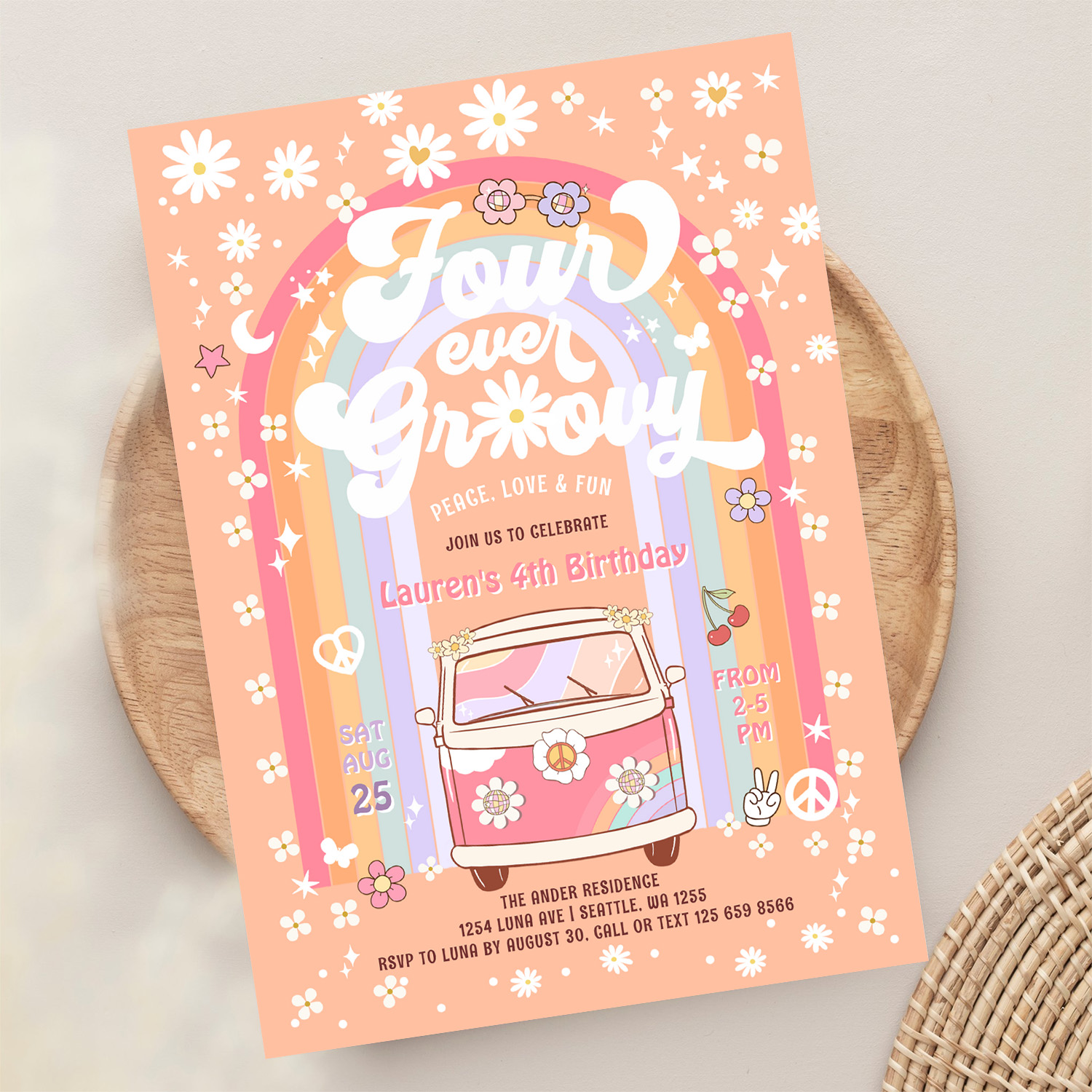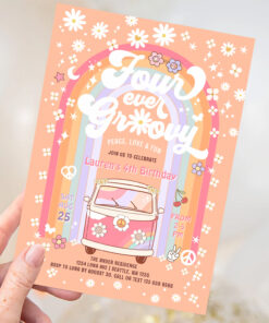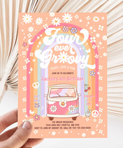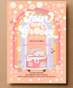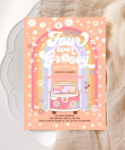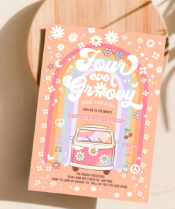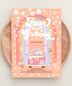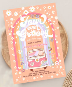 Four Ever Groovy Daisy Van 4th Birthday Invitation - Related products