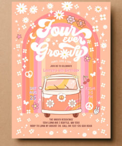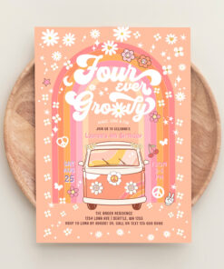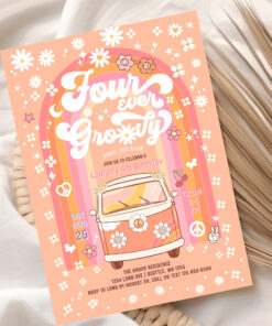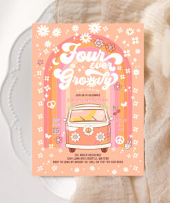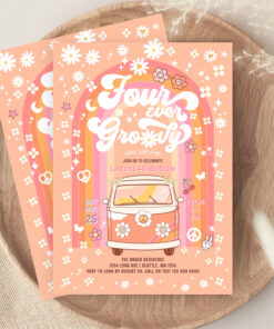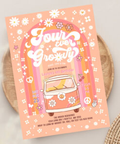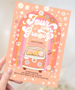 Four Ever Groovyvan Bus 4th Birthday Invitation - Related products