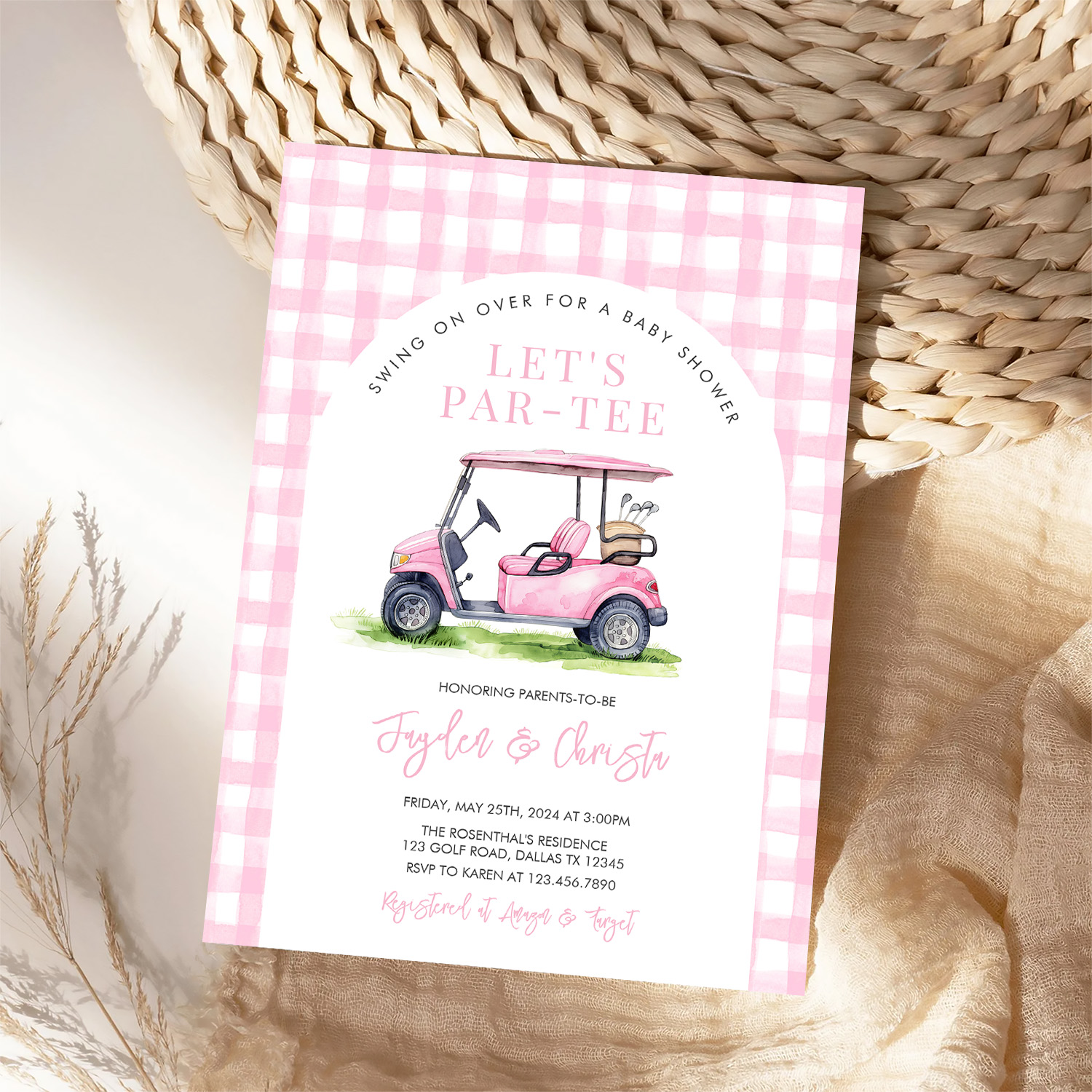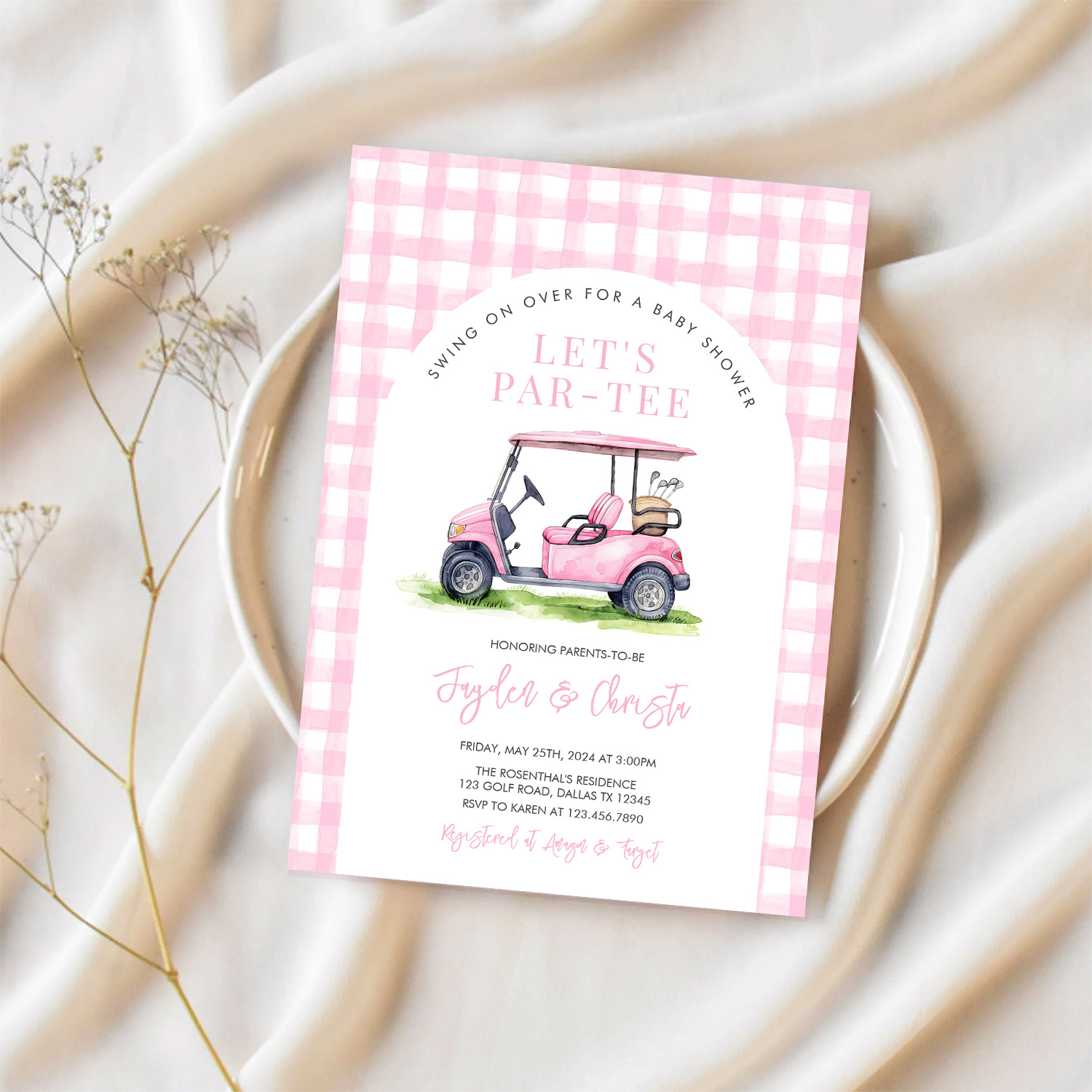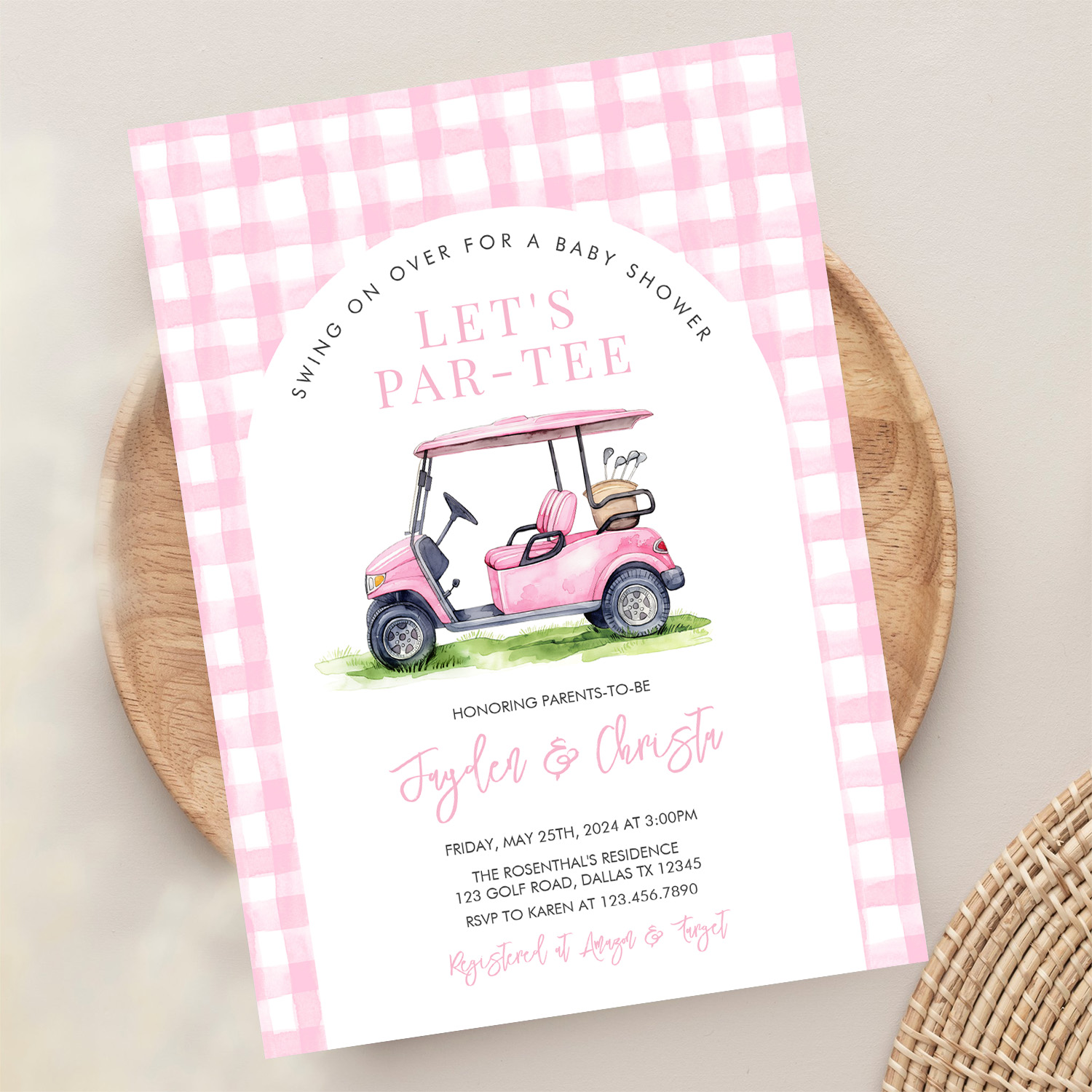 Girl Golf Lets Par Tee Tee Time Baby Shower Invitation