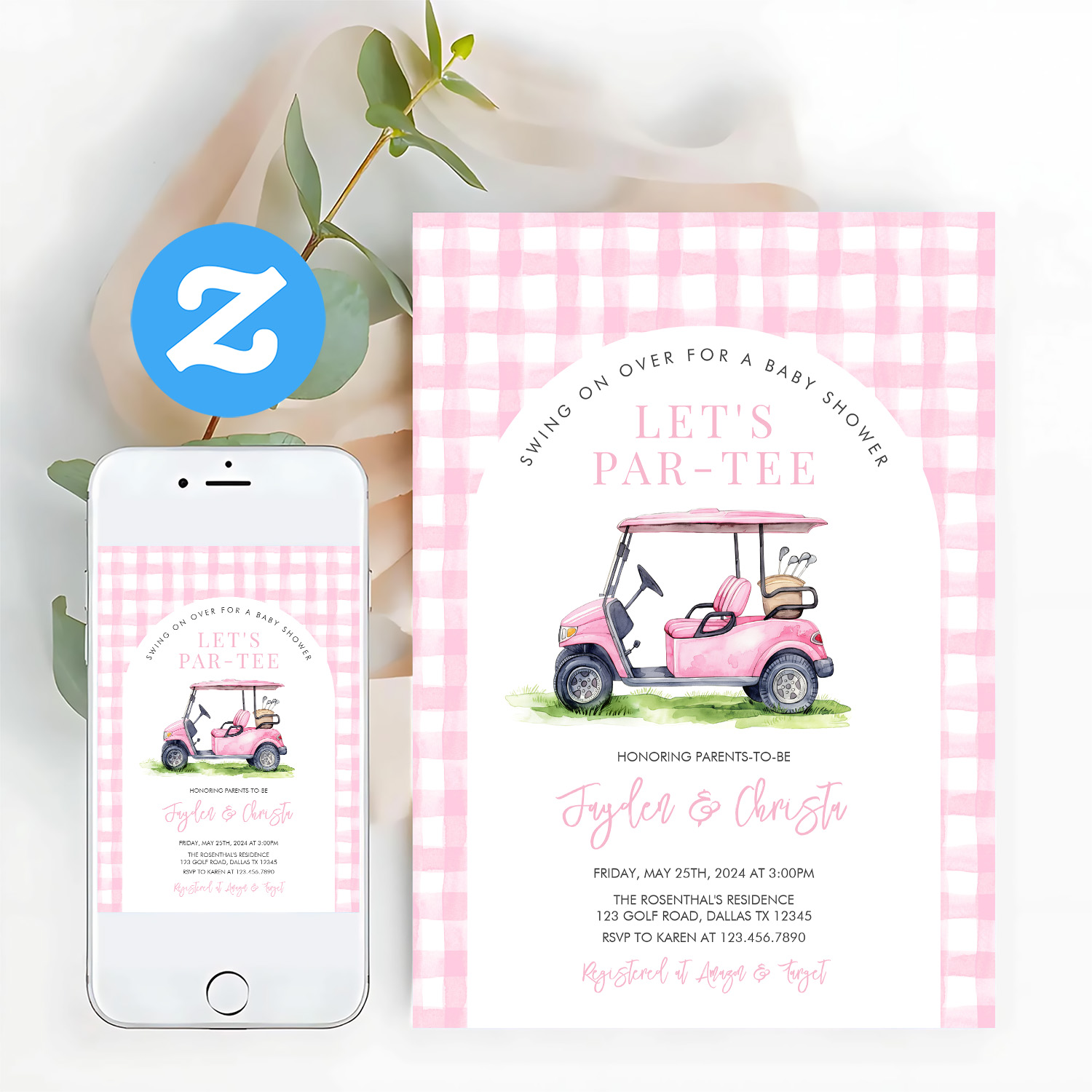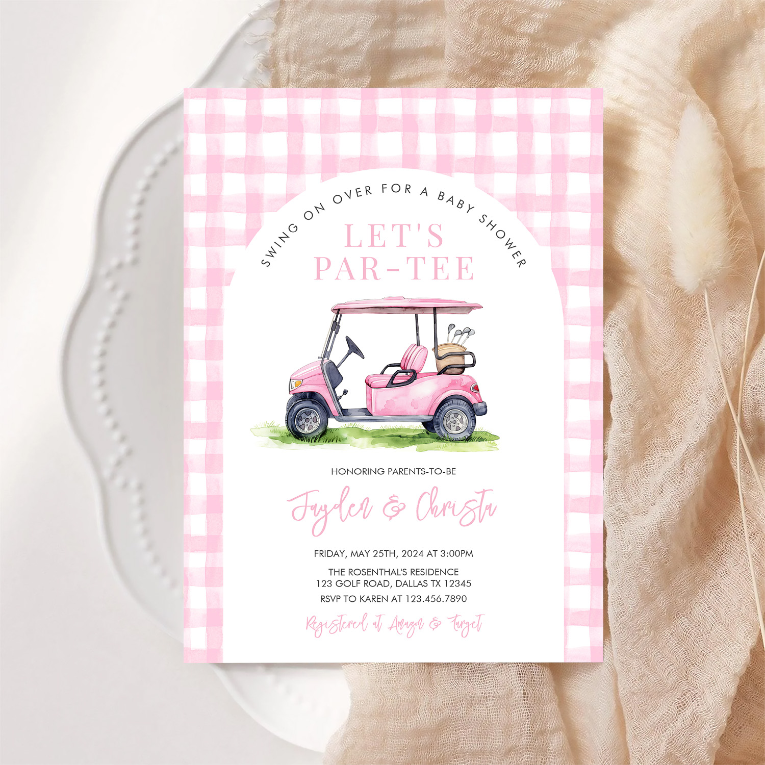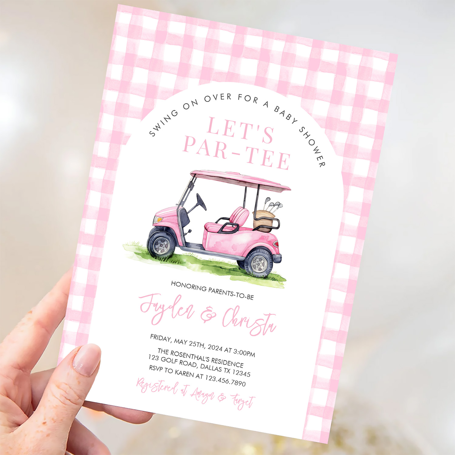 Girl Golf Lets Par Tee Tee Time Baby Shower Invitation