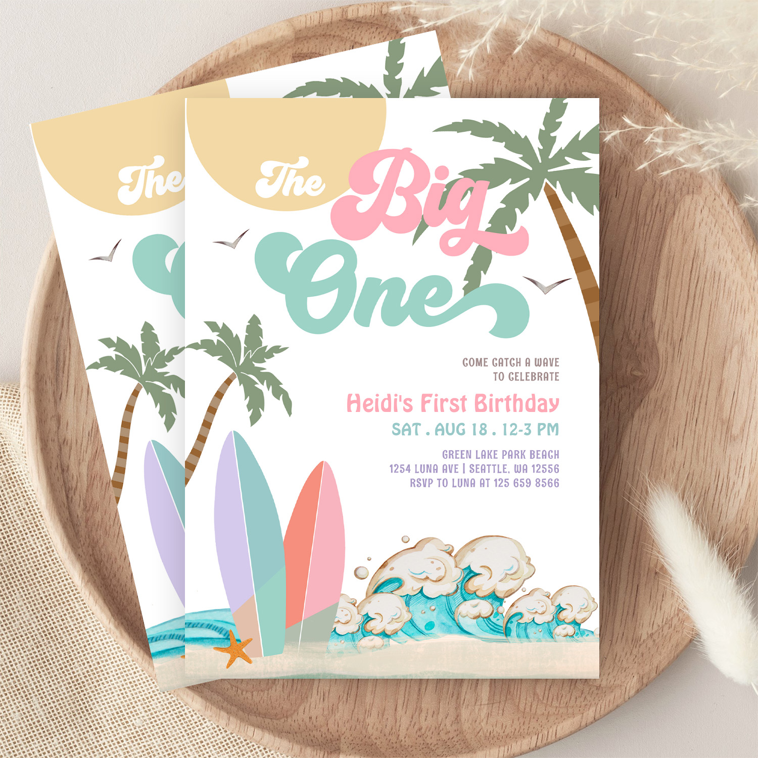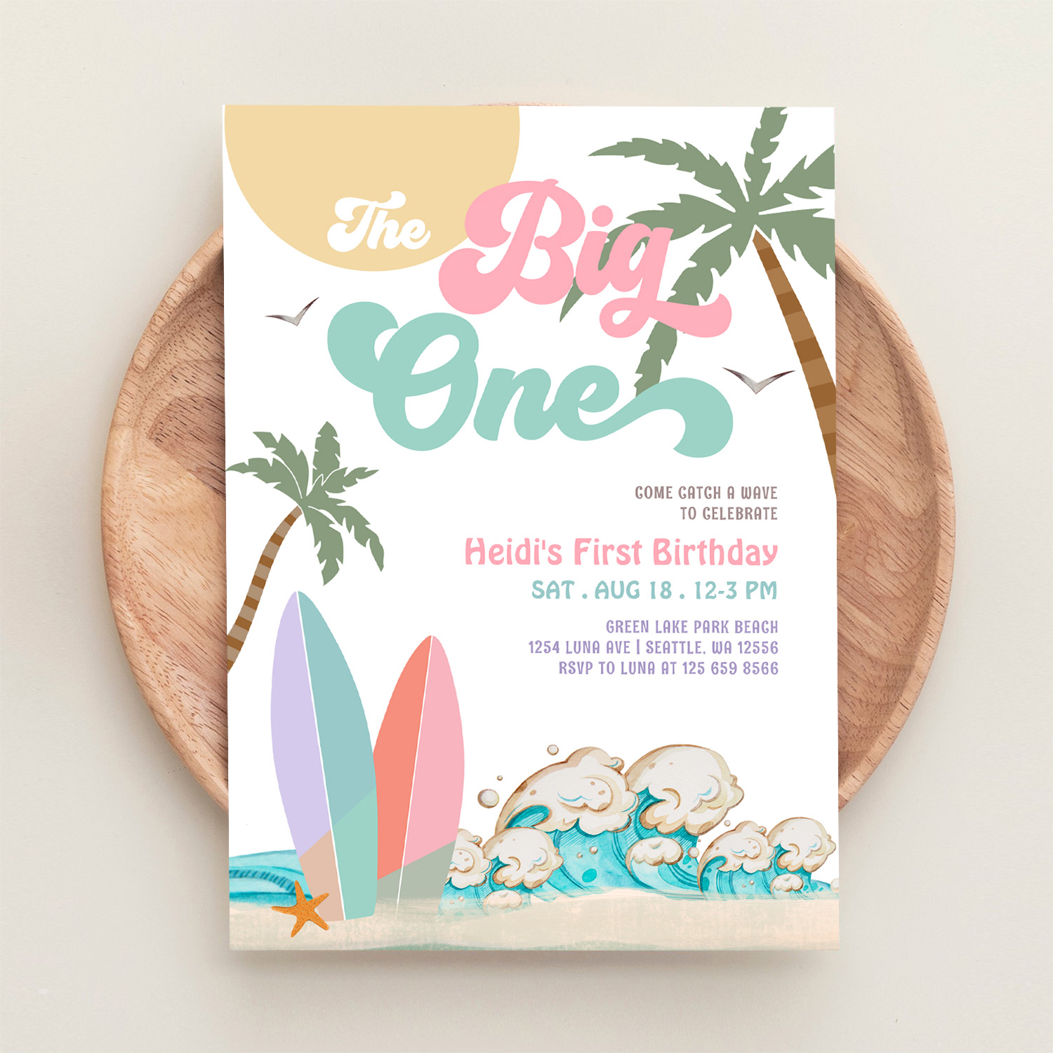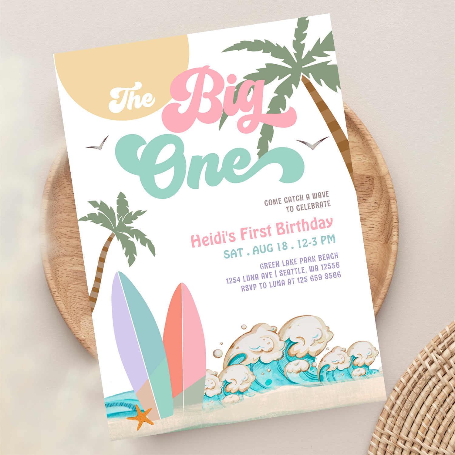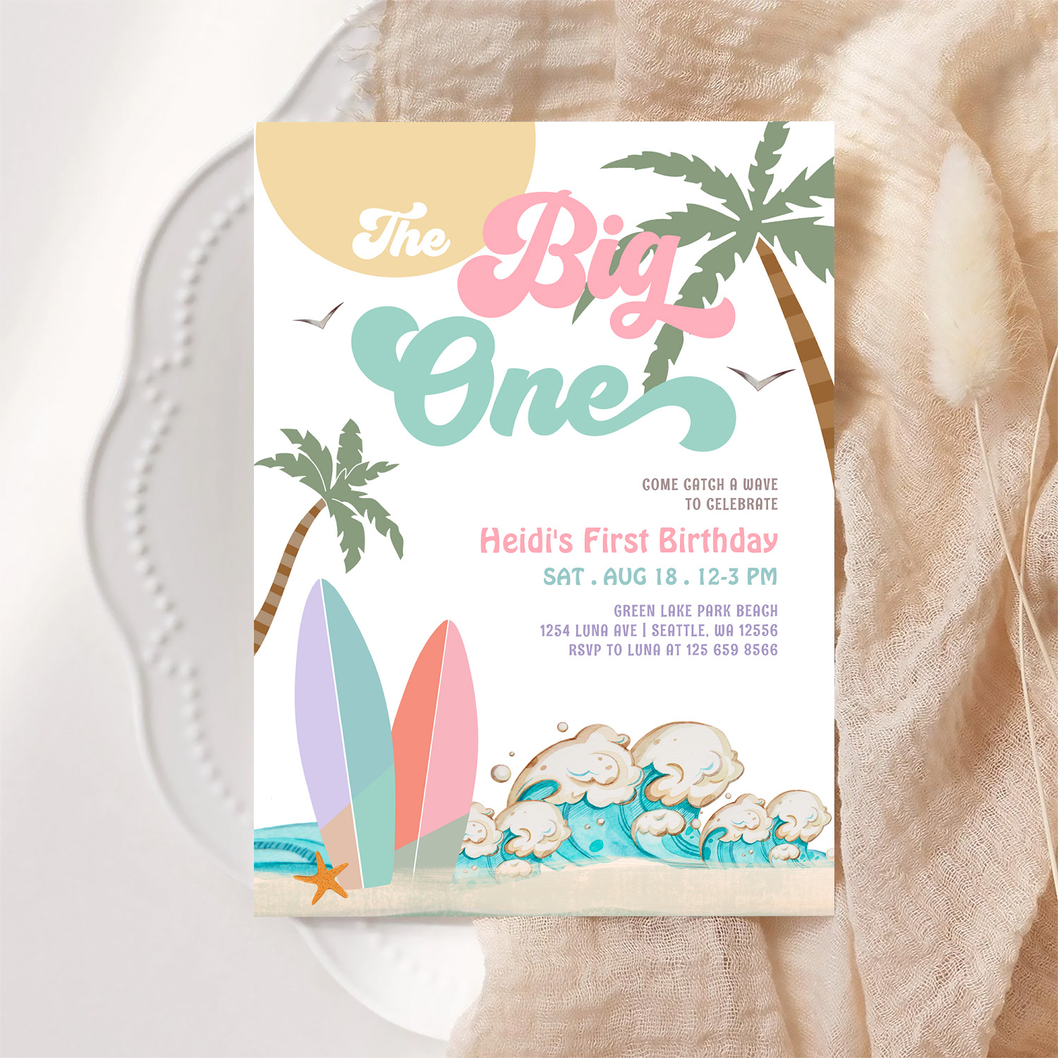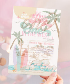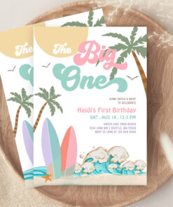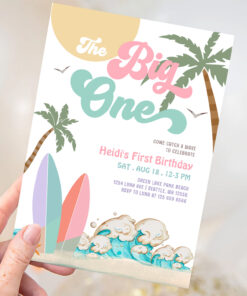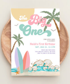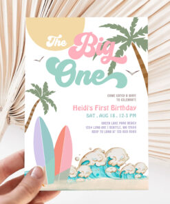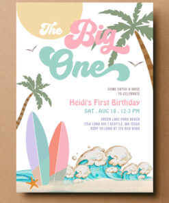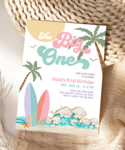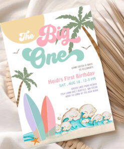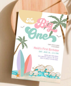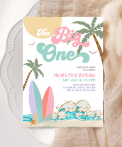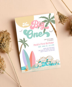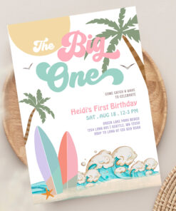 Girl The Big One Surfing 1st Birthday Party Invitation