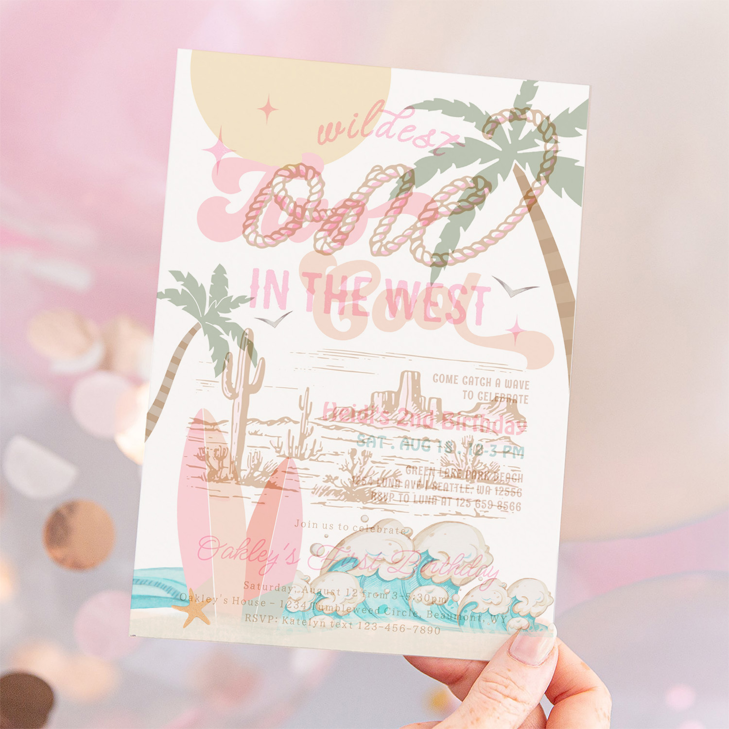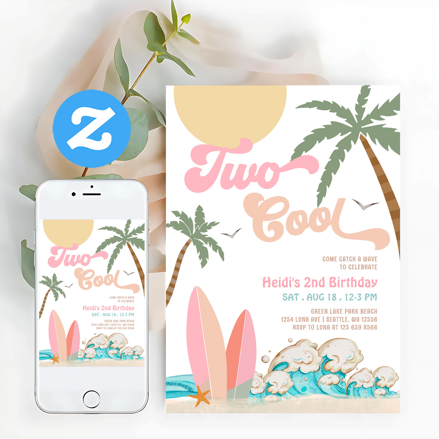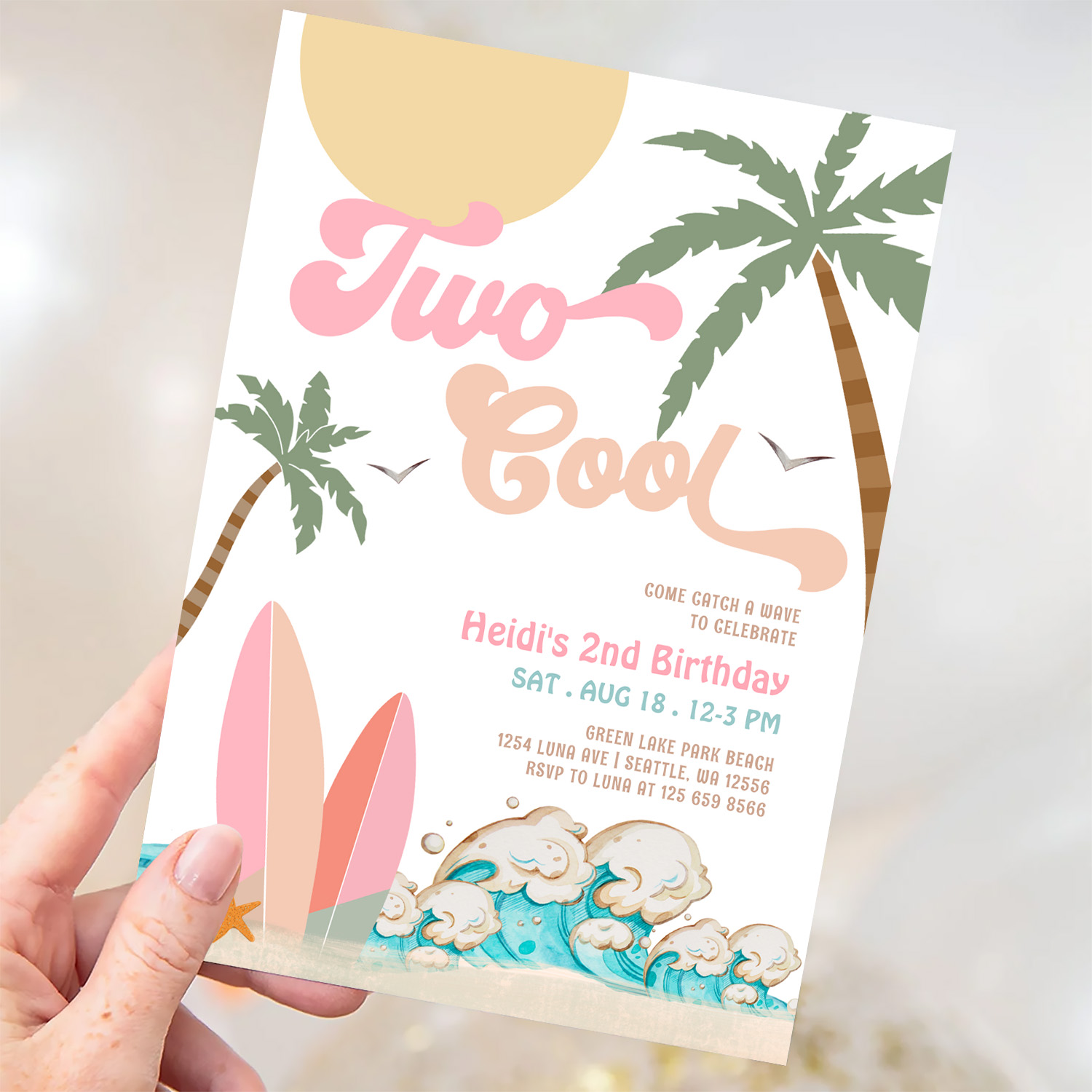 Girl Two Cool Surfing 2nd Birthday Beach Party Invitation