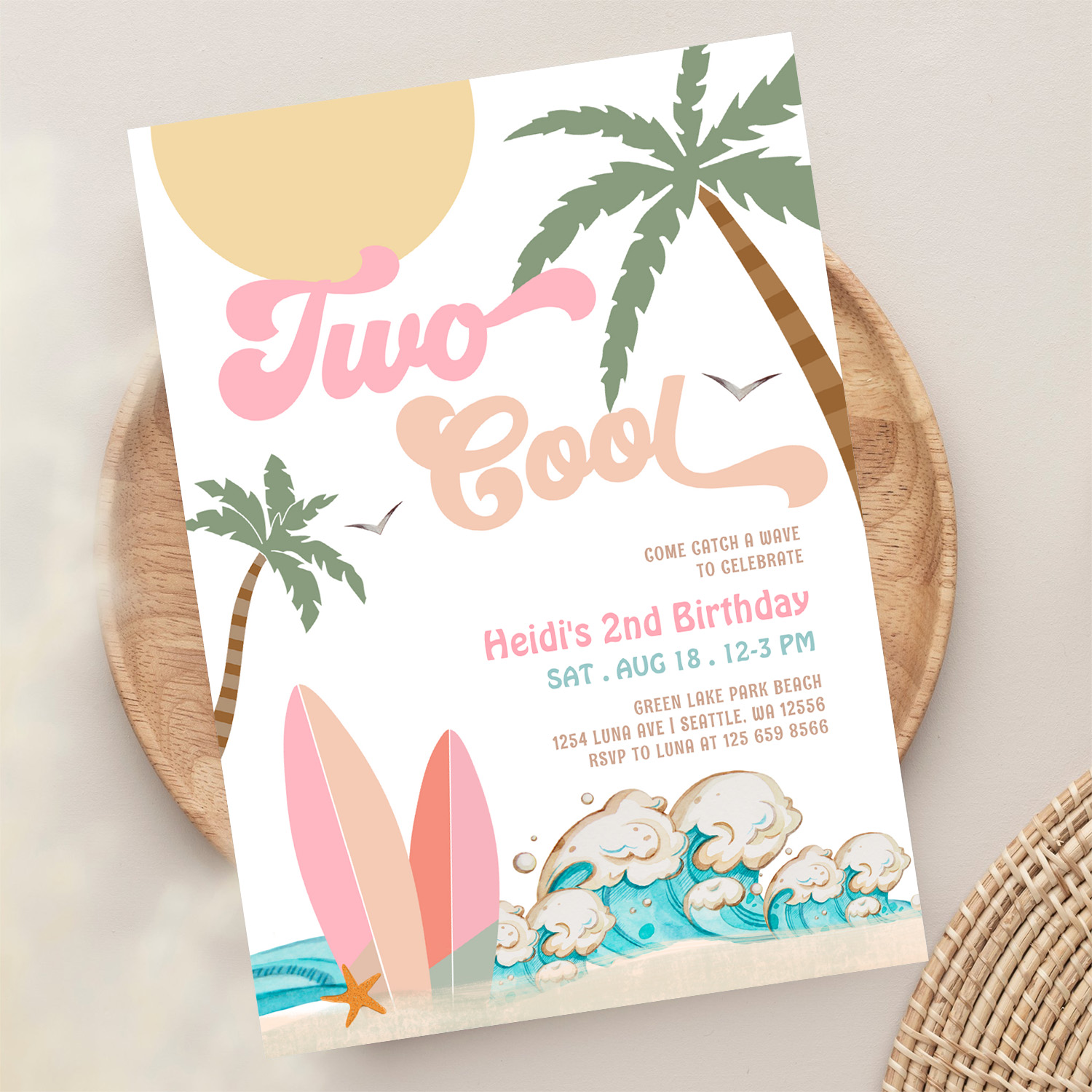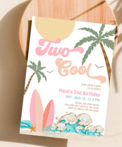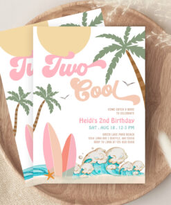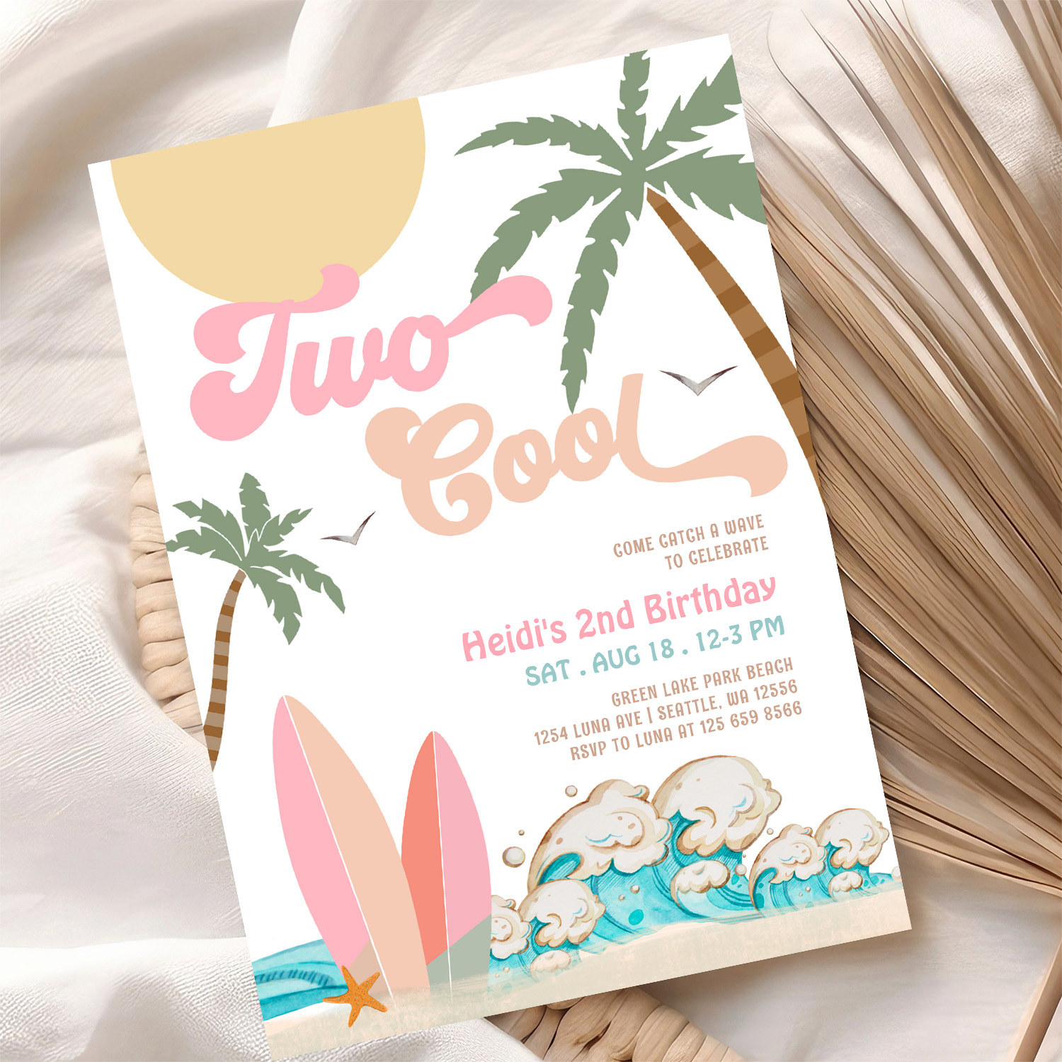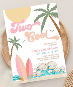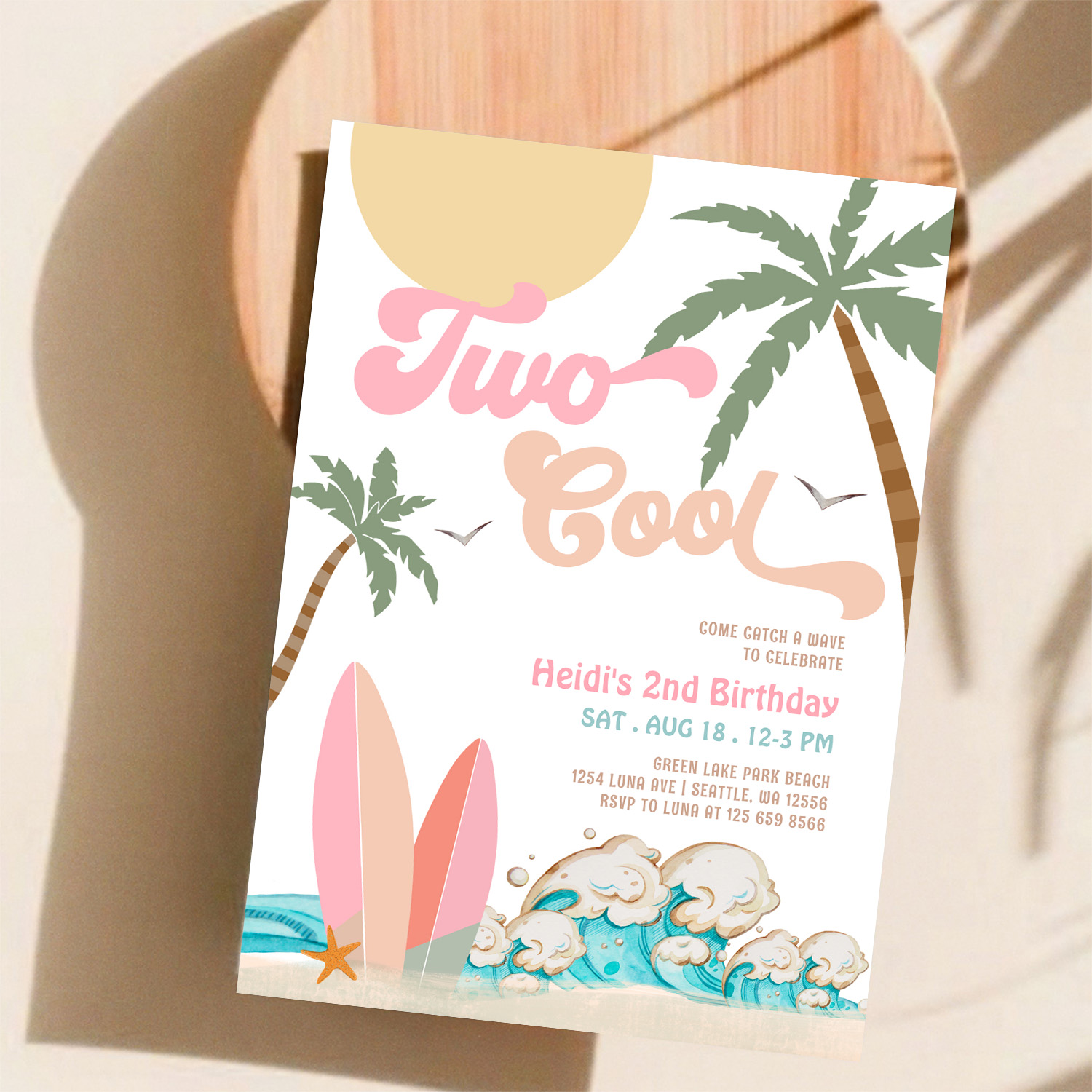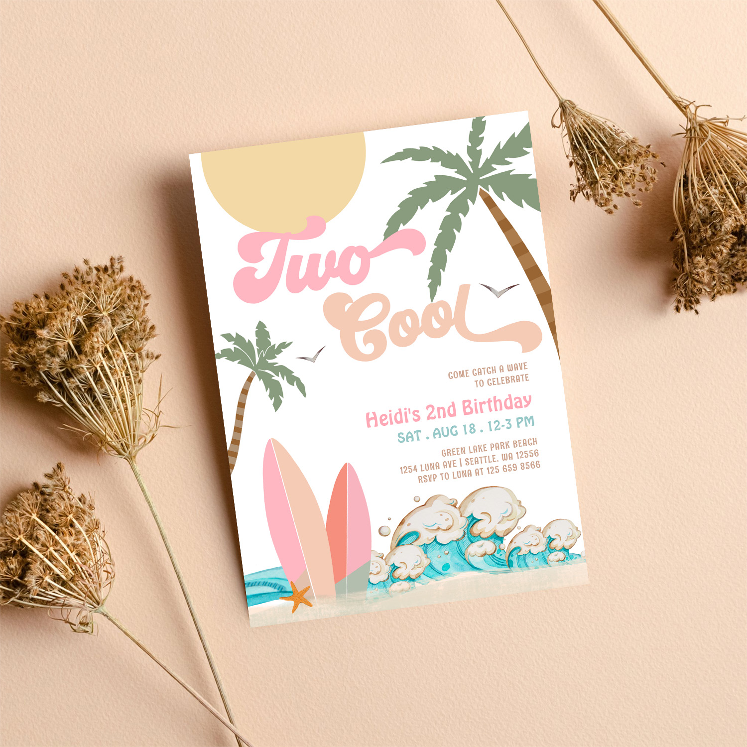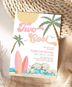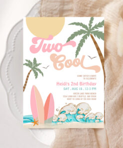 Girl Two Cool Surfing 2nd Birthday Beach Party Invitation - Related products