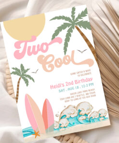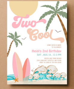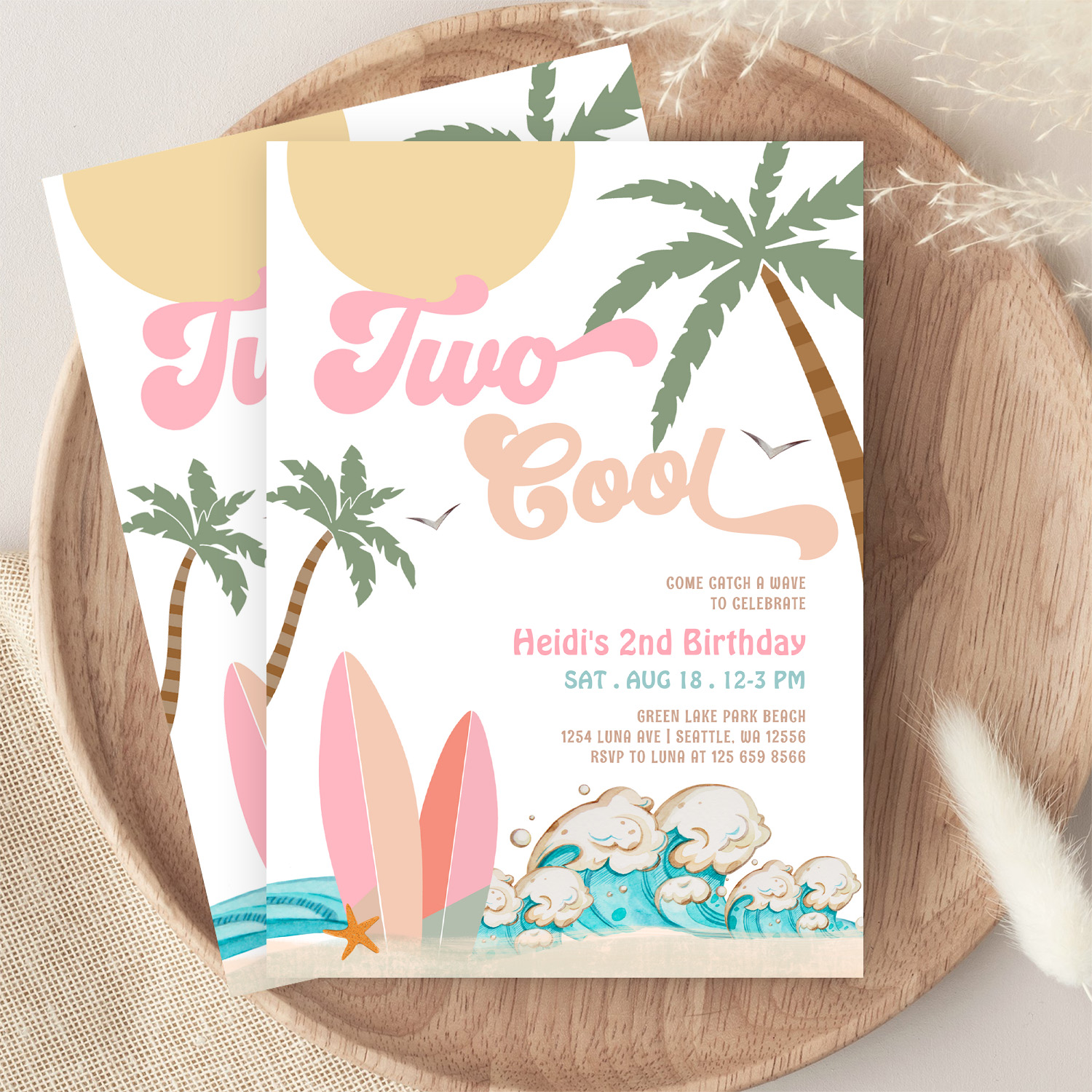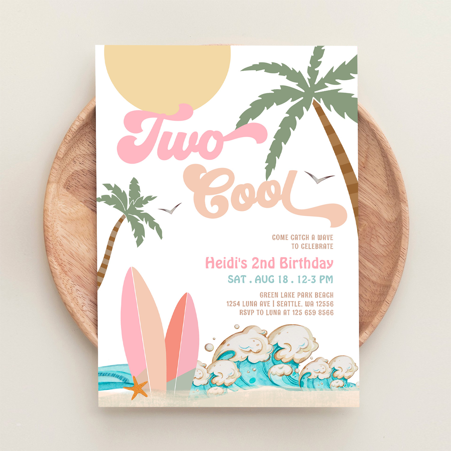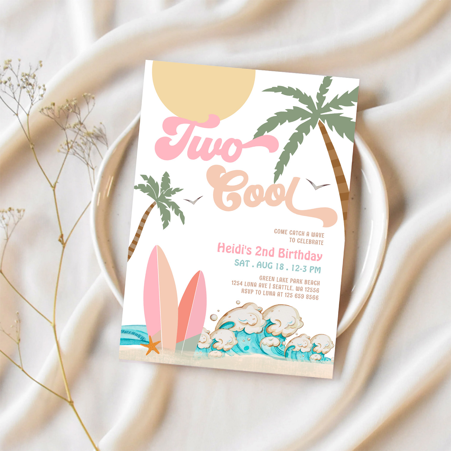Girl Two Cool Surfing 2nd Birthday Beach Party Invitation - Related products