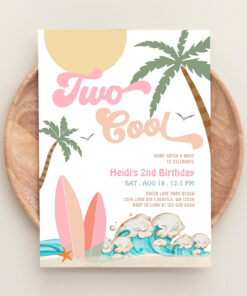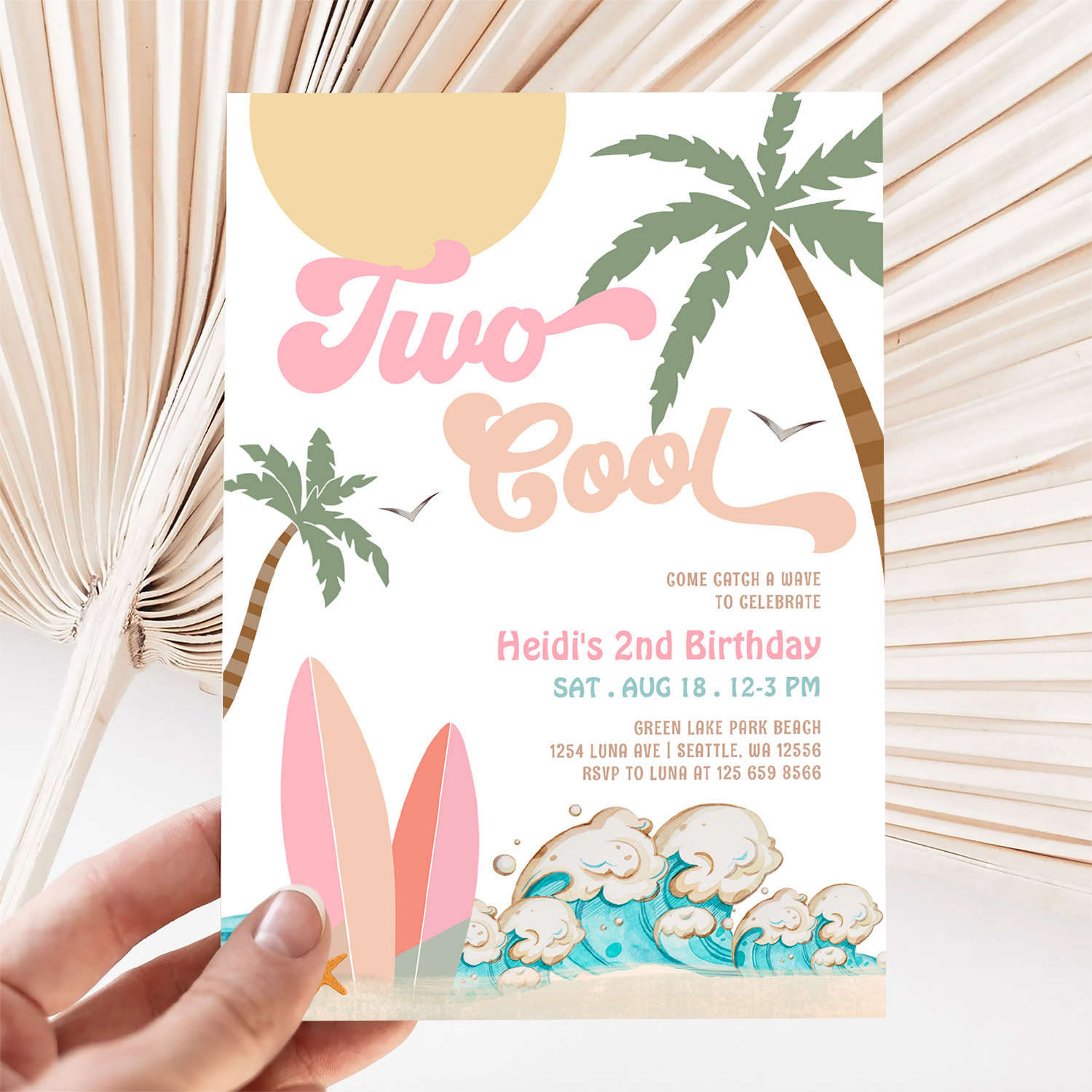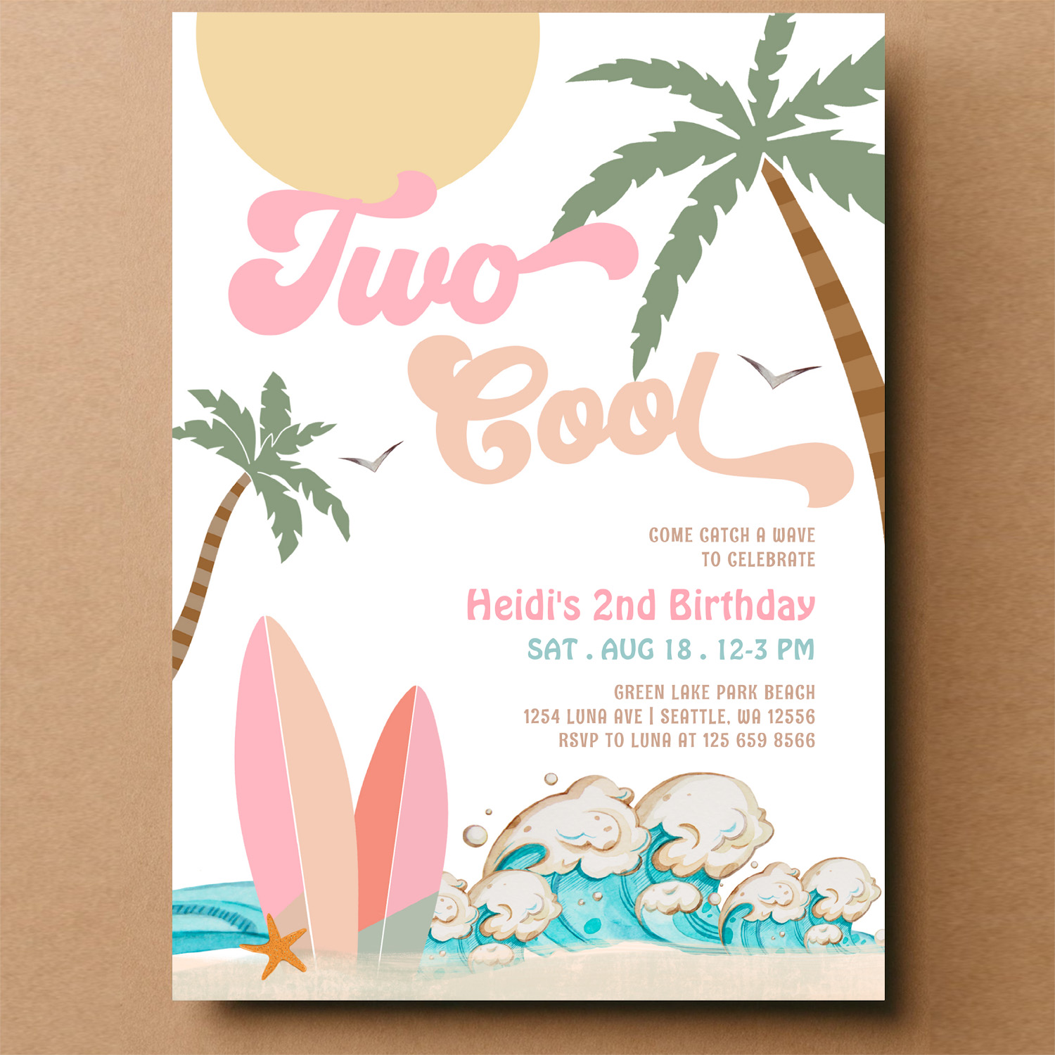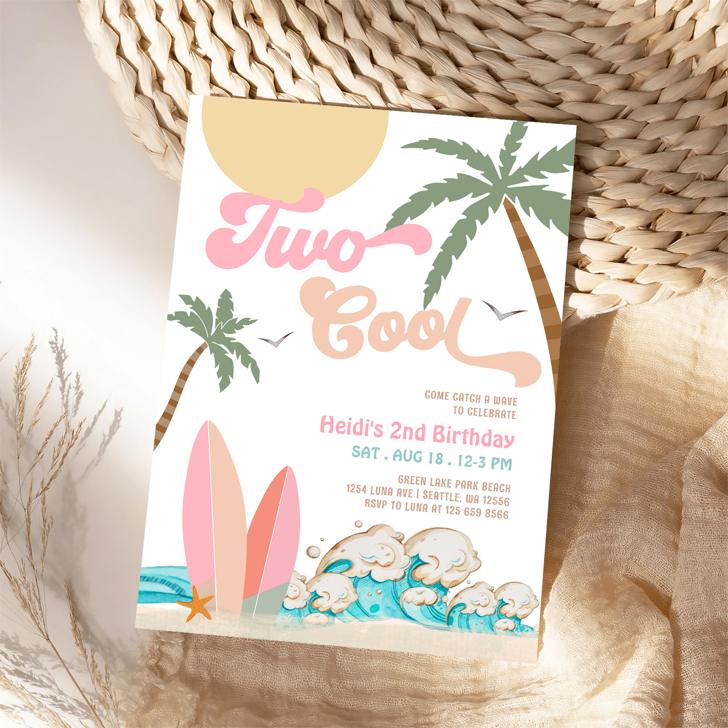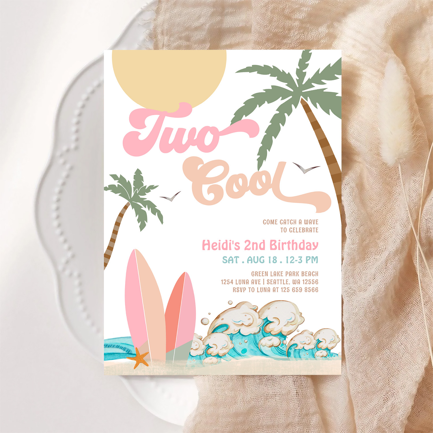 Girl Two Cool Surfing 2nd Birthday Beach Party Invitation - Related products
