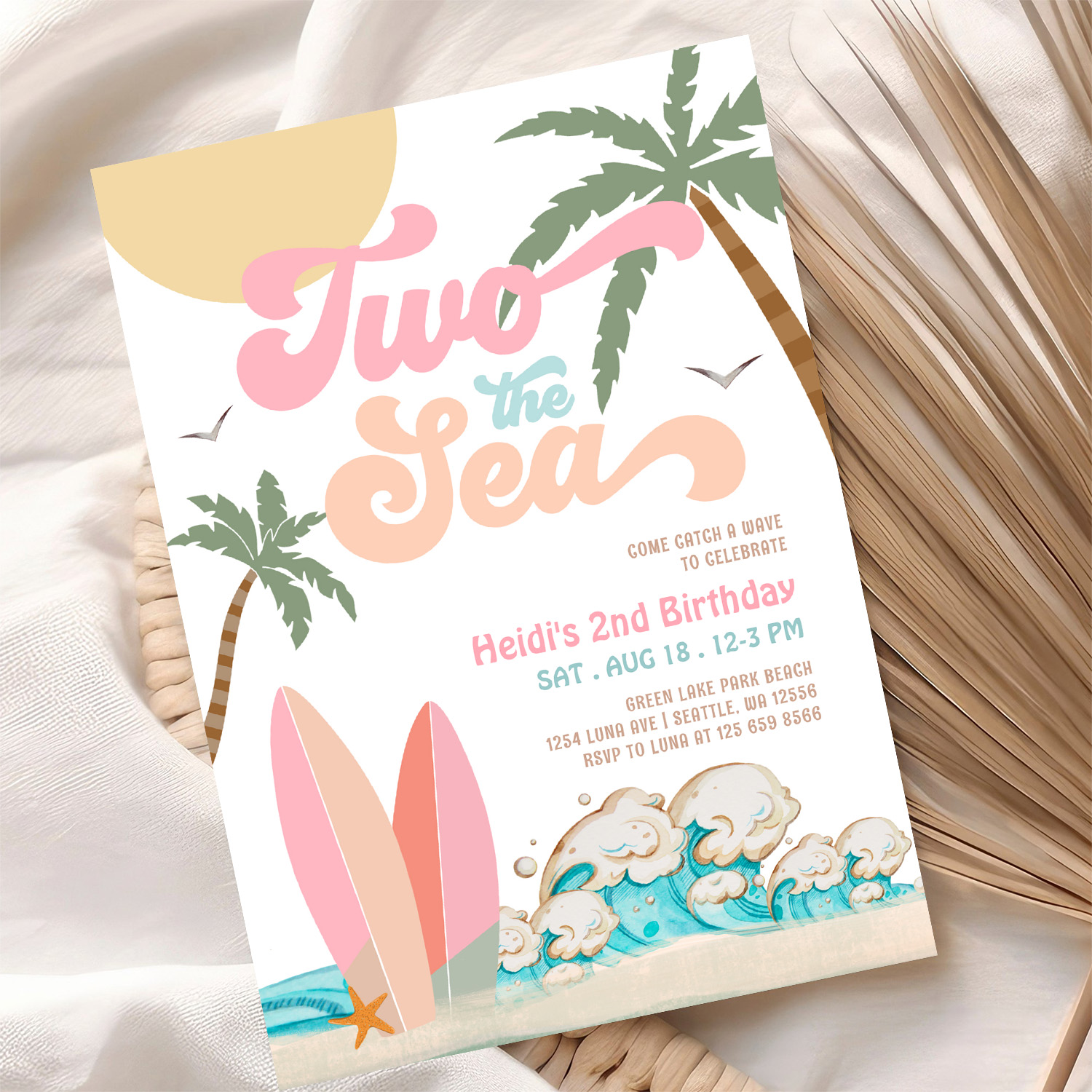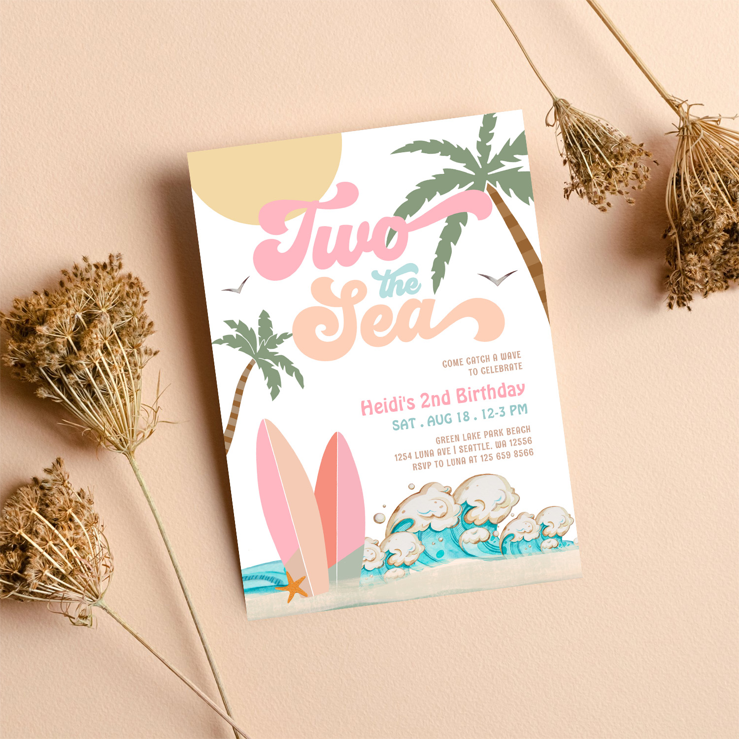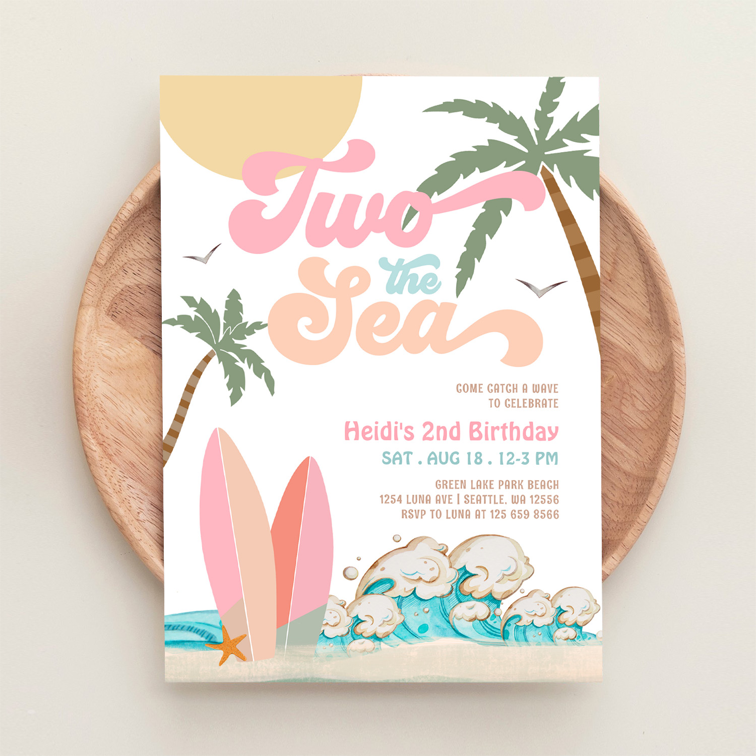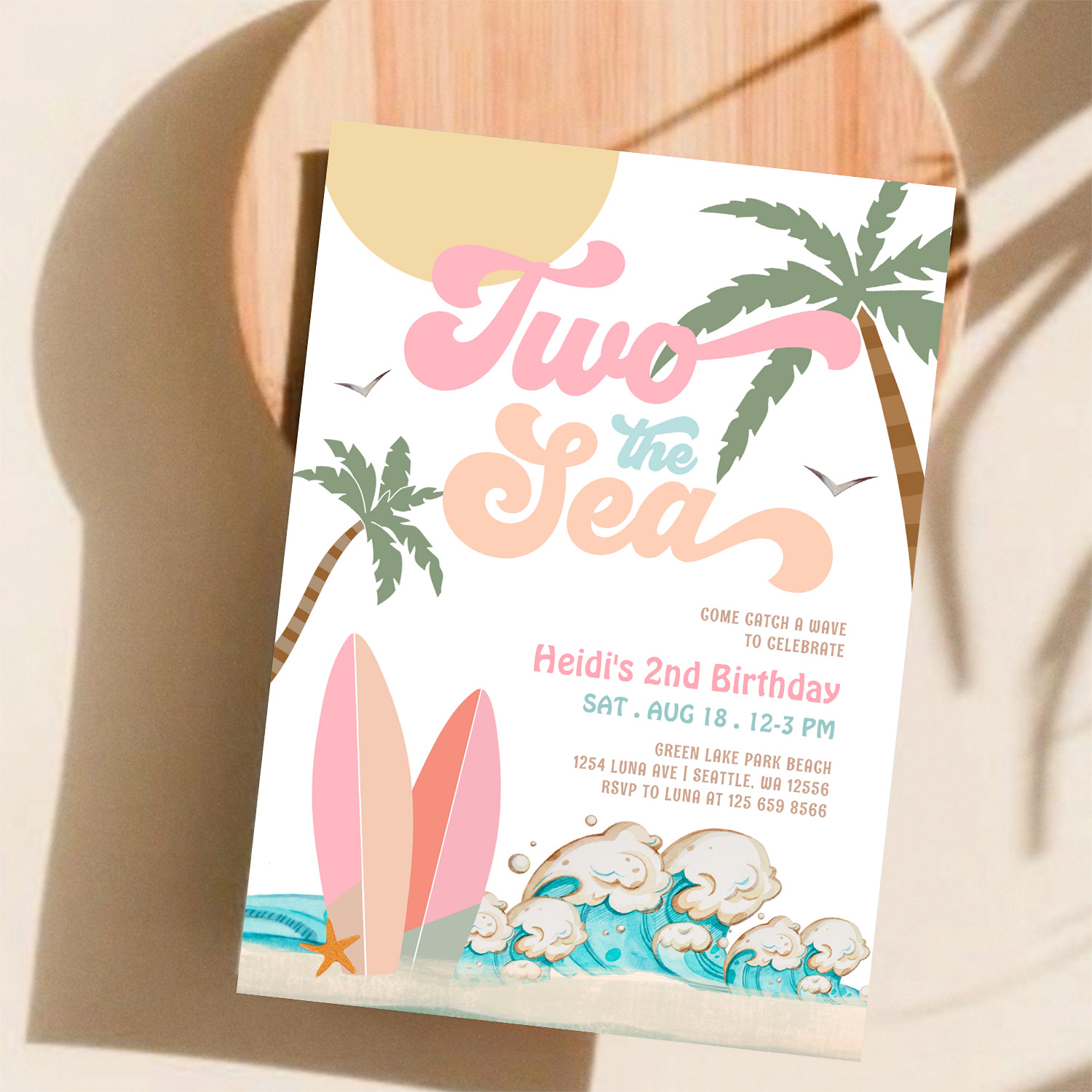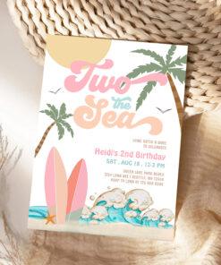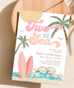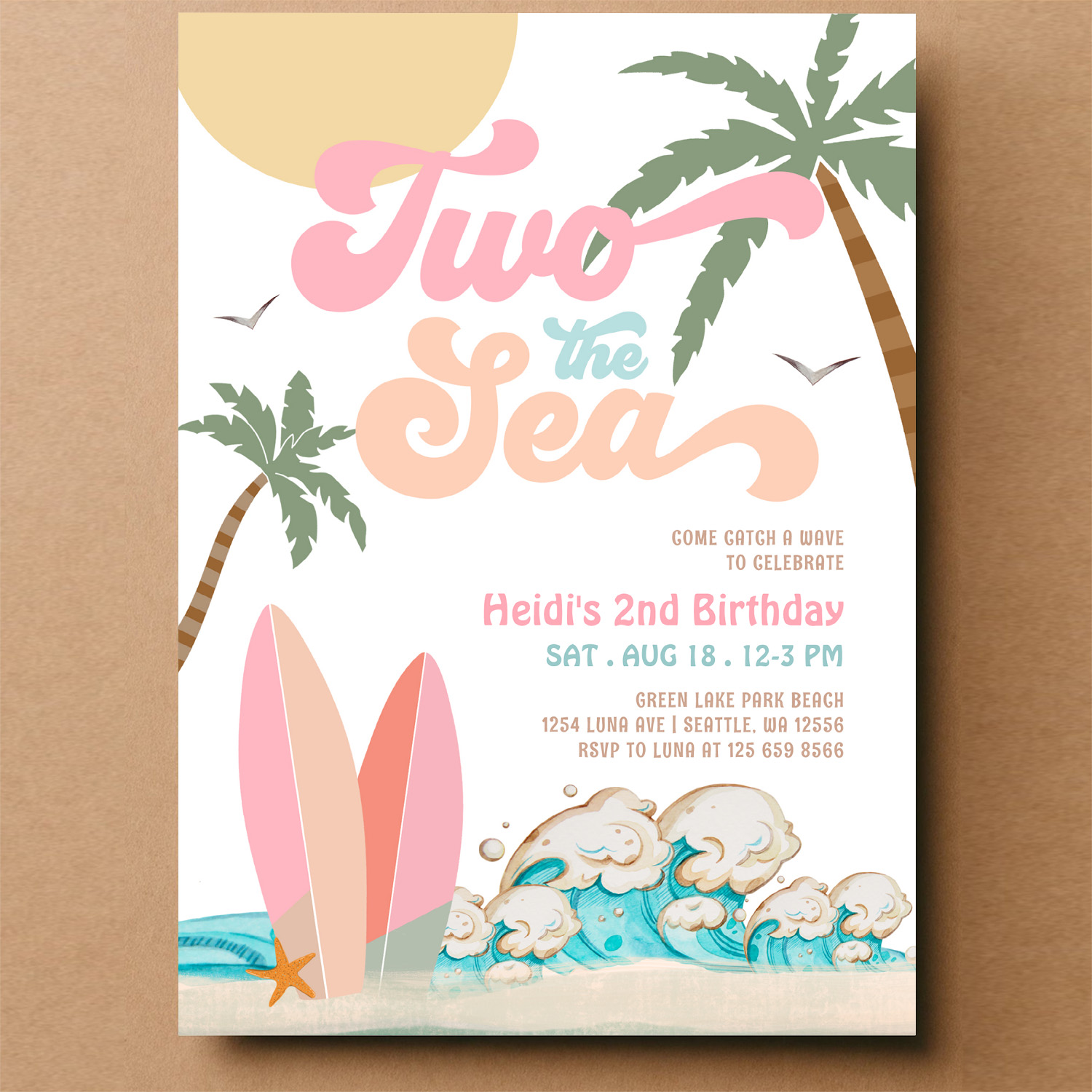Girl Two The Sea Surfing 2nd Birthday Beach Party Invitation
