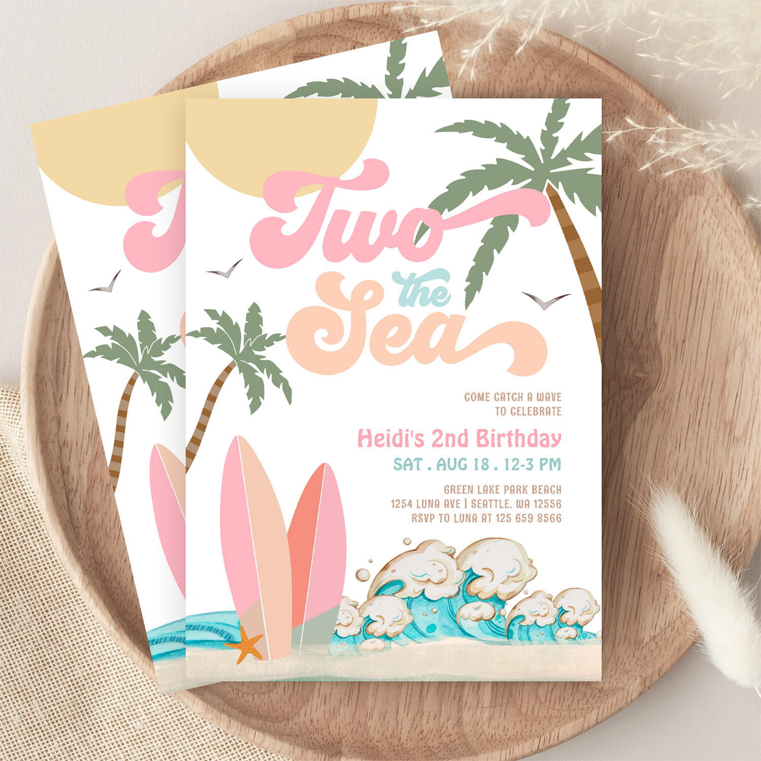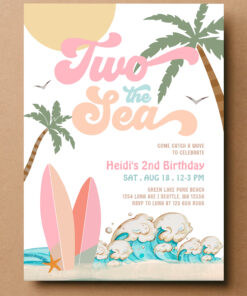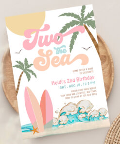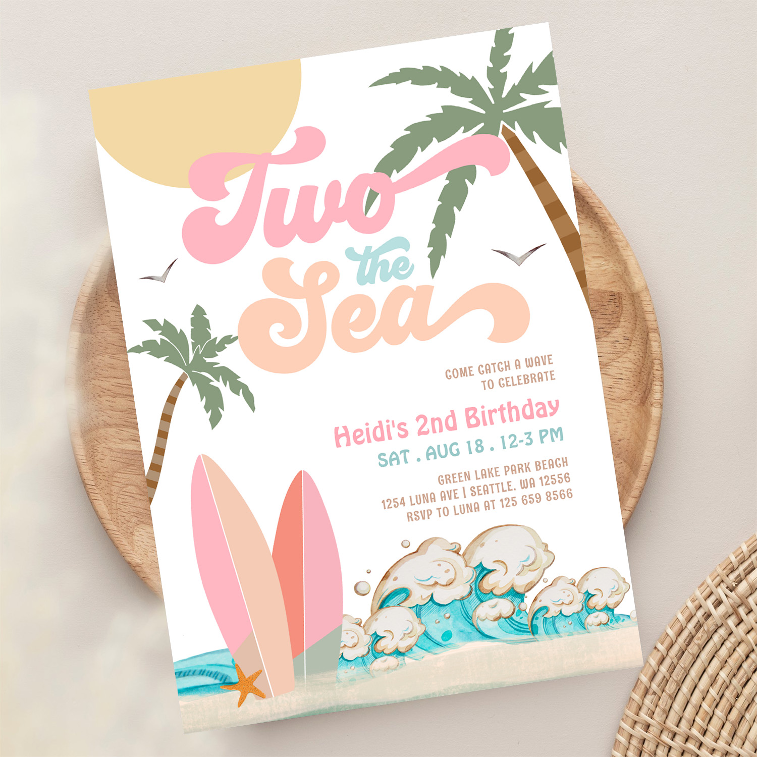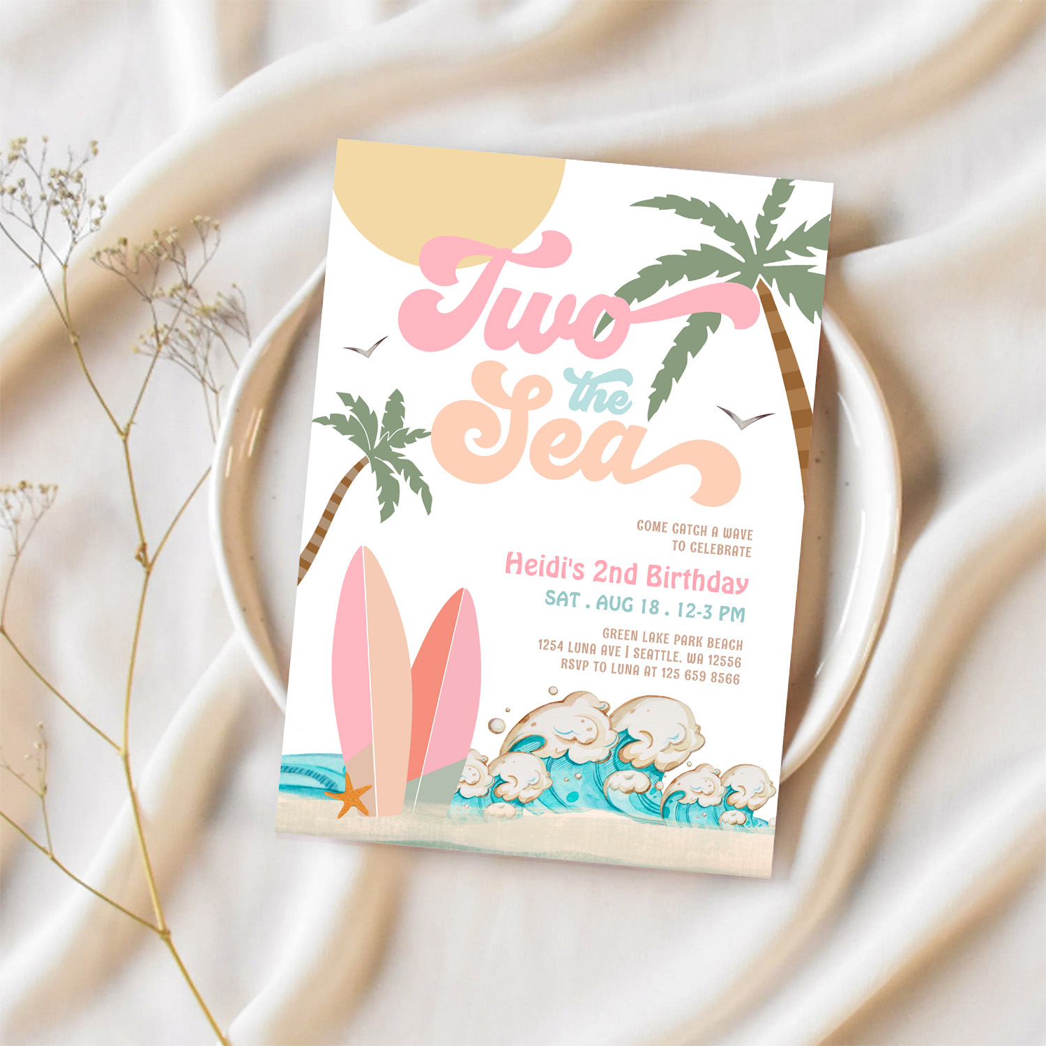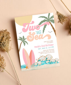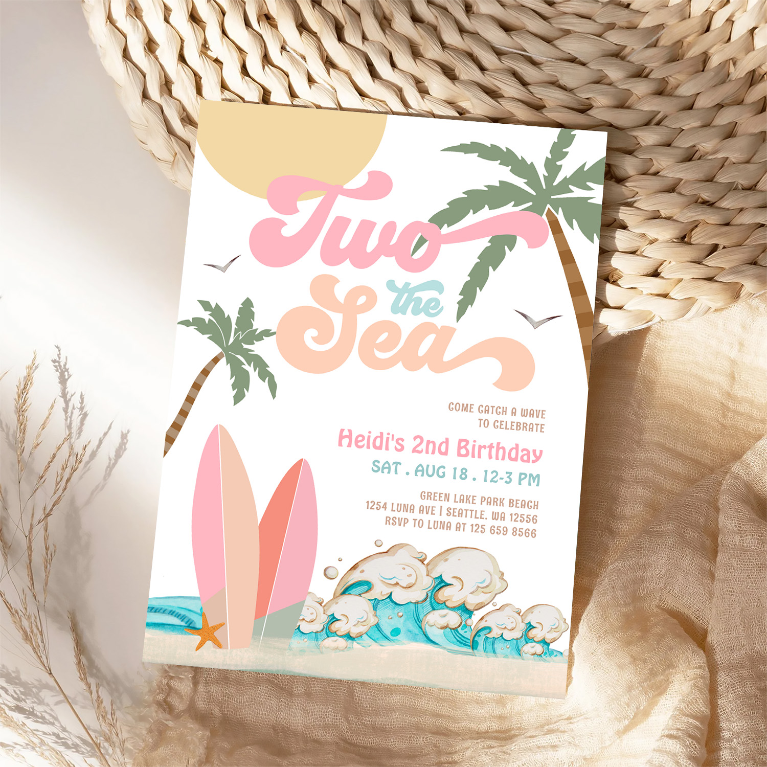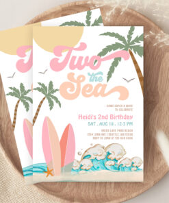 Girl Two The Sea Surfing 2nd Birthday Beach Party Invitation