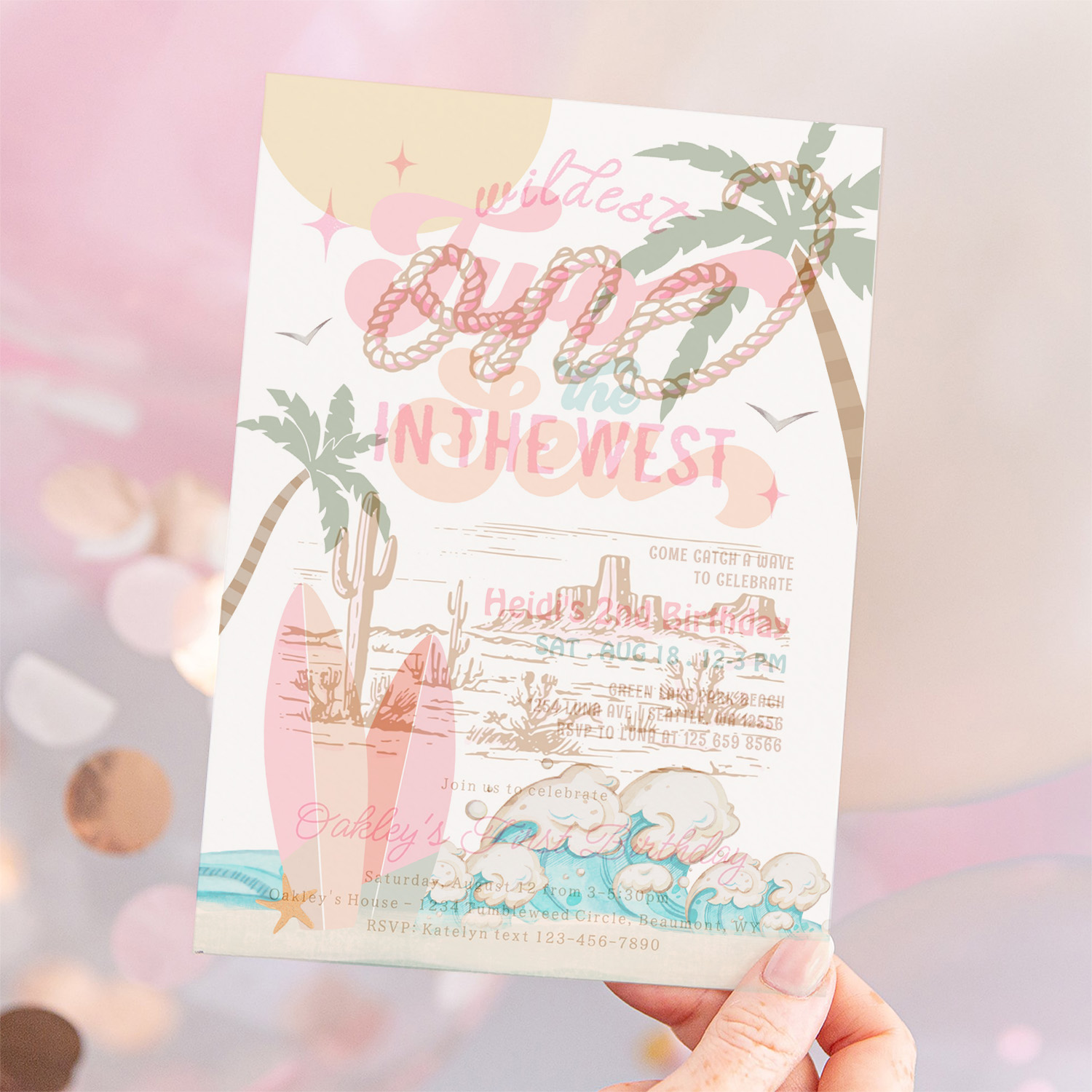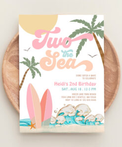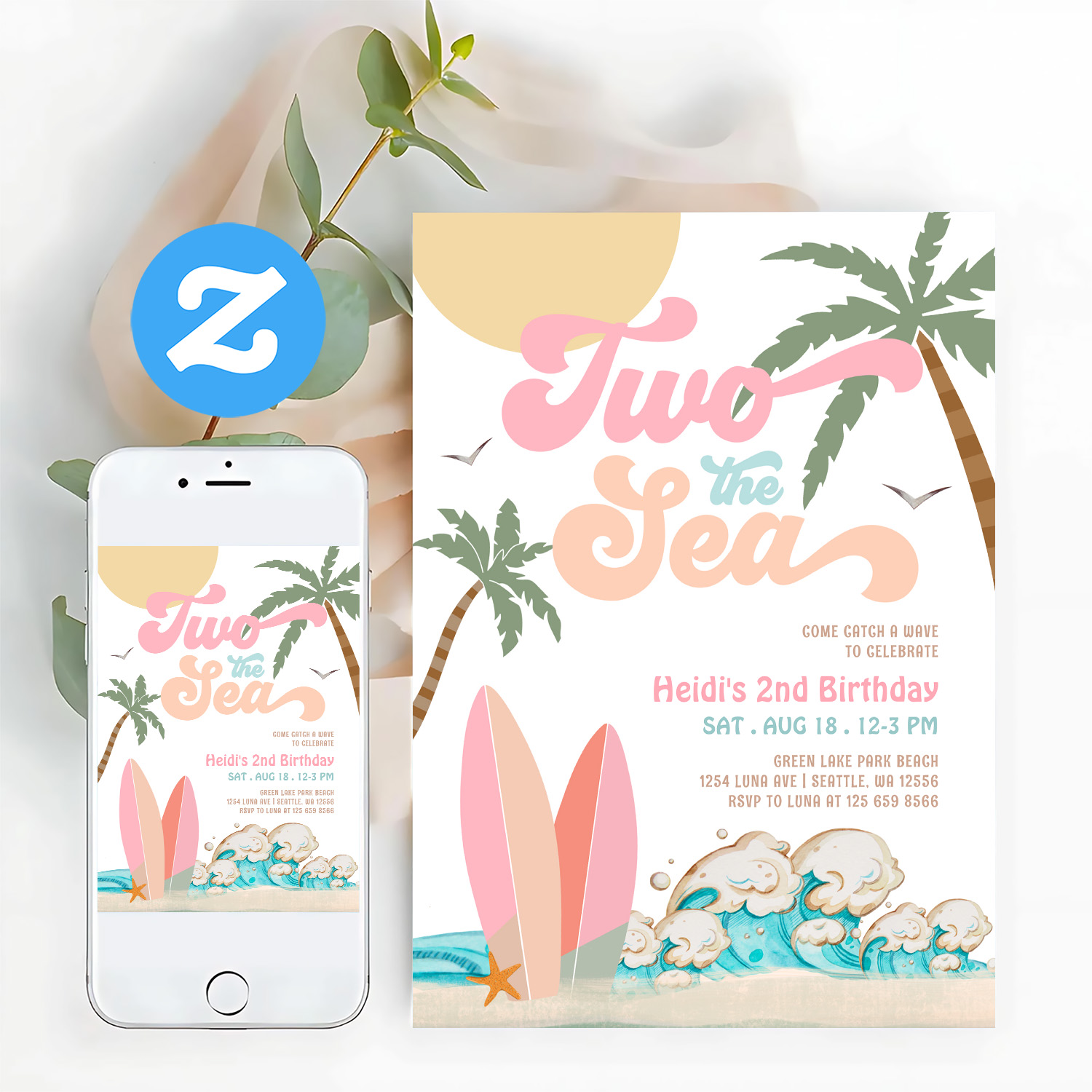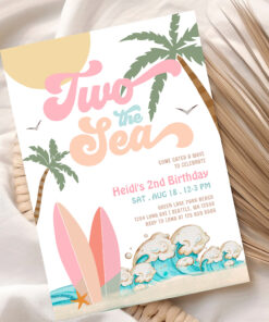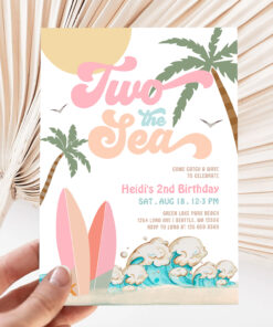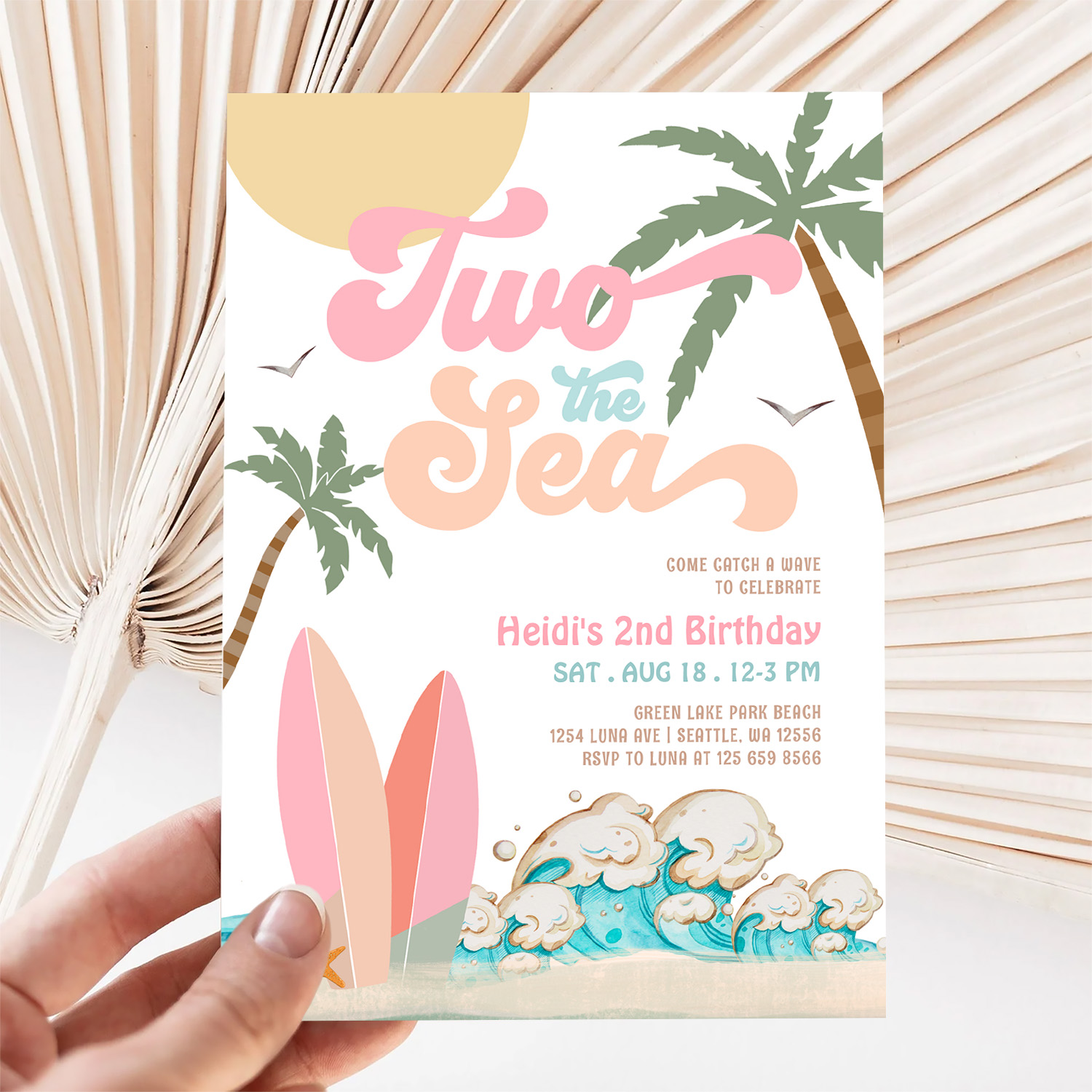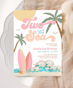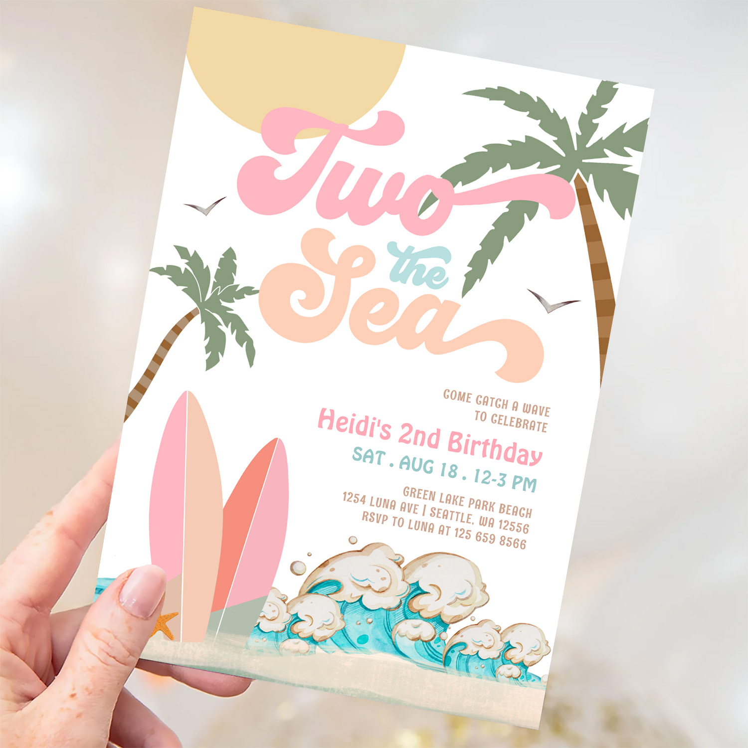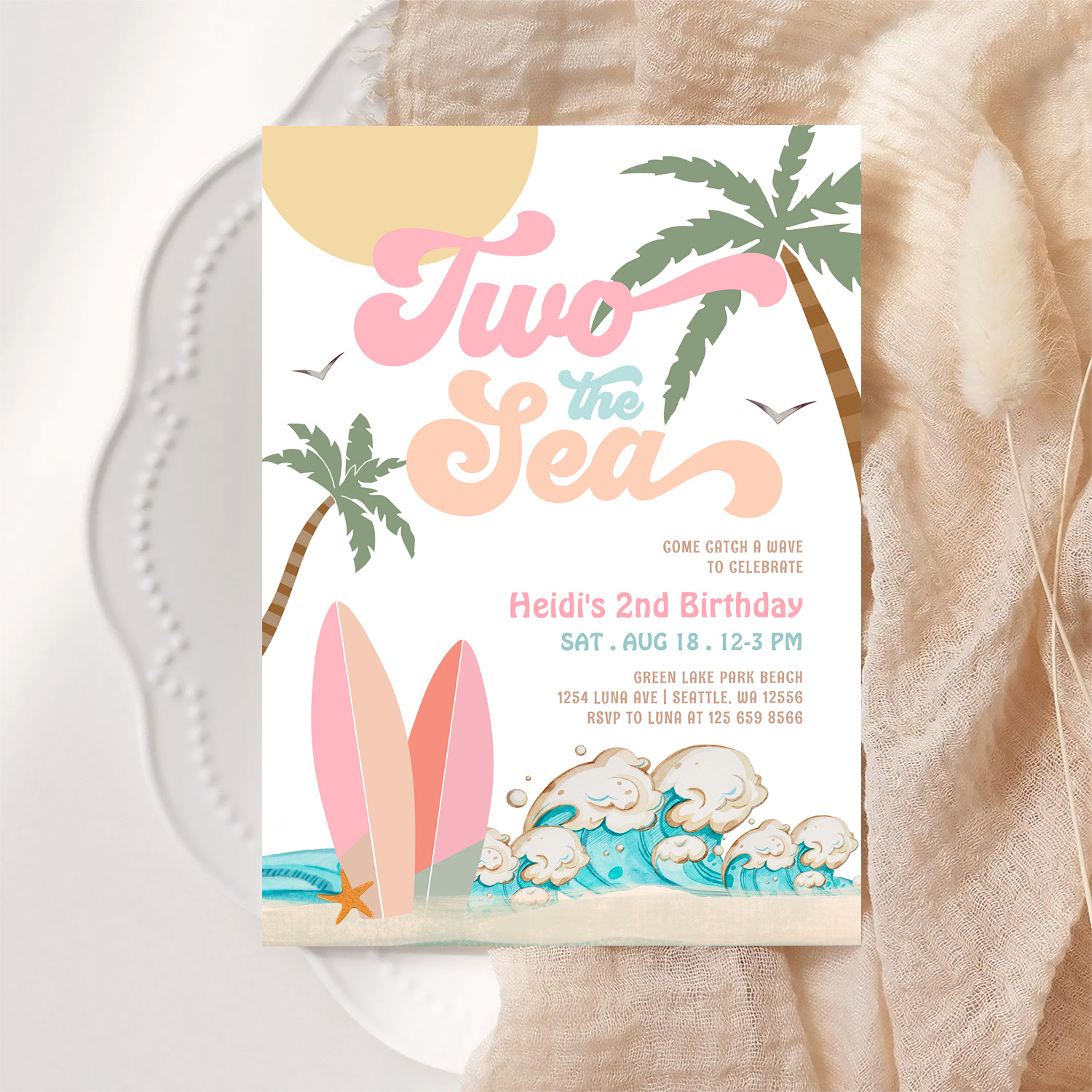 Girl Two The Sea Surfing 2nd Birthday Beach Party Invitation
