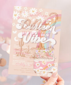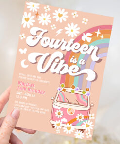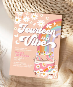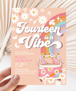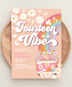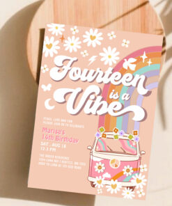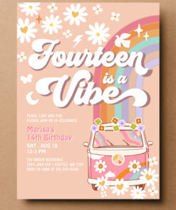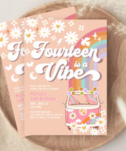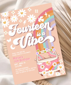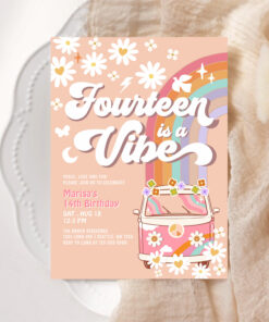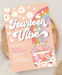 Groovy 14th Hippie Vibe Pink Daisy Birthday Invitation - Related products