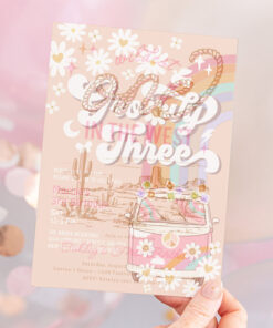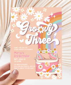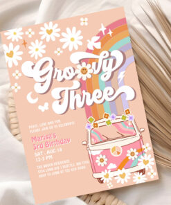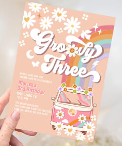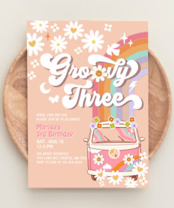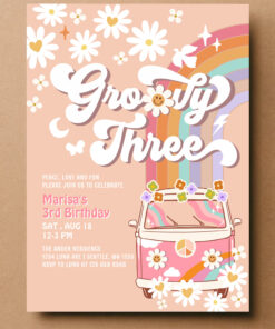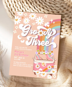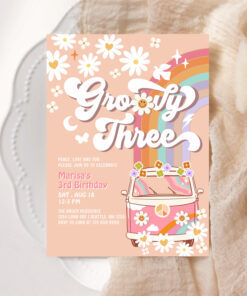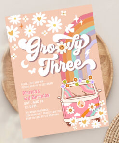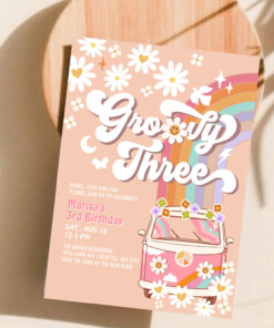 Groovy 3rd Pink Daisy Rainbow Hippie Birthday Invitation - Related products