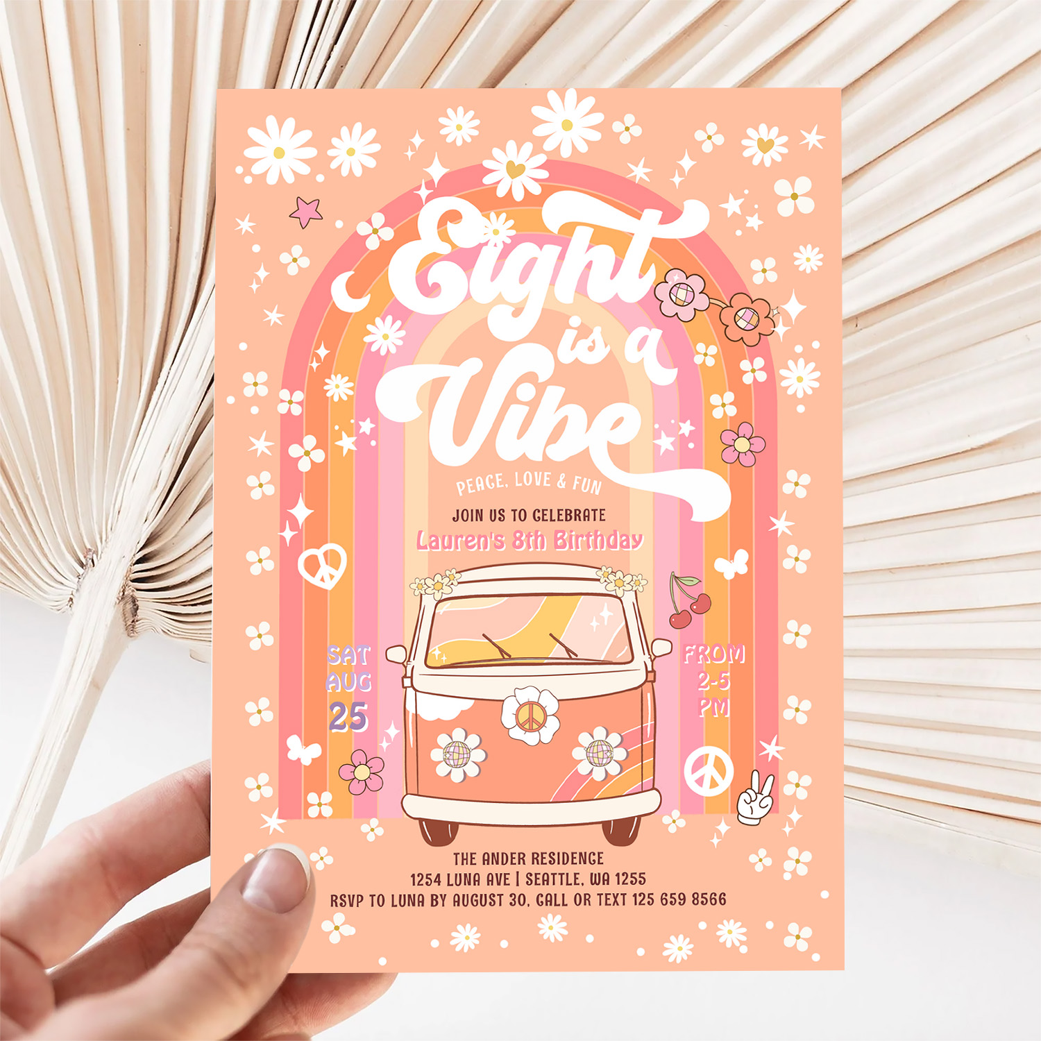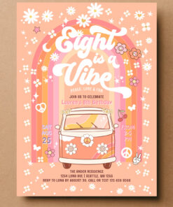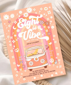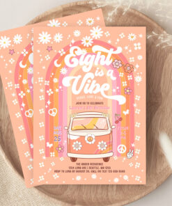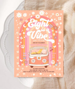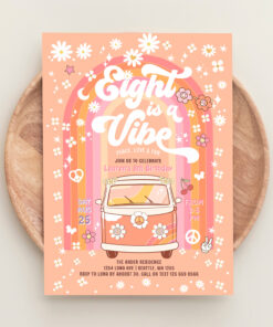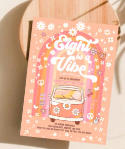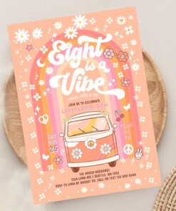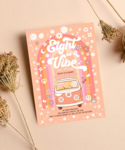Groovy Eight Is A Vibe Van Bus 8th Birthday Invitation - Related products