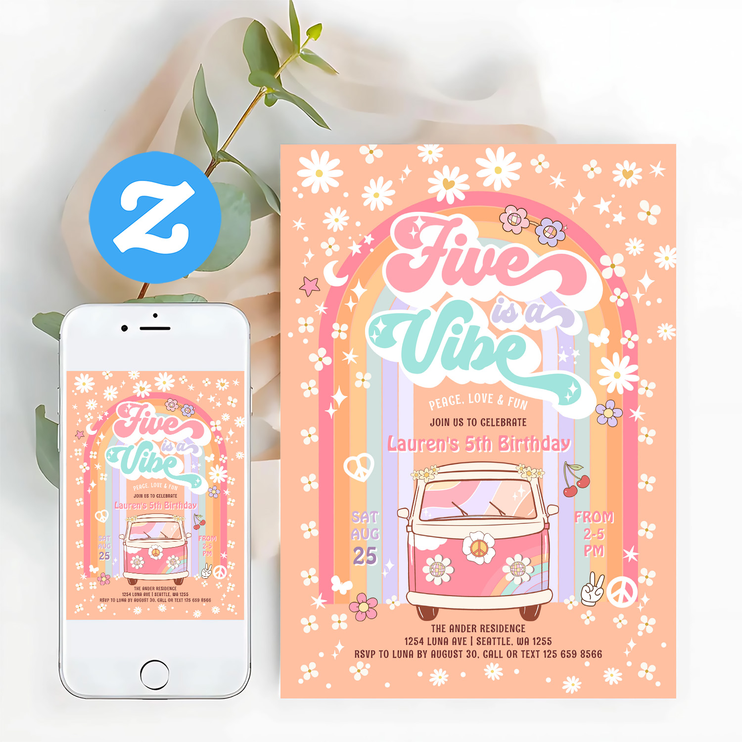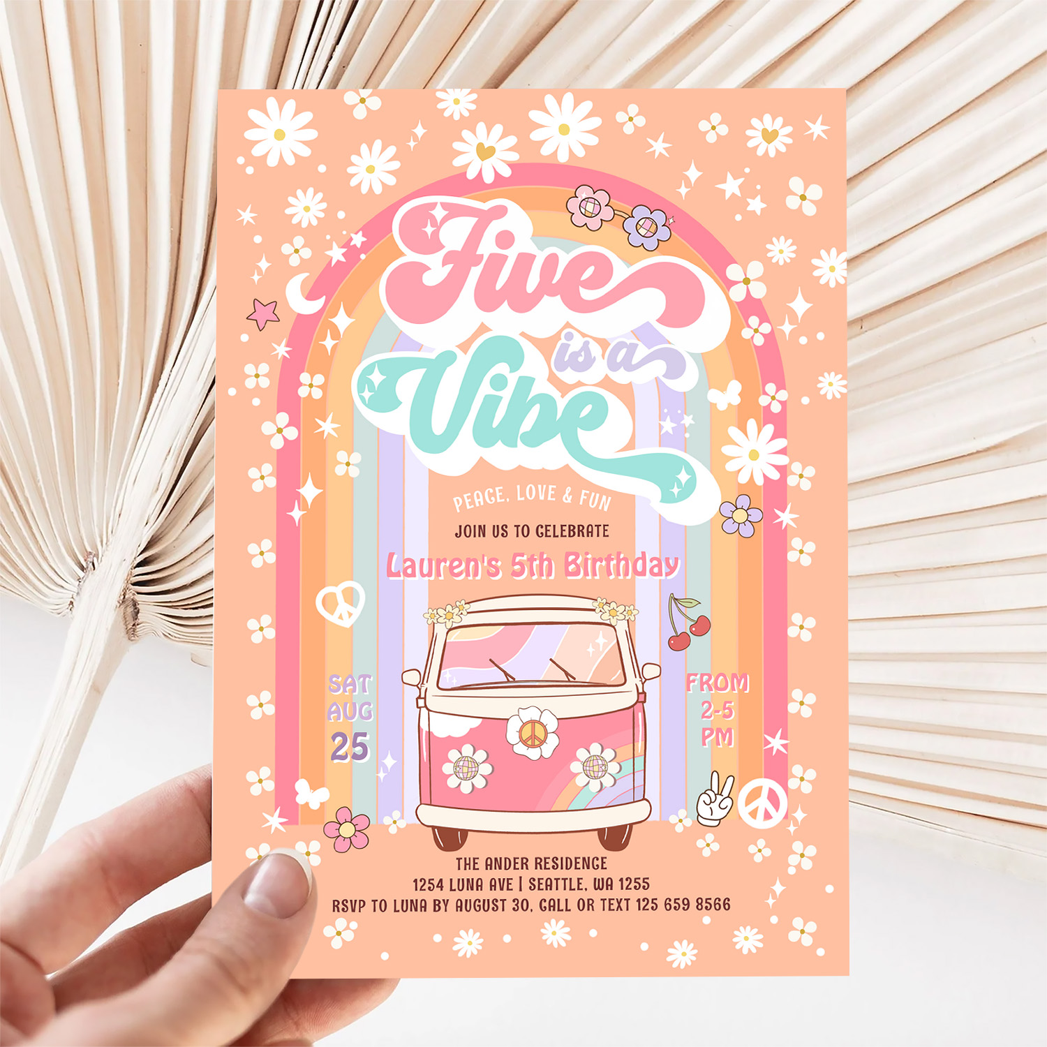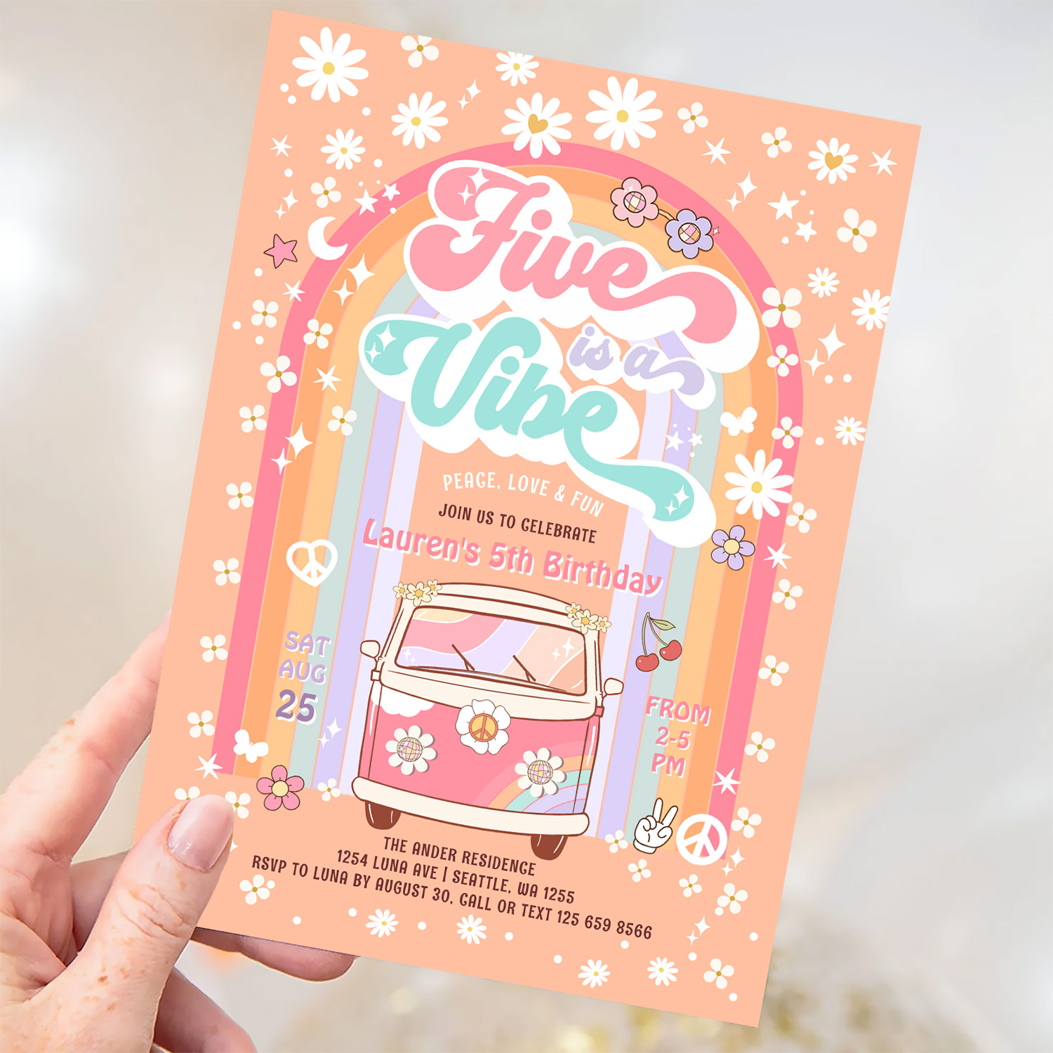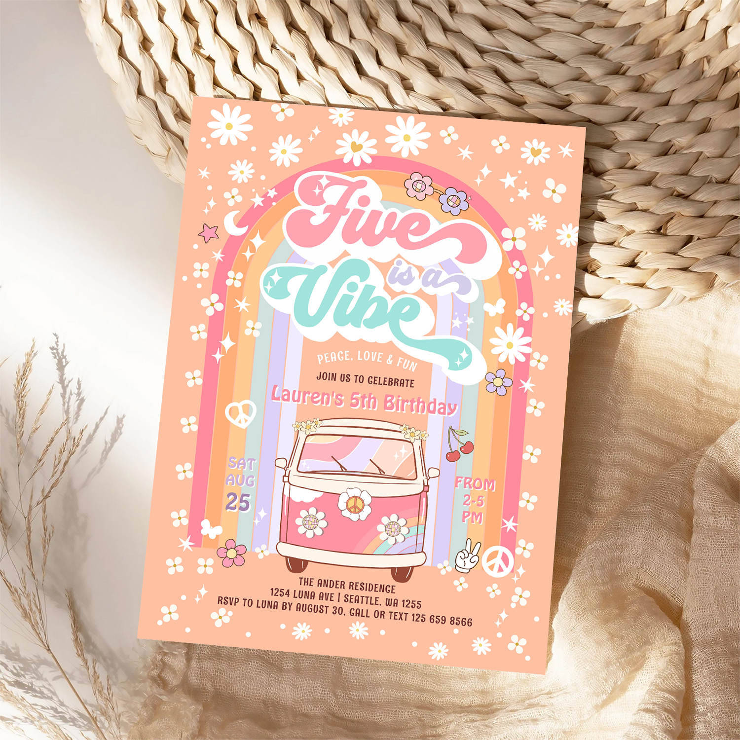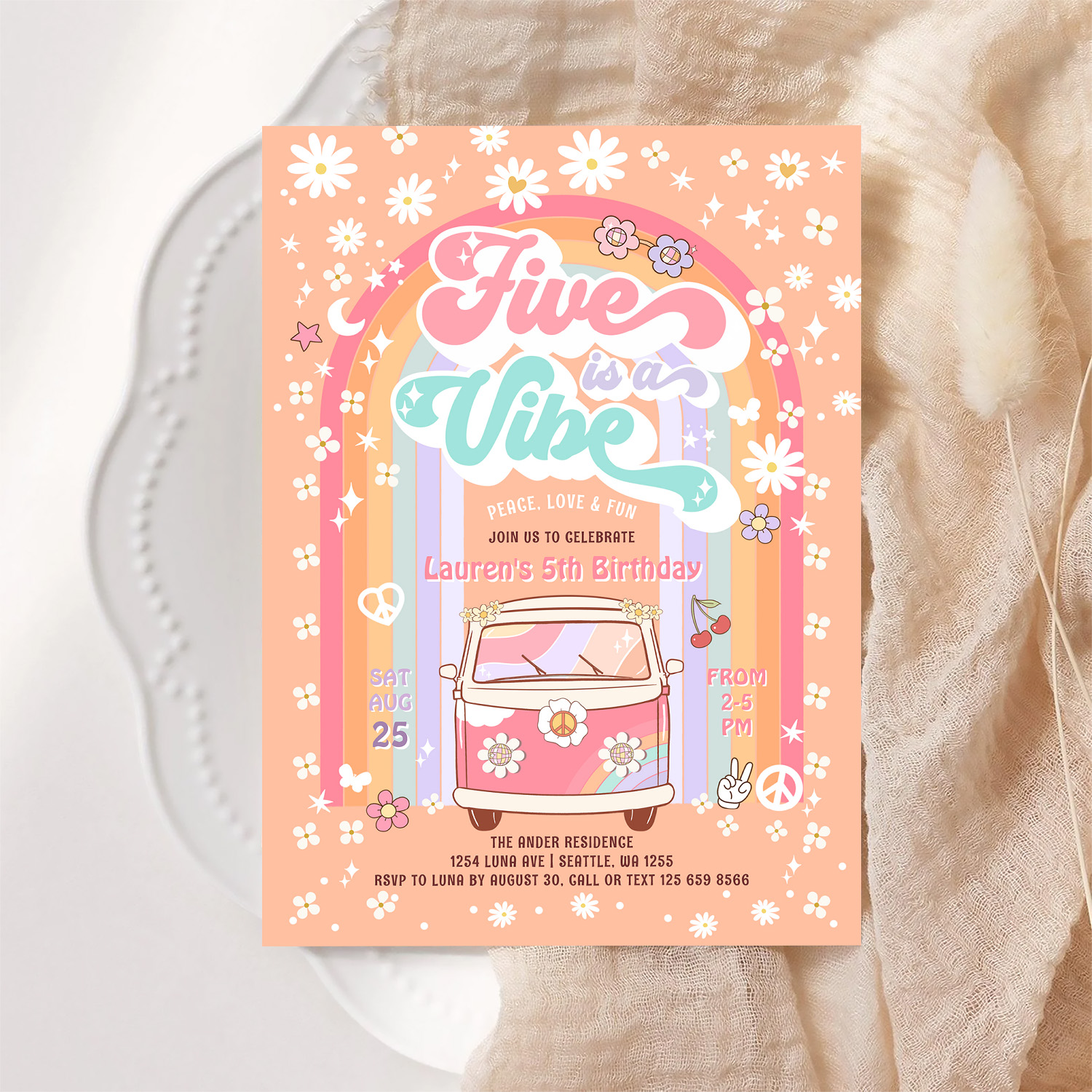Groovy Five Is A Vibe Daisy 5th Birthday Invitation