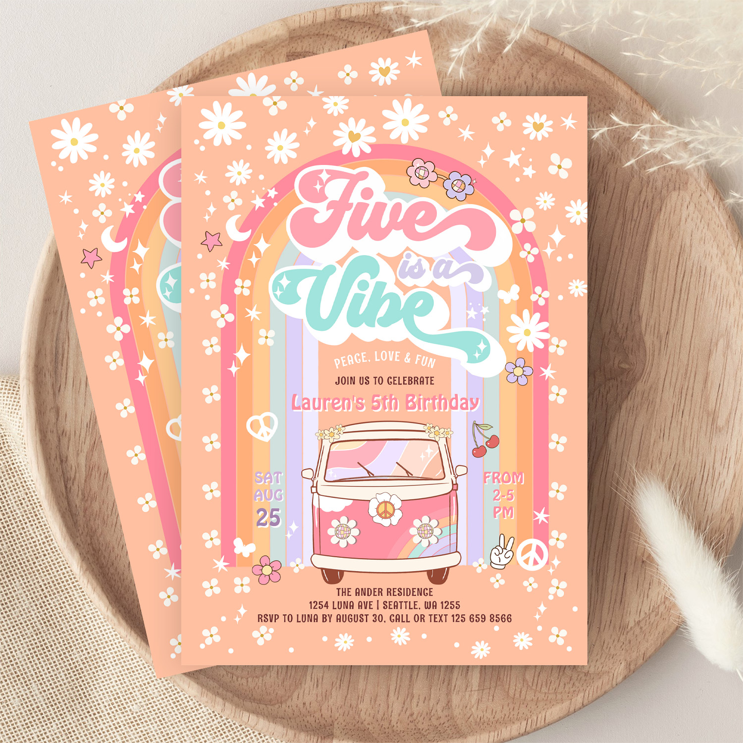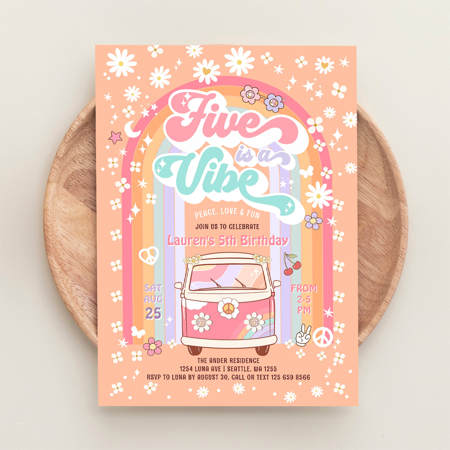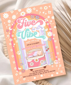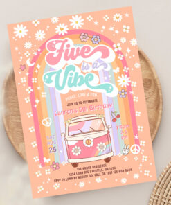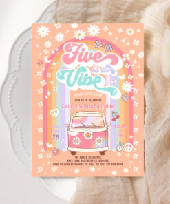 Groovy Five Is A Vibe Daisy 5th Birthday Invitation - Related products