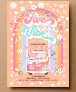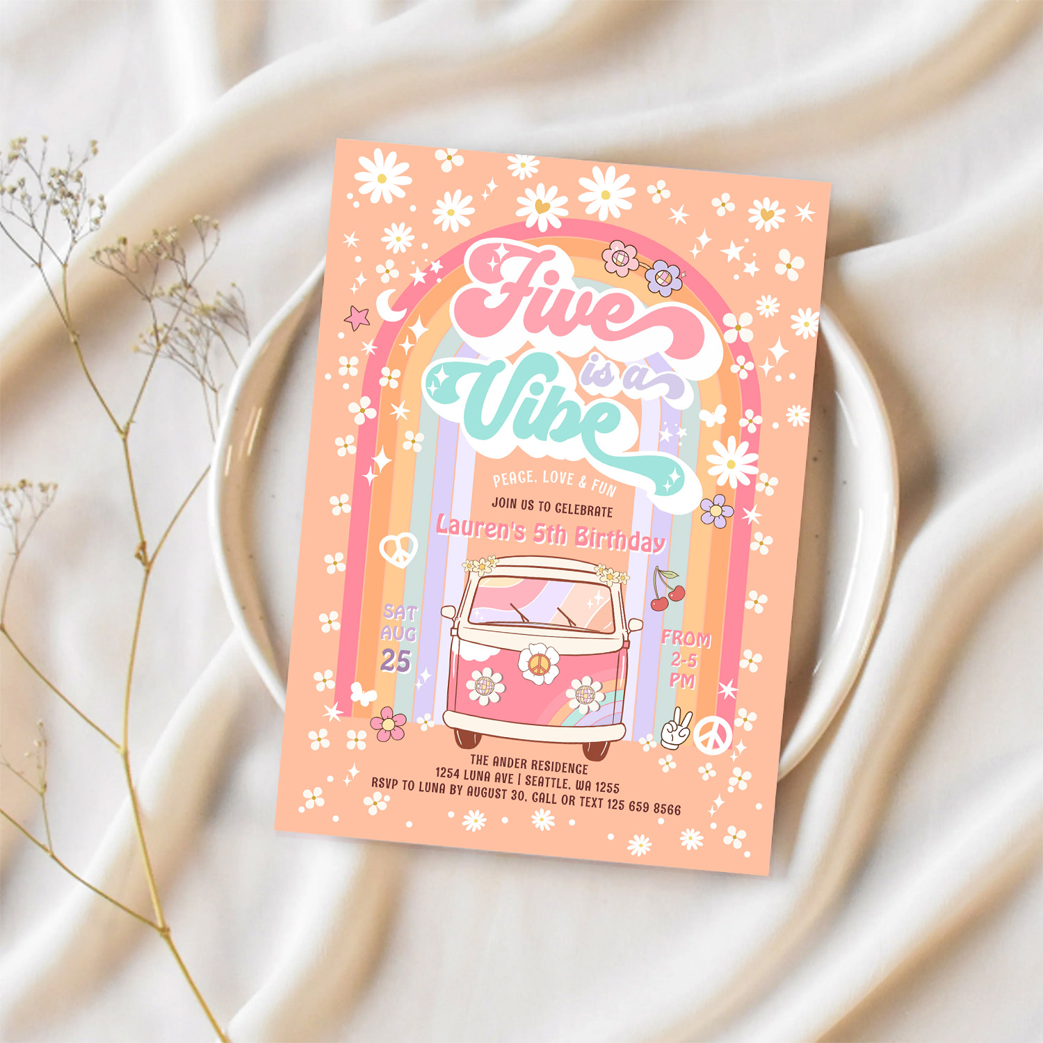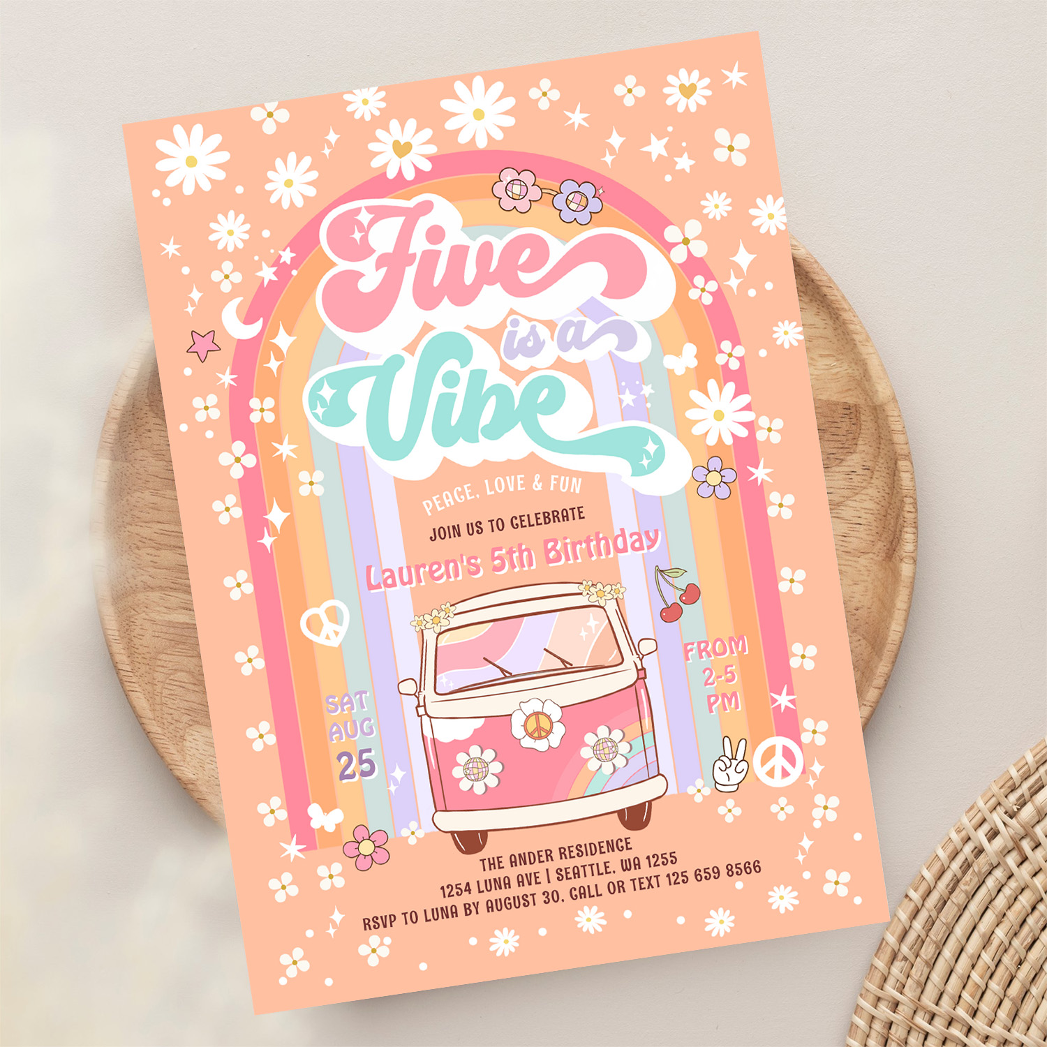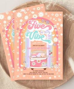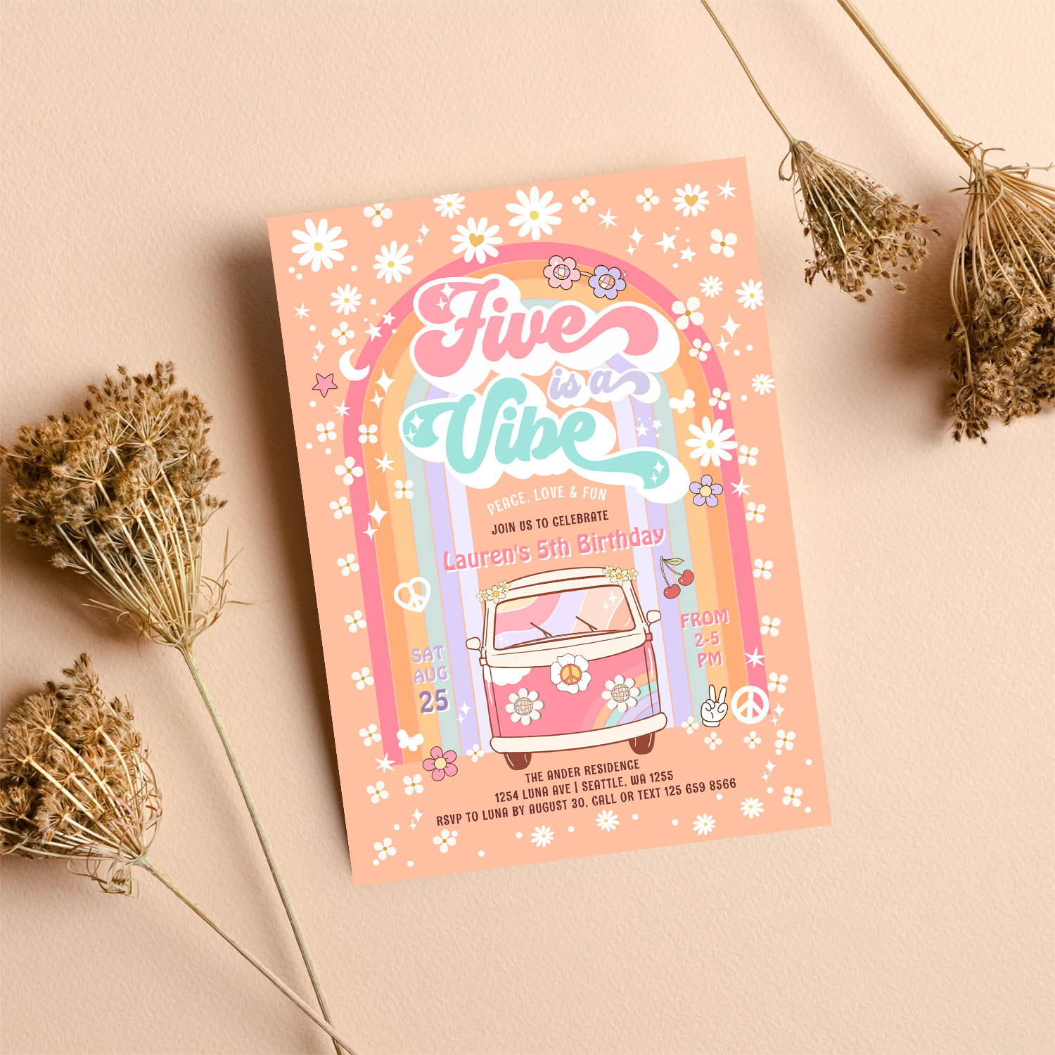 Groovy Five Is A Vibe Daisy 5th Birthday Invitation - Related products