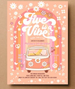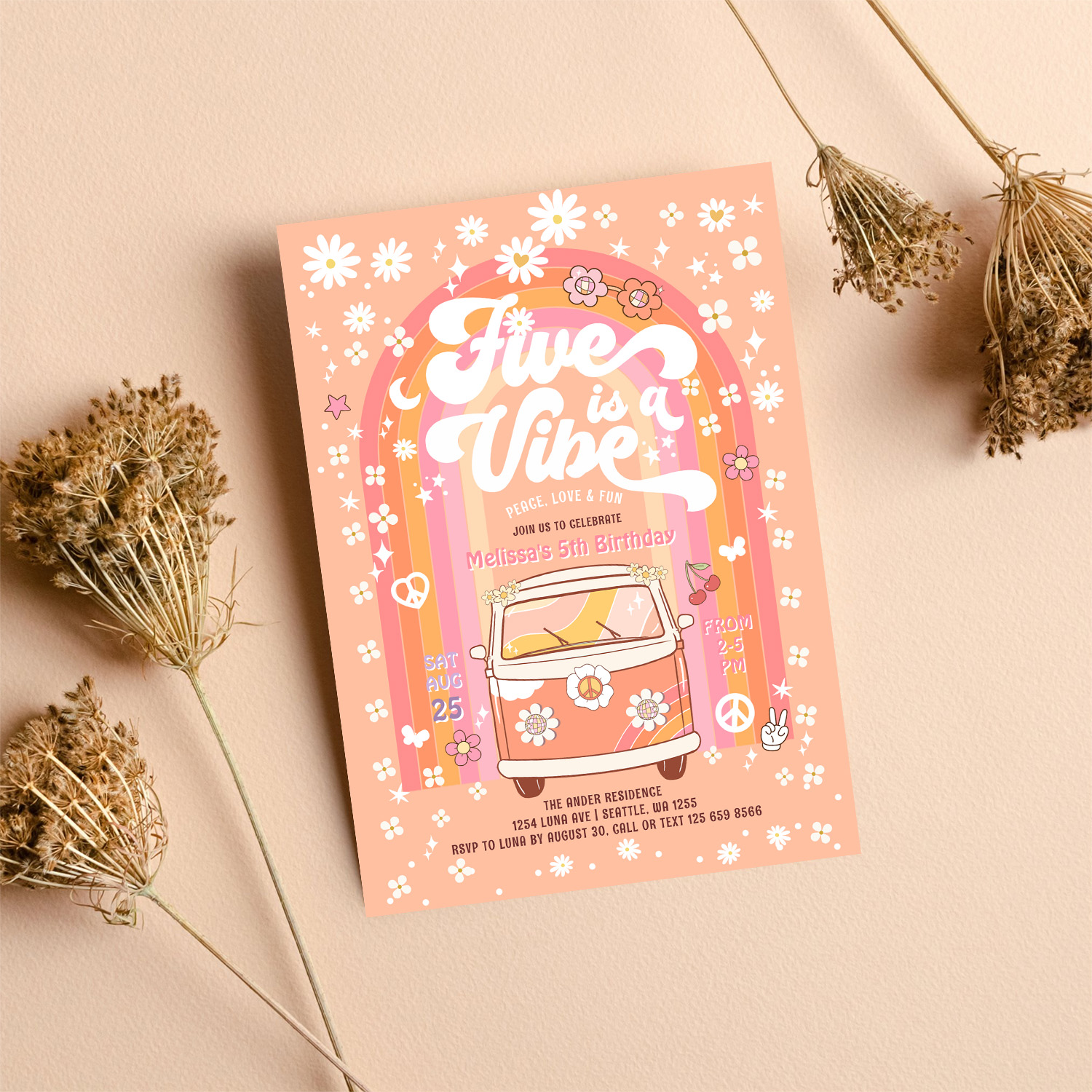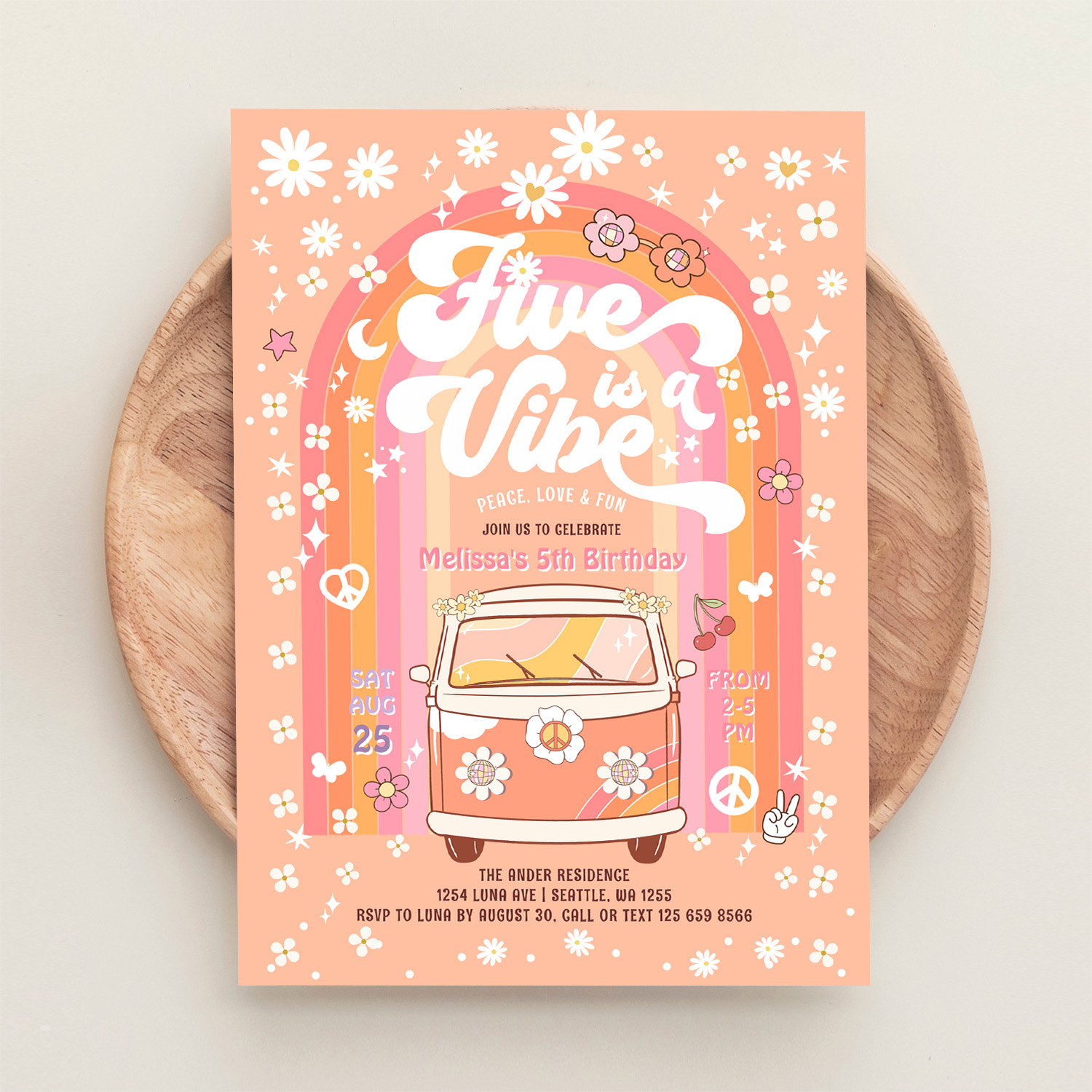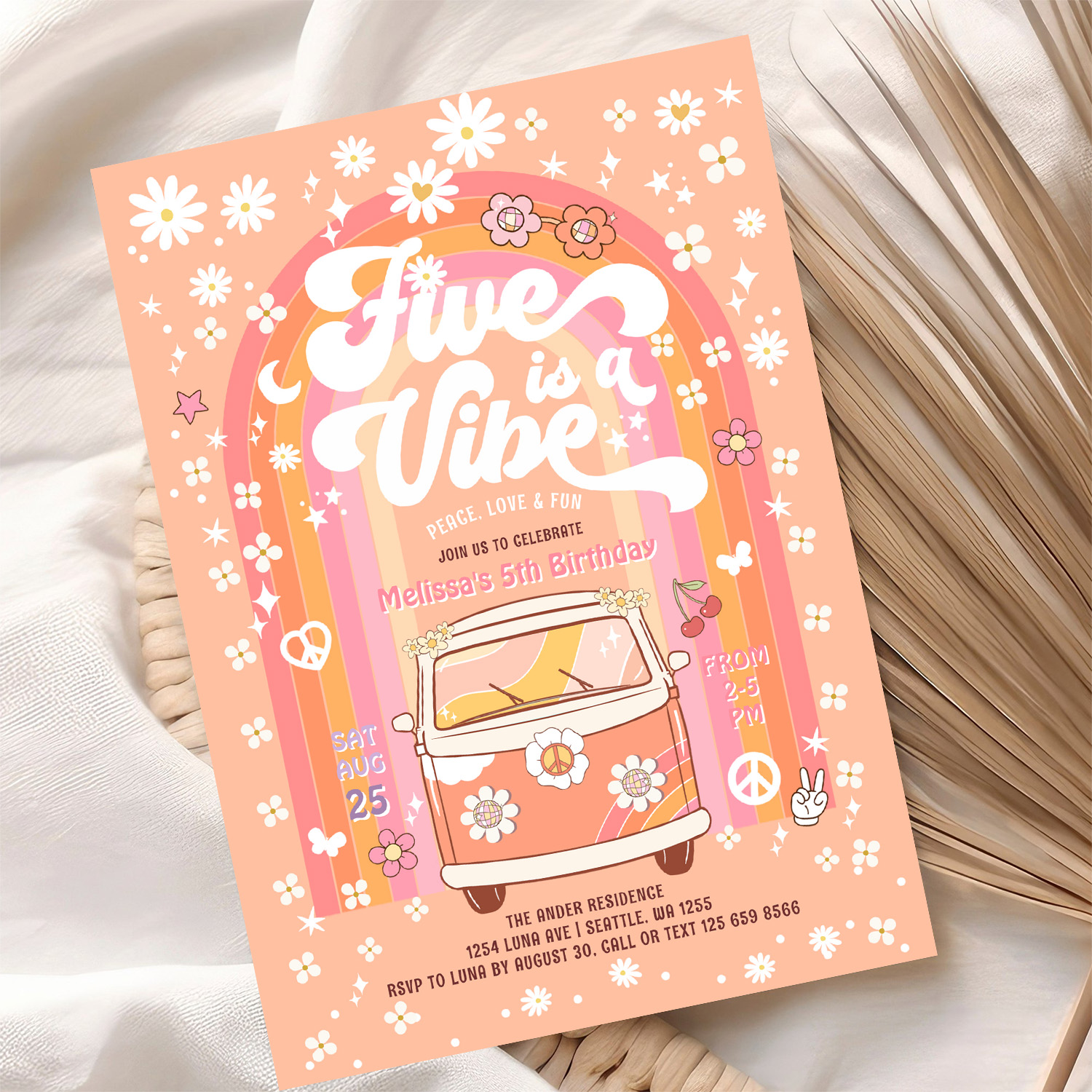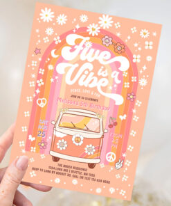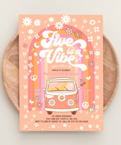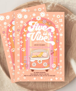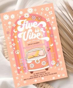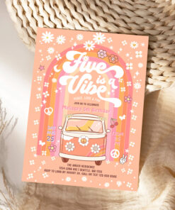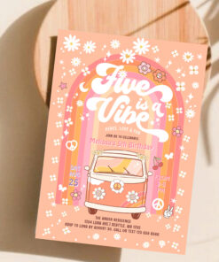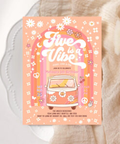 Groovy Five Is A Vibe Van Bus 5th Birthday Invitation - Related products