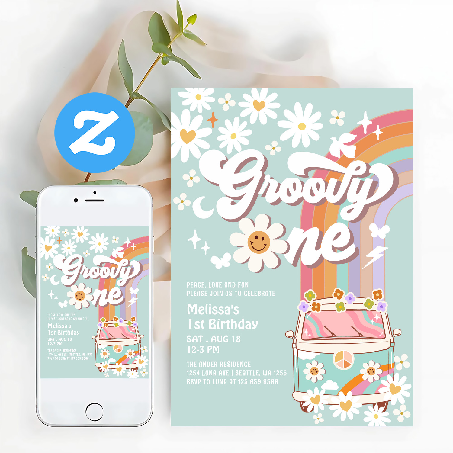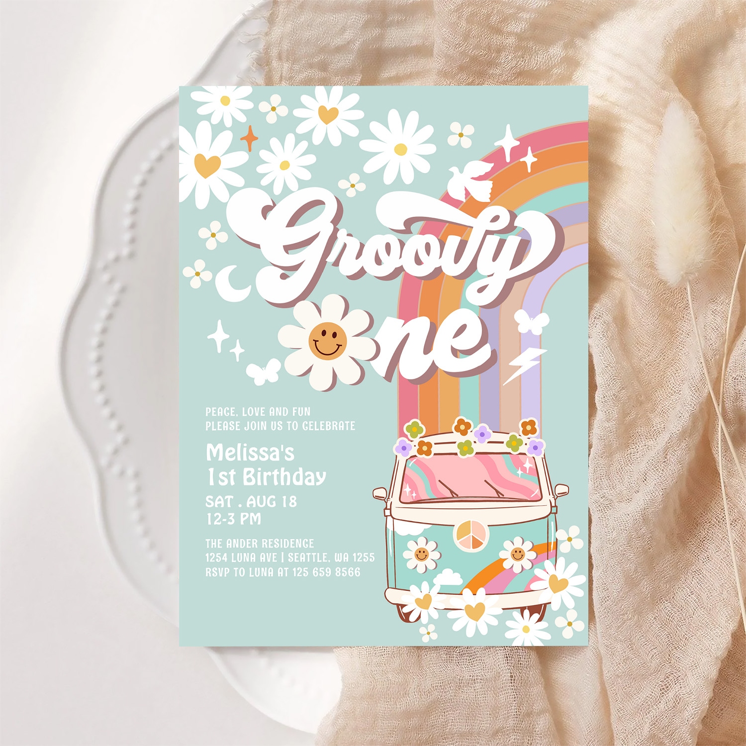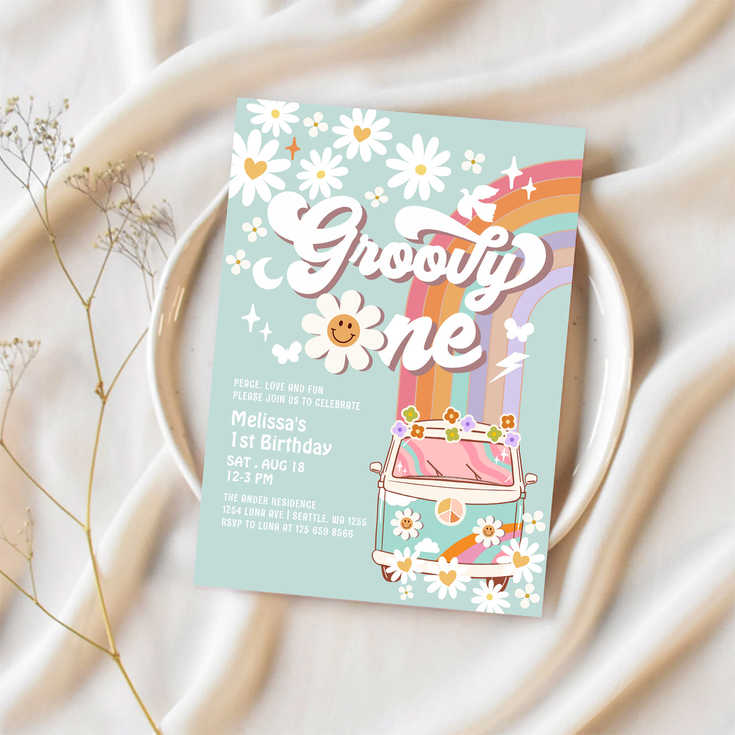 Groovy One 1st Birthday Invite Hippie 1st Birthday - Related products