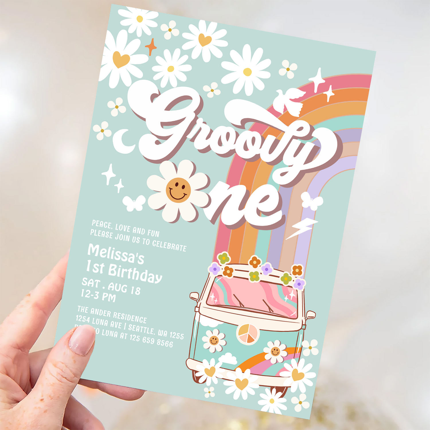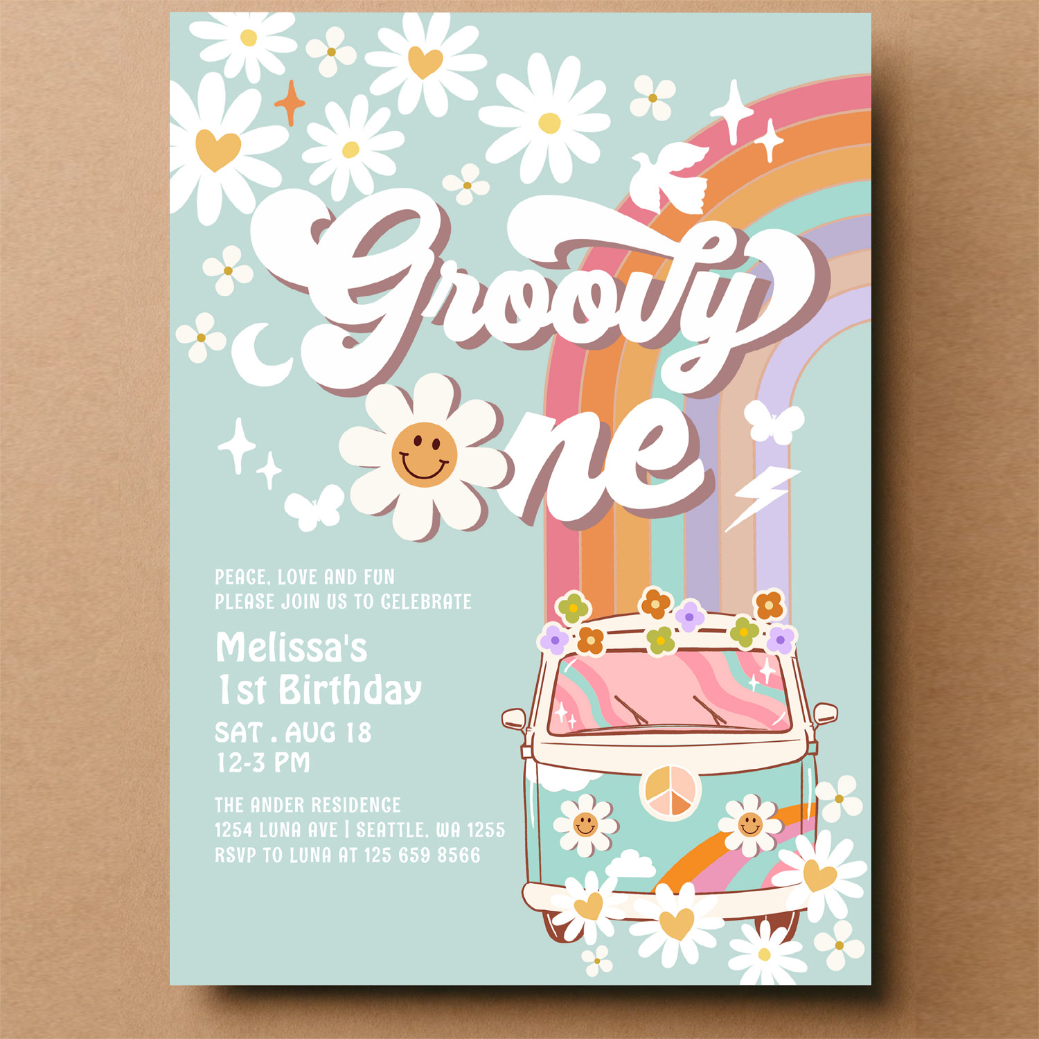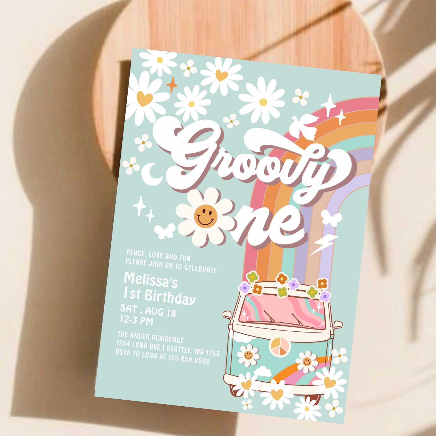 Groovy One 1st Birthday Invite Hippie 1st Birthday