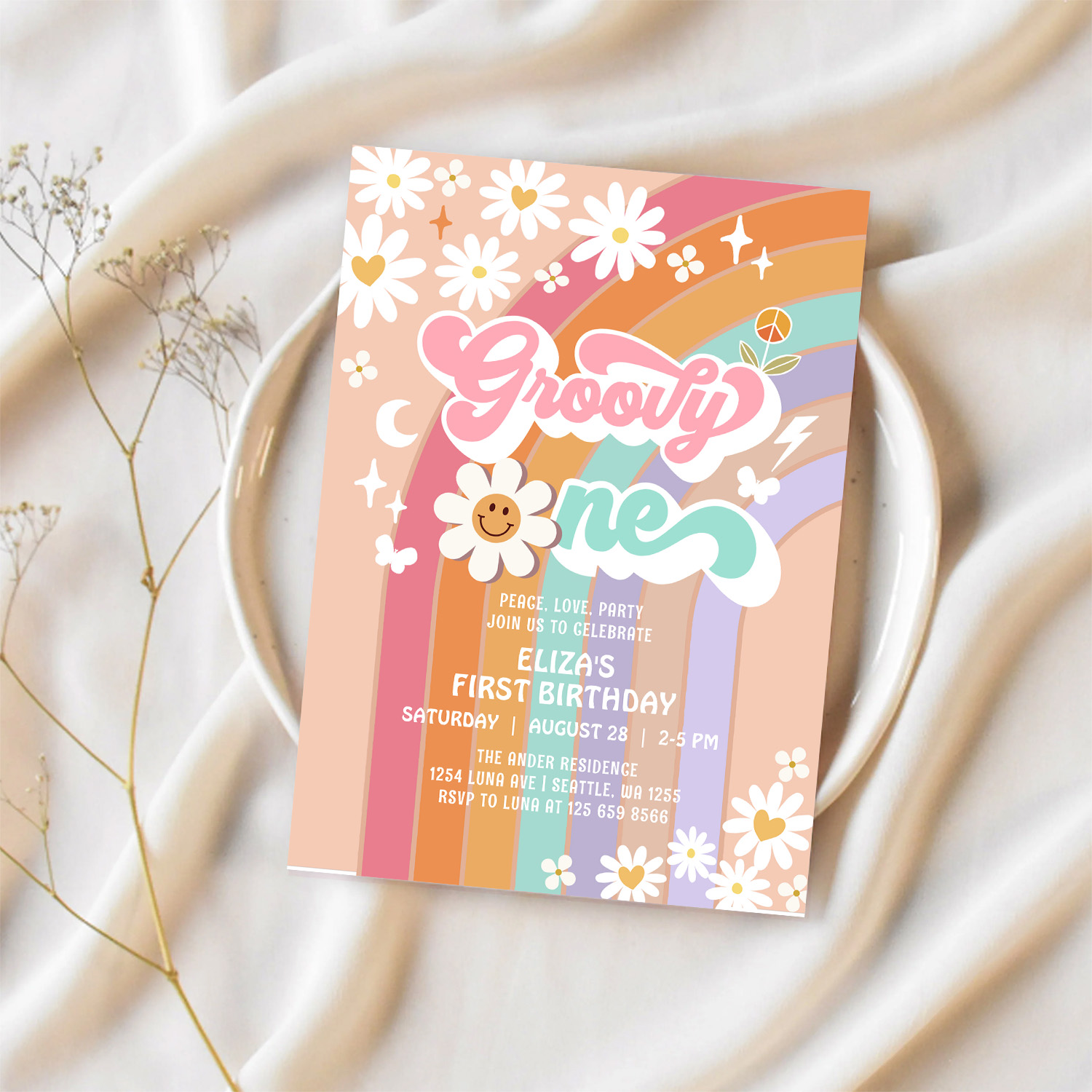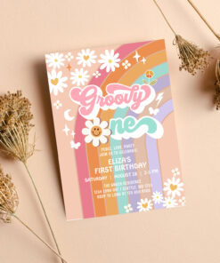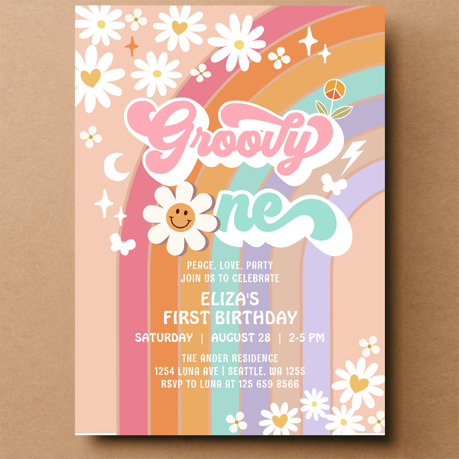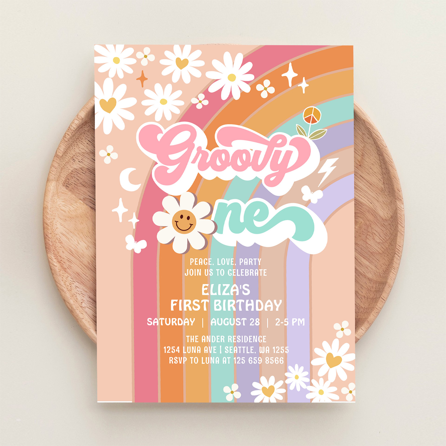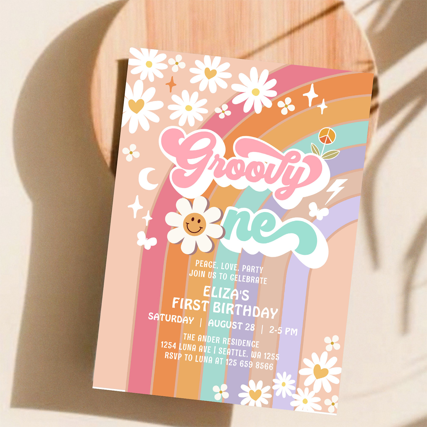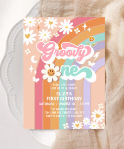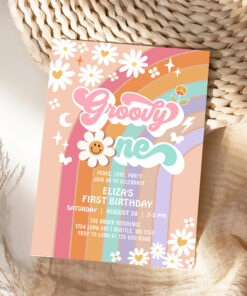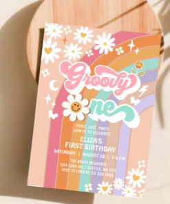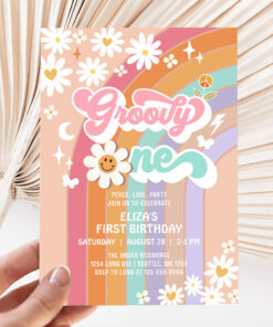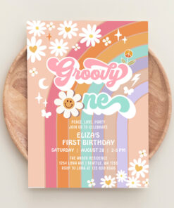 Groovy One Daisy Rainbow Hippie Retro Birthday Invitation - Related products