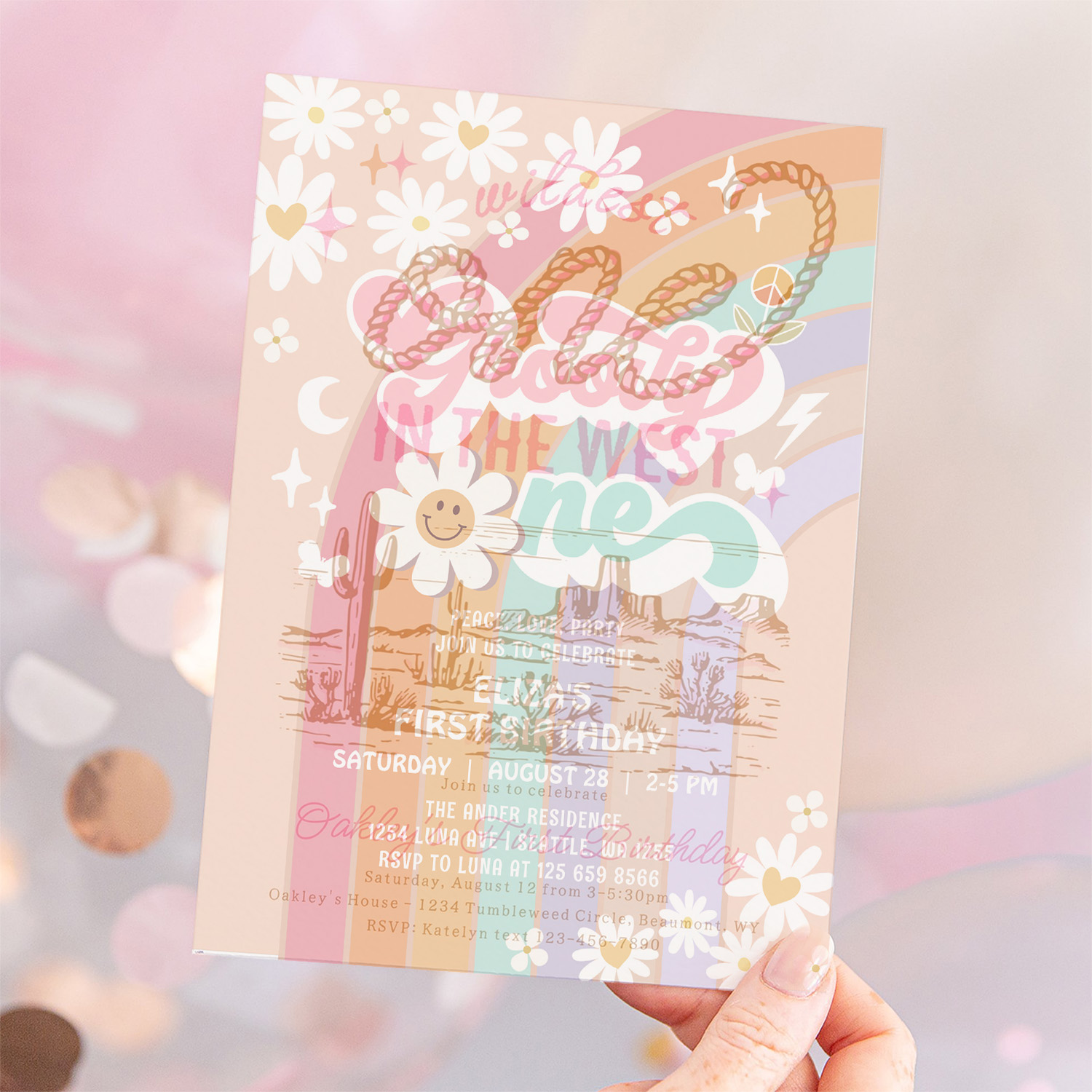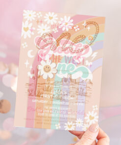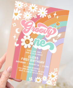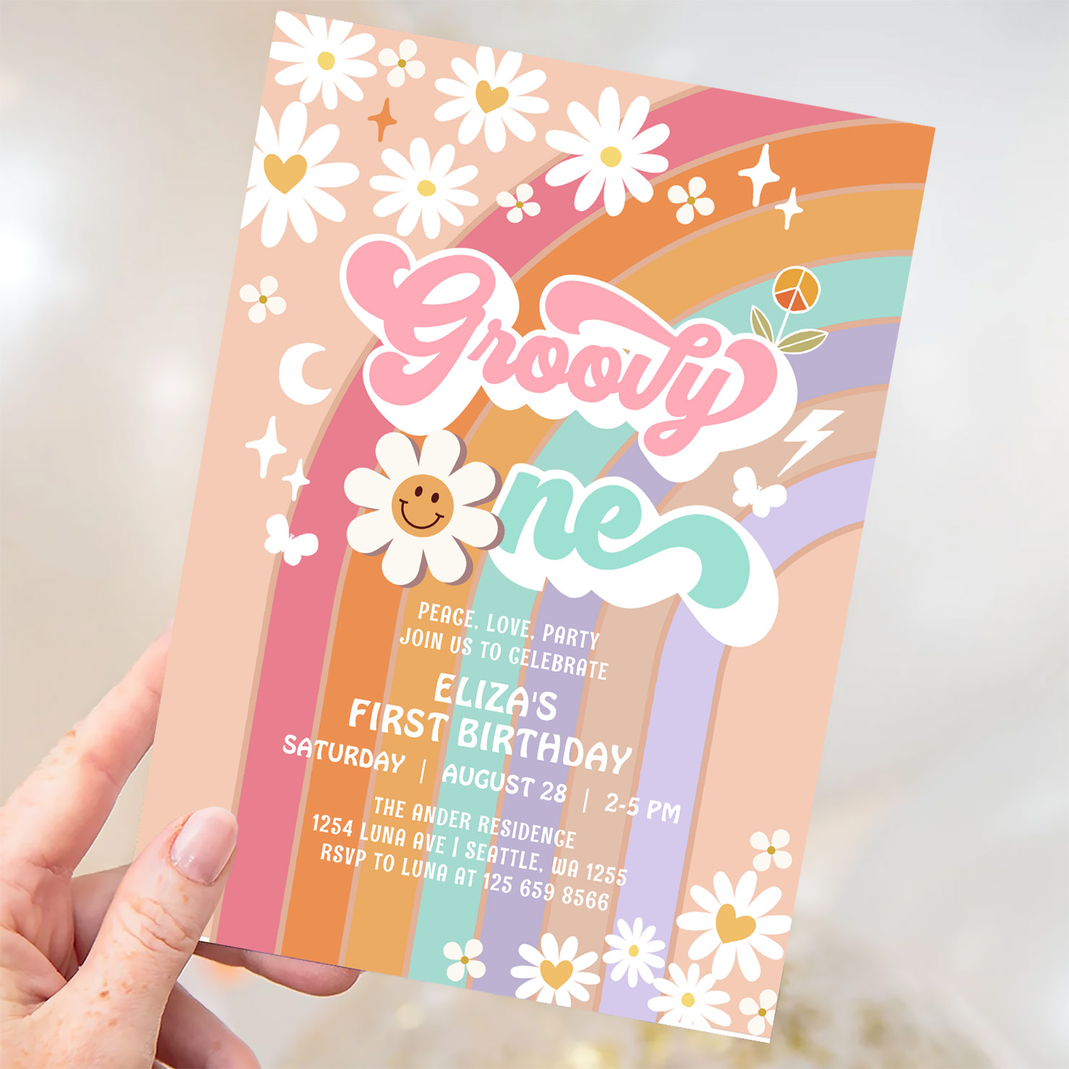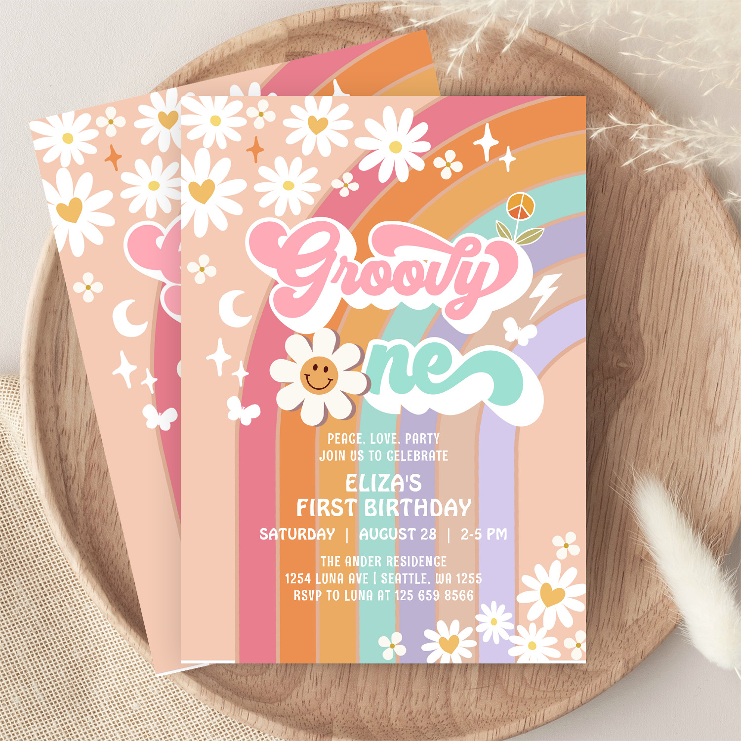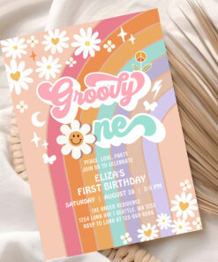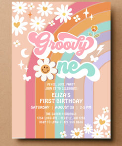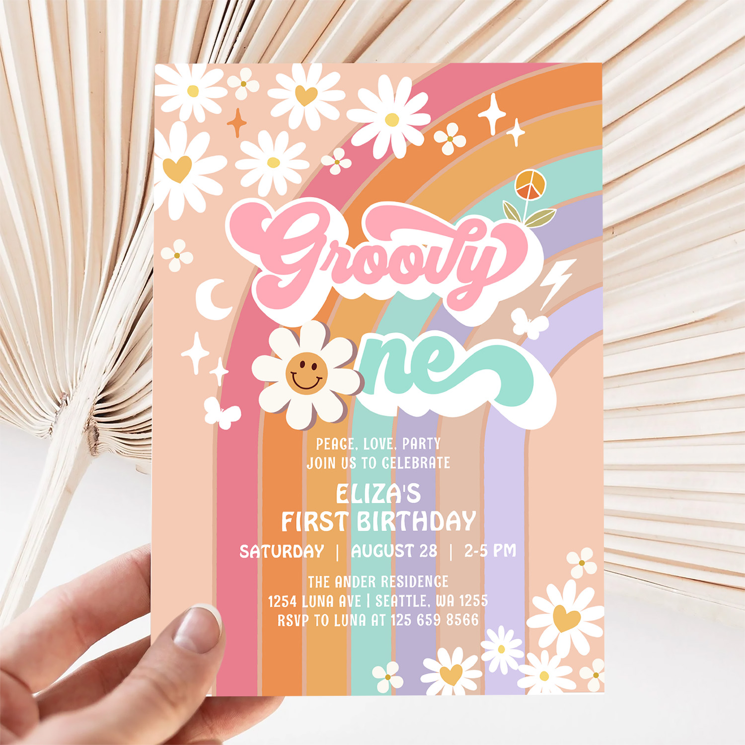 Groovy One Daisy Rainbow Hippie Retro Birthday Invitation - Related products