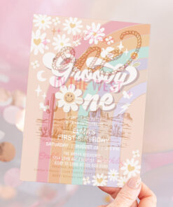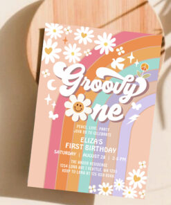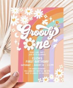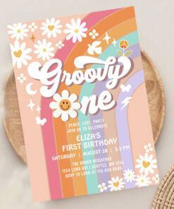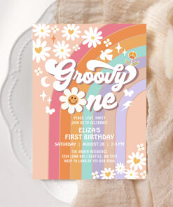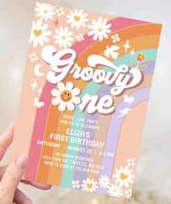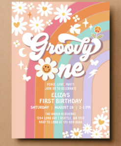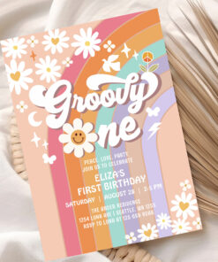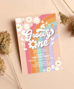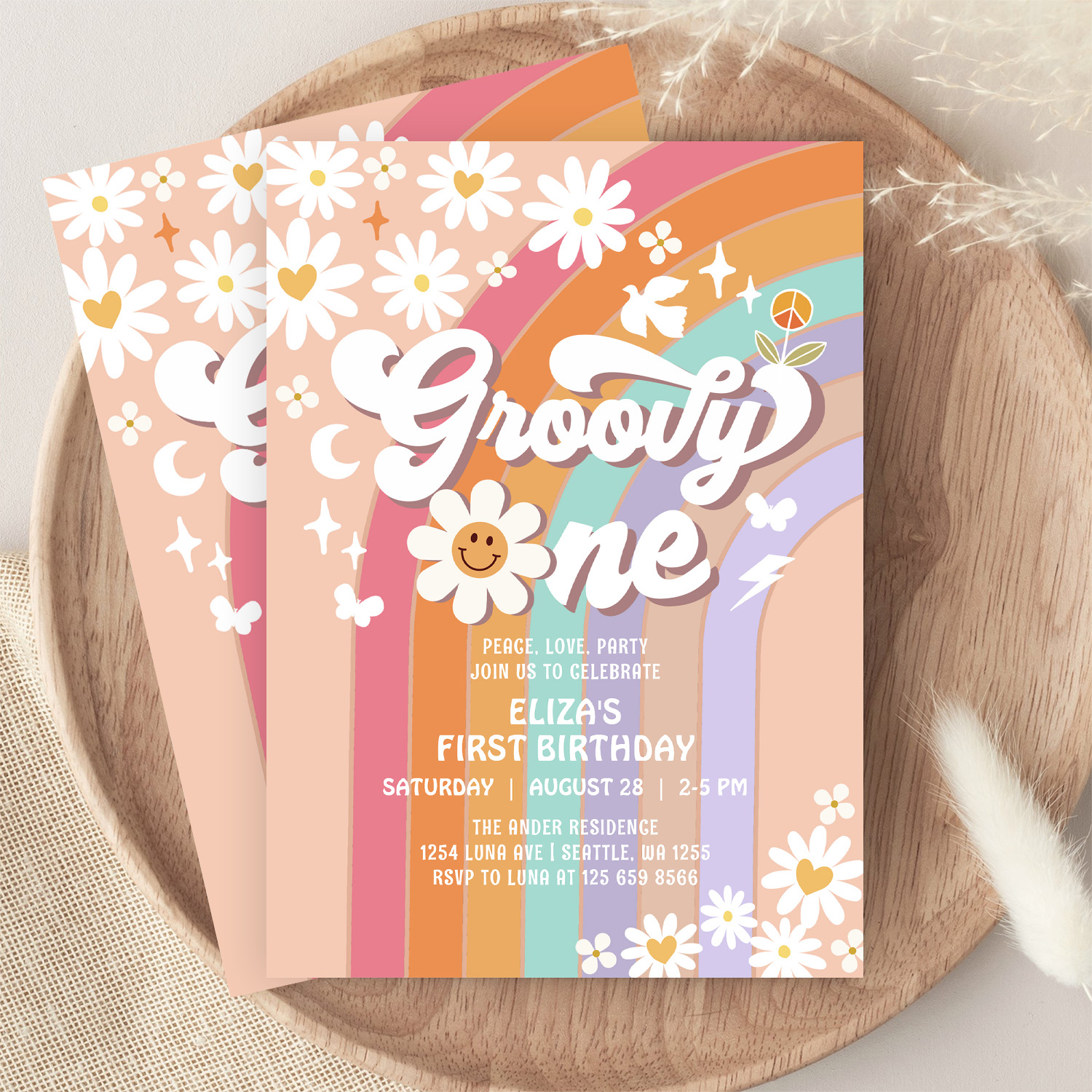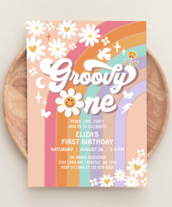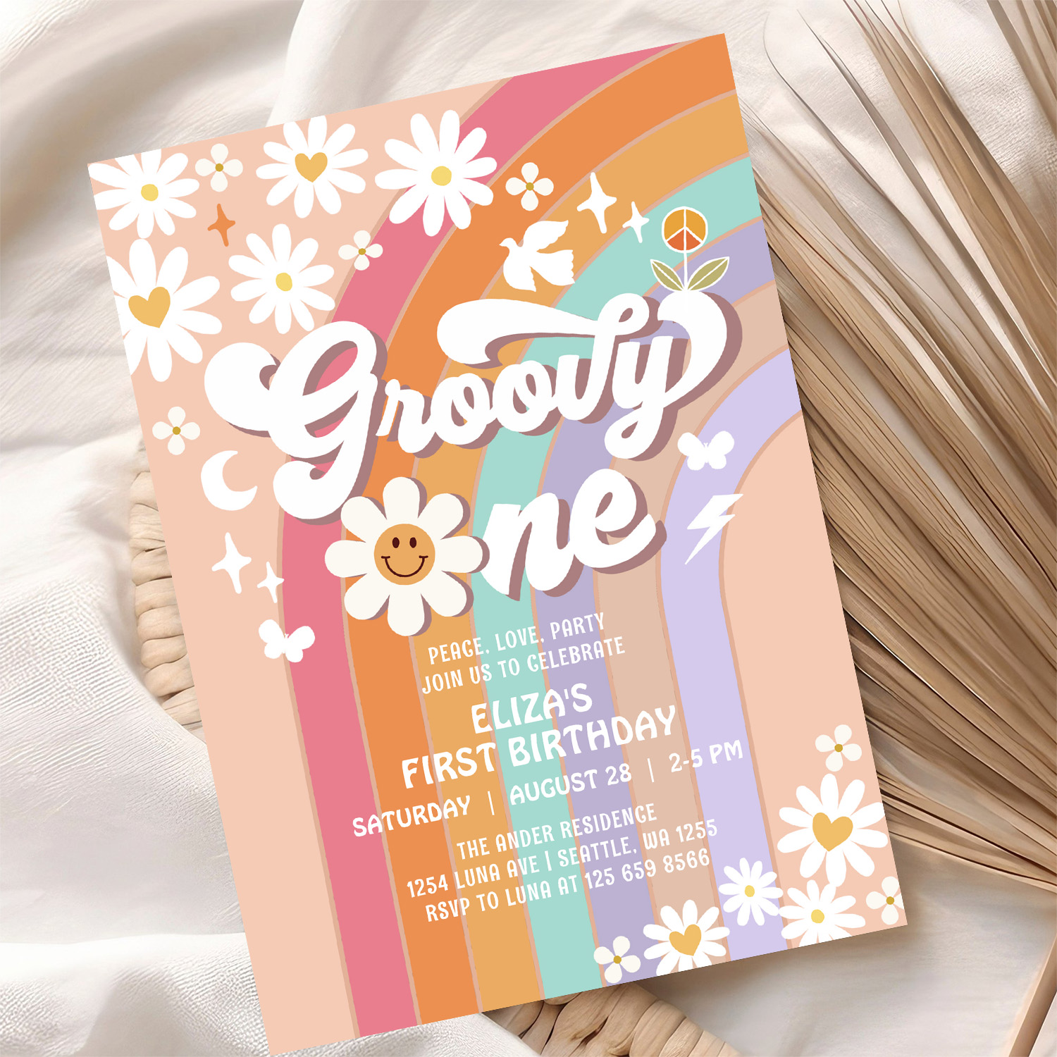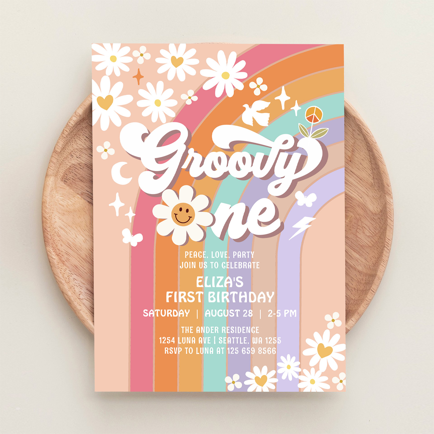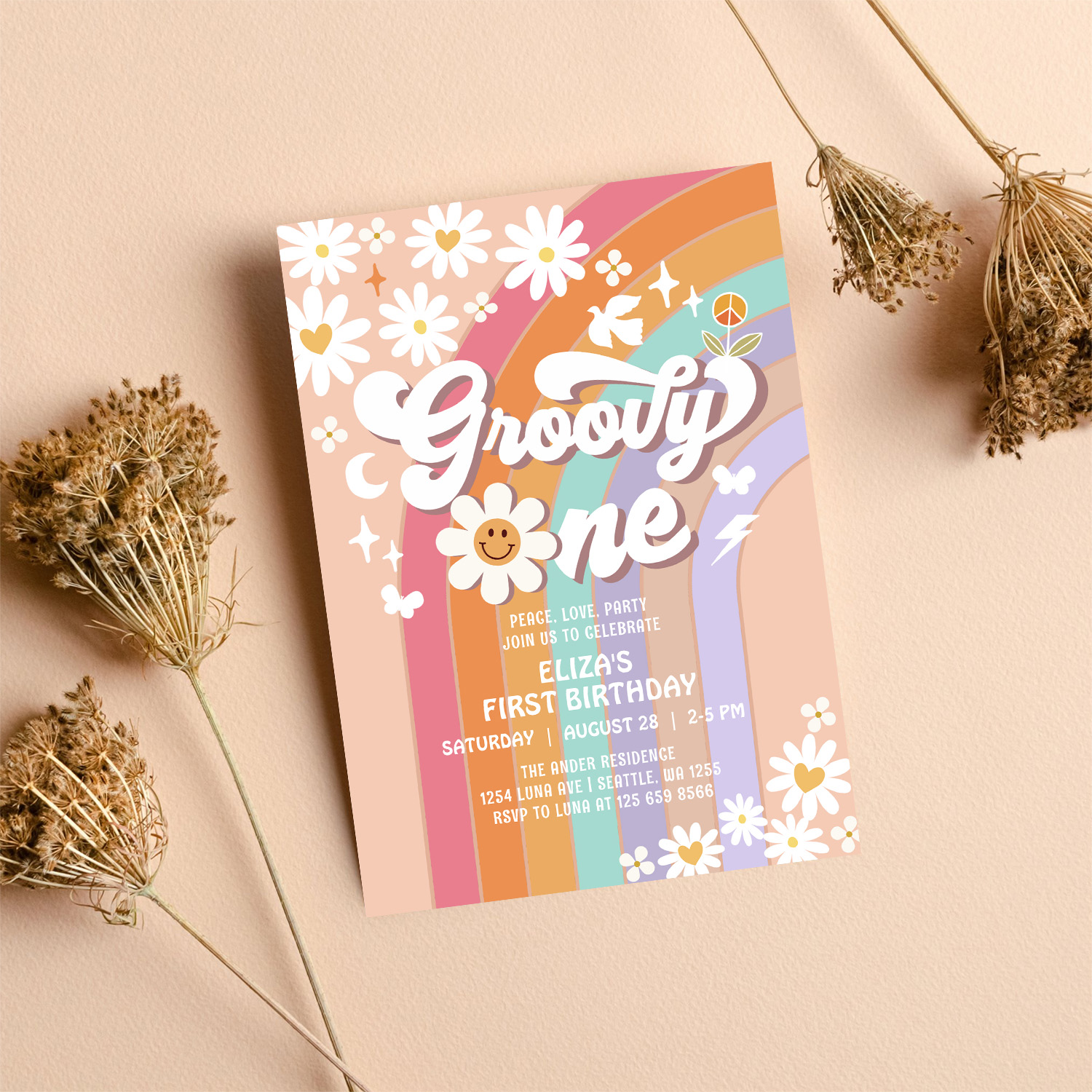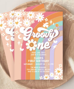 Groovy One Hippie 70S Rainbow Retro 1st Birthday Invitation - Related products
