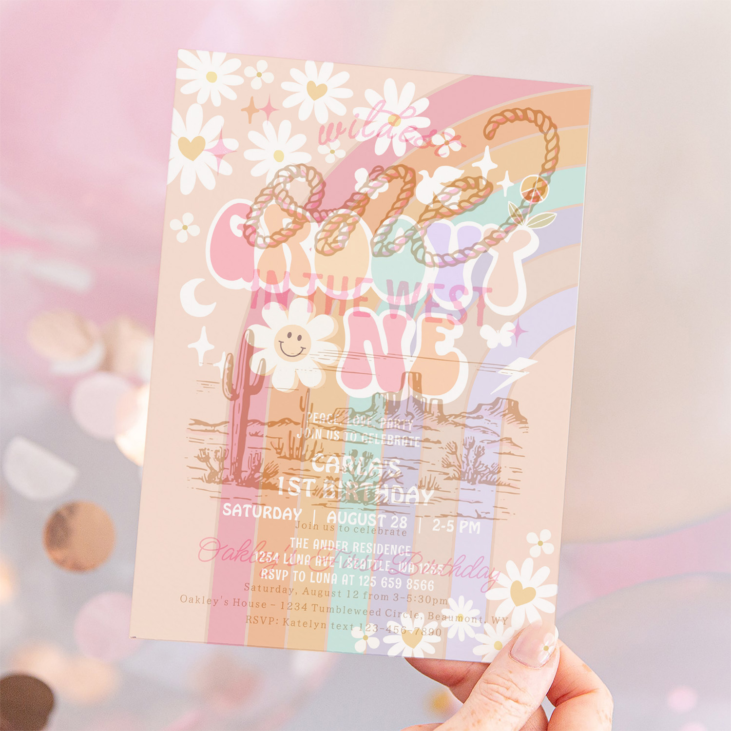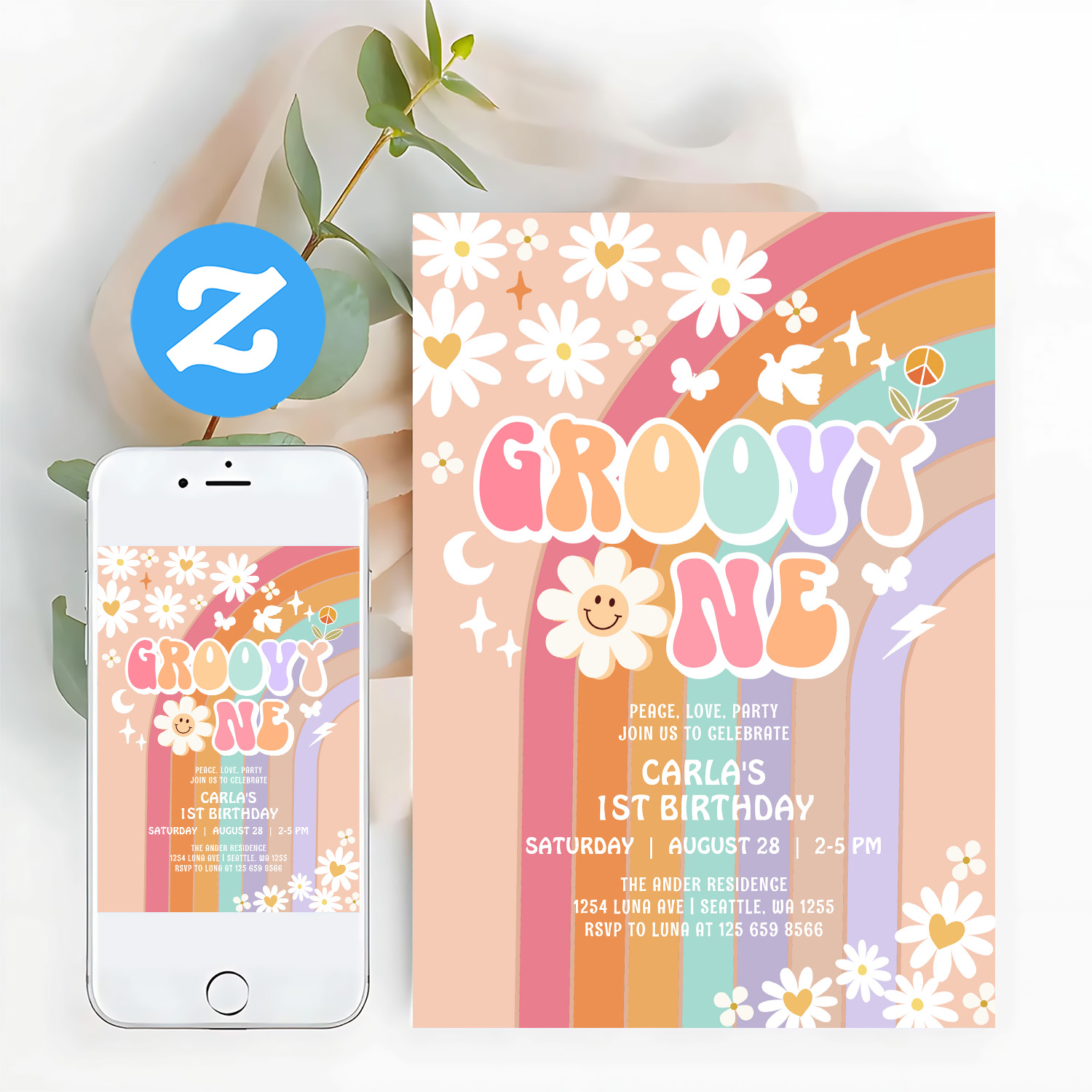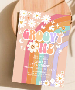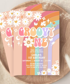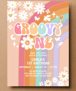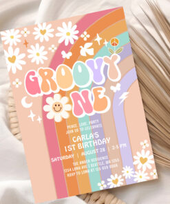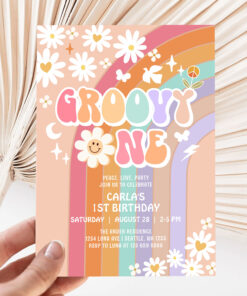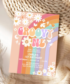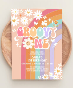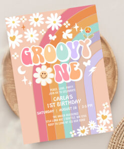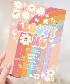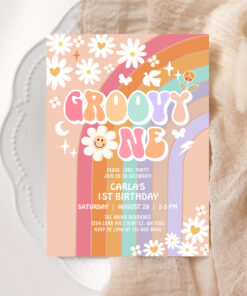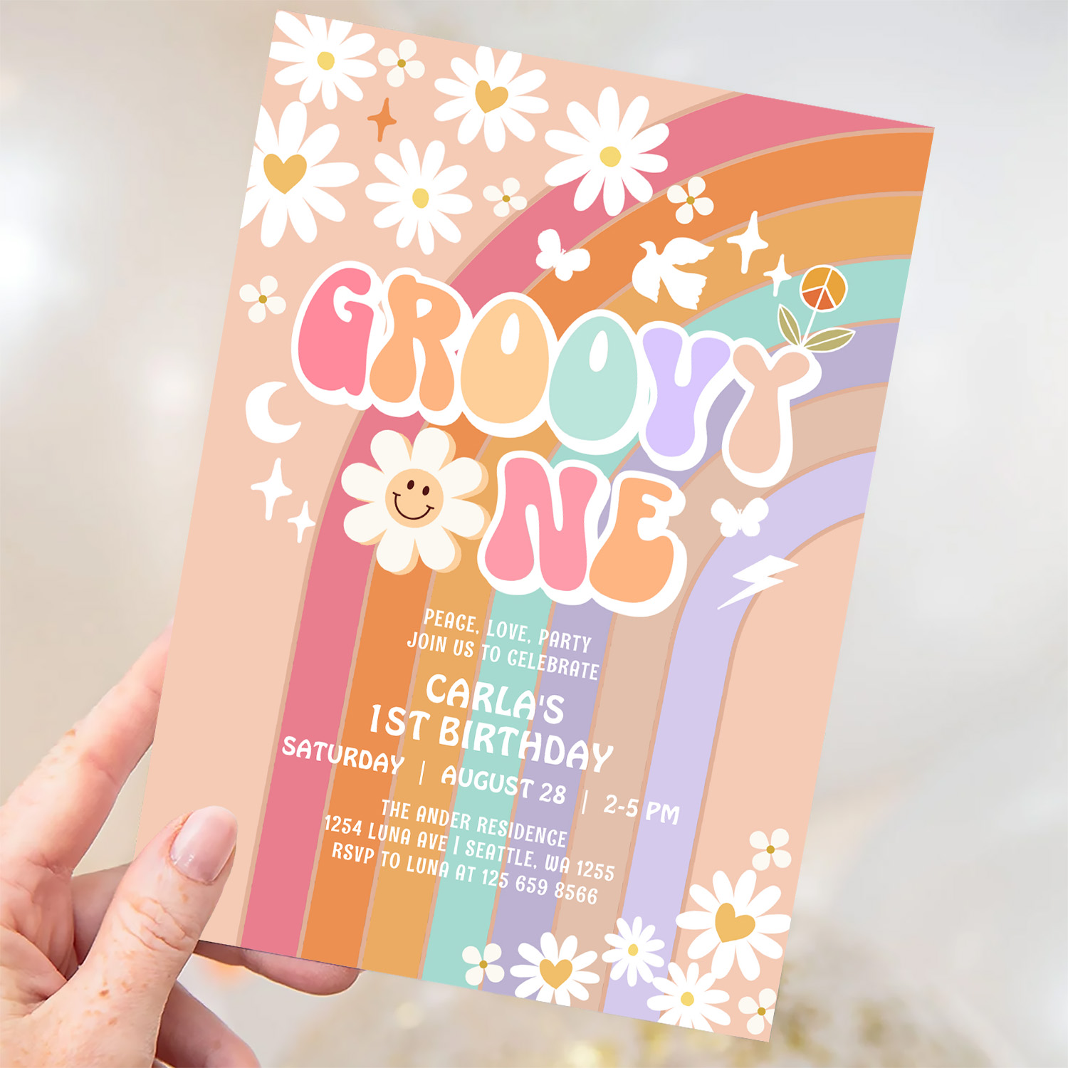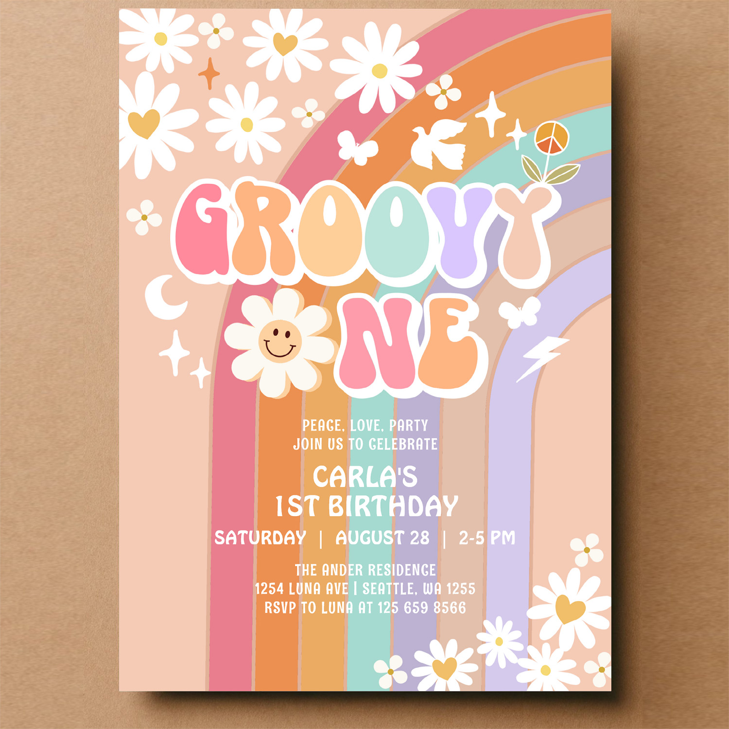 Groovy One Hippie 70S Retro 1st Birthday Invitation