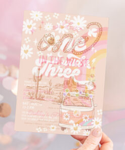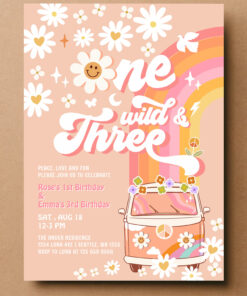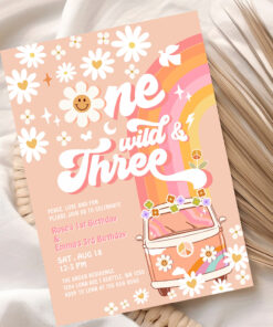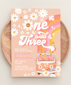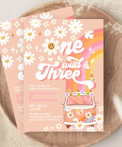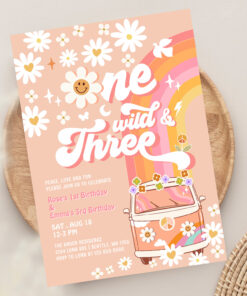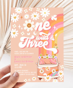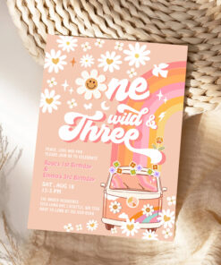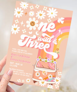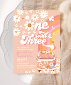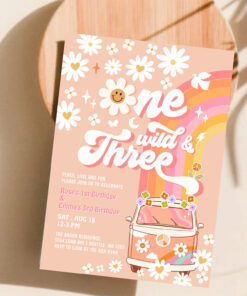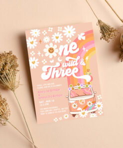 Groovy One Wild And Three Daisy Rainbow Birthday Invitation - Related products