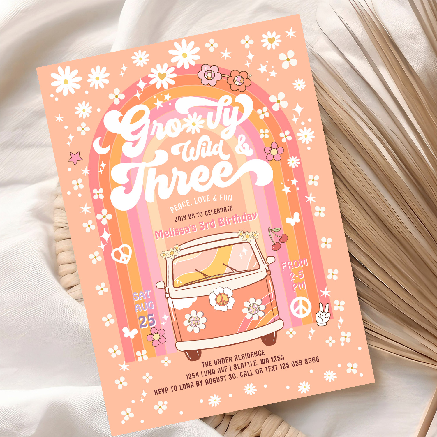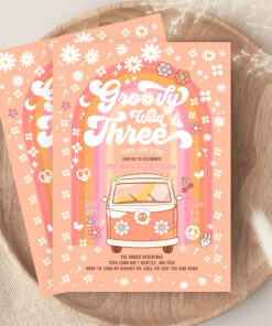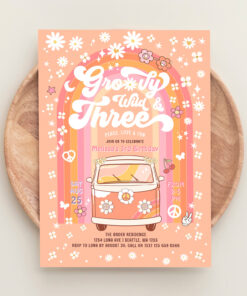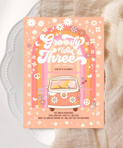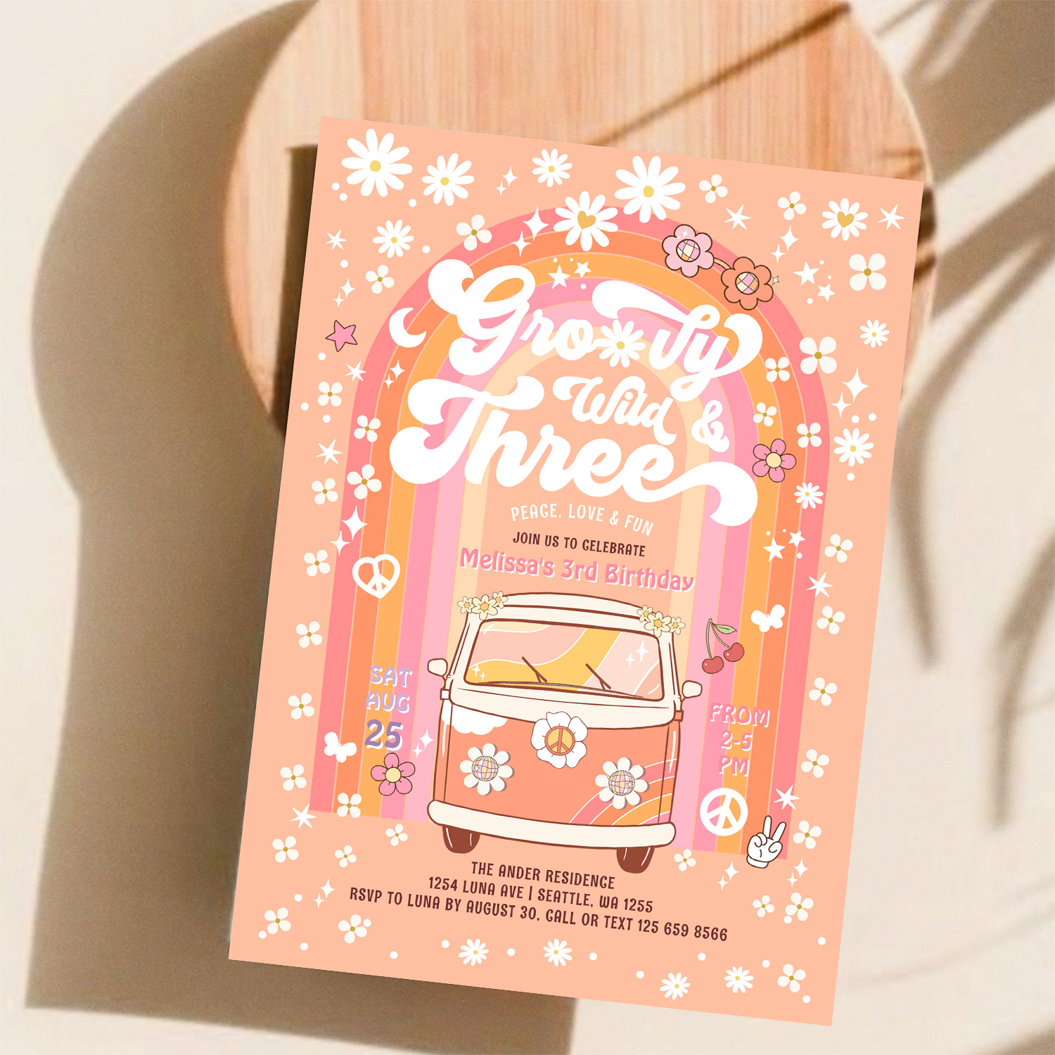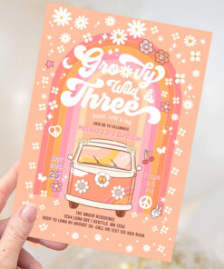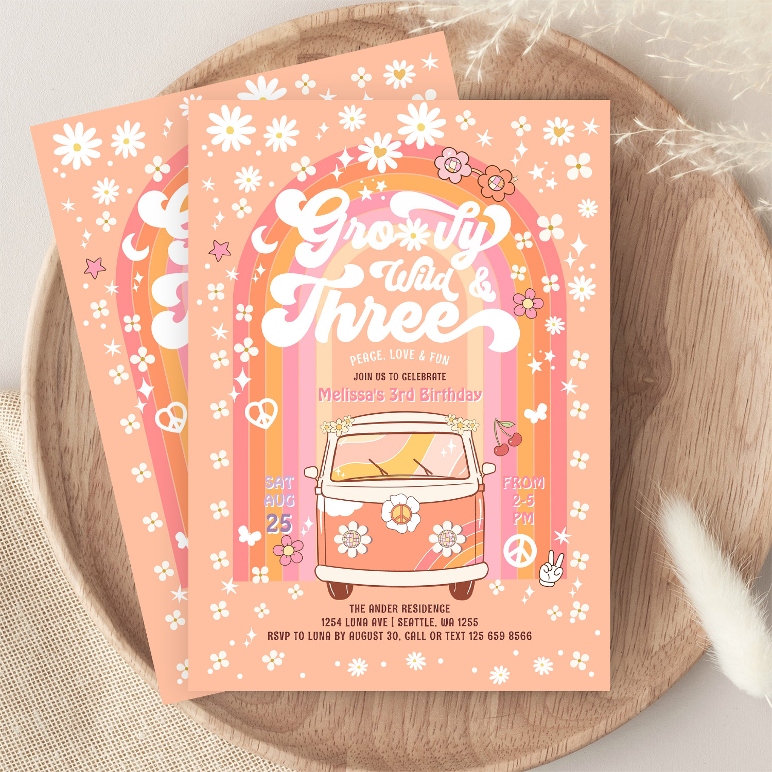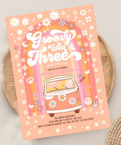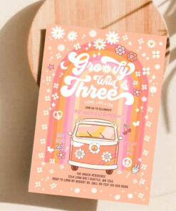 Groovy Wild And Three Van Bus 3rd Birthday Invitation - Related products