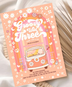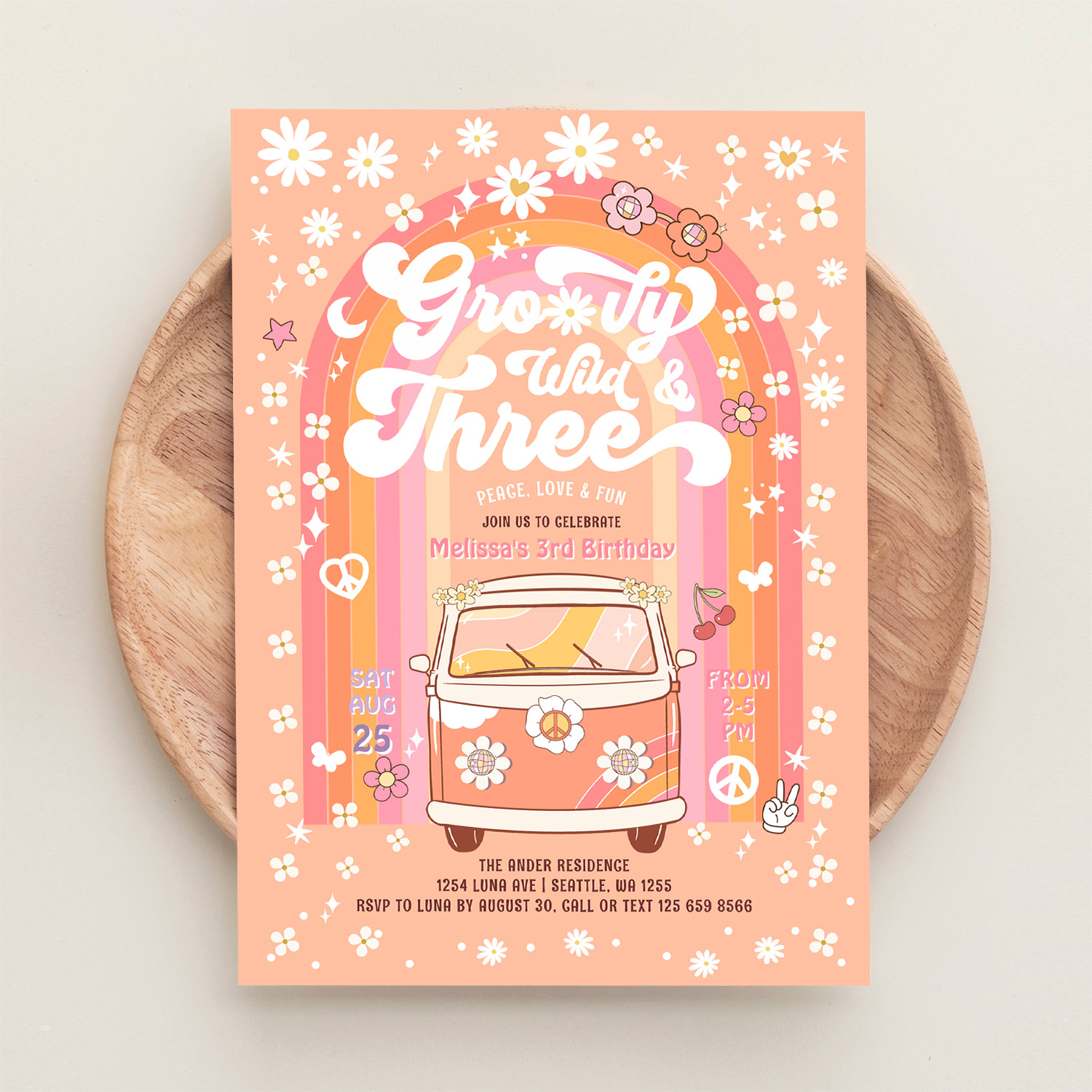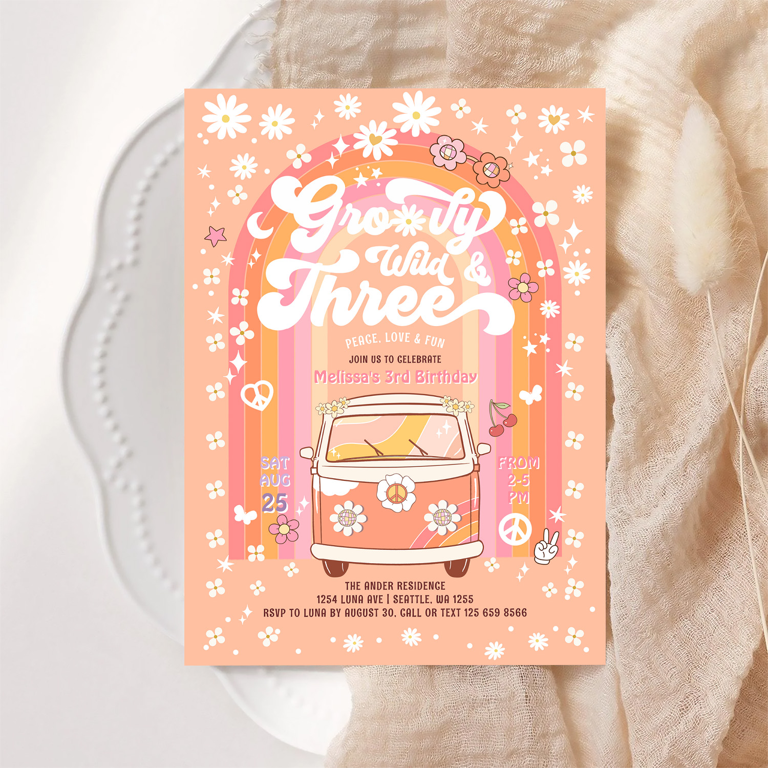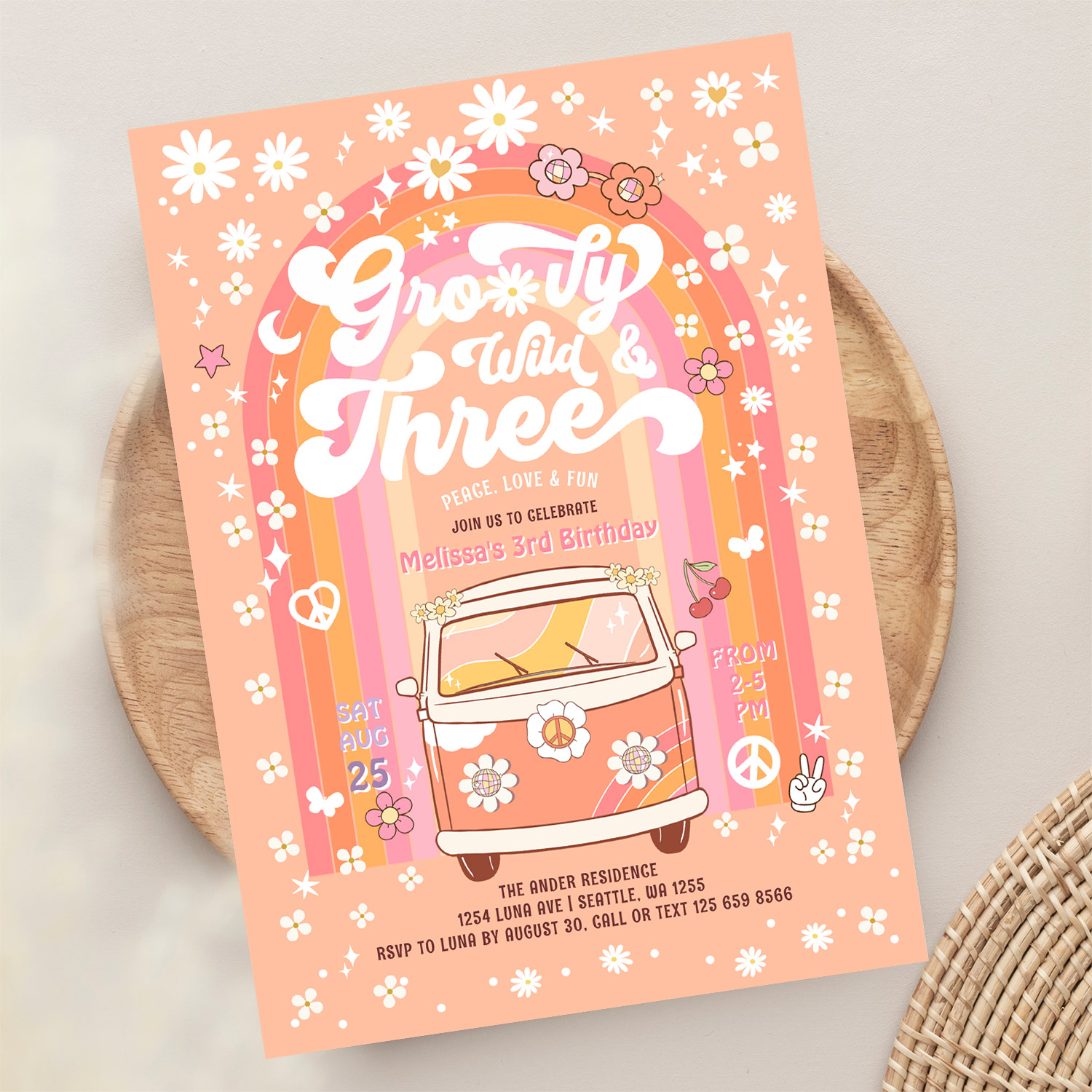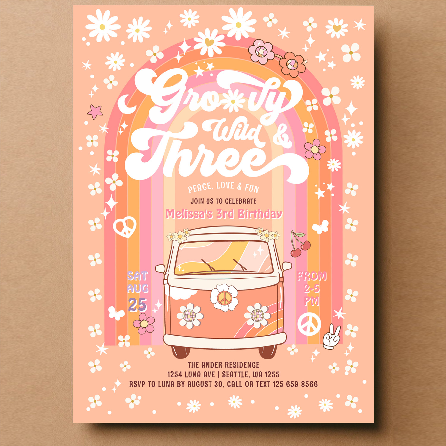 Groovy Wild And Three Van Bus 3rd Birthday Invitation - Related products