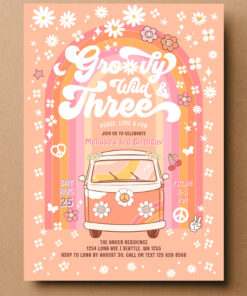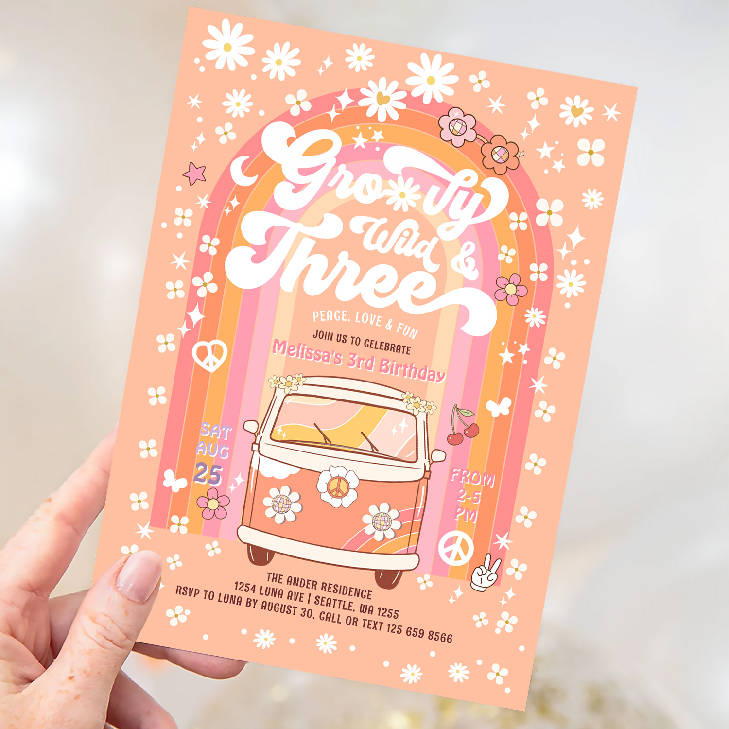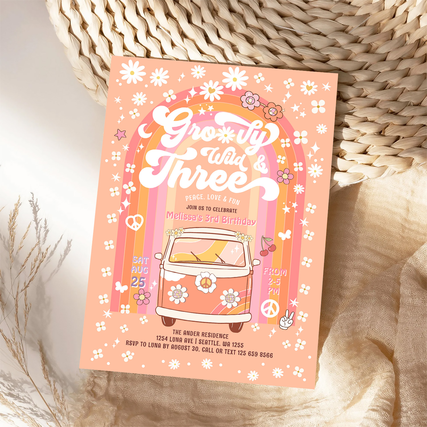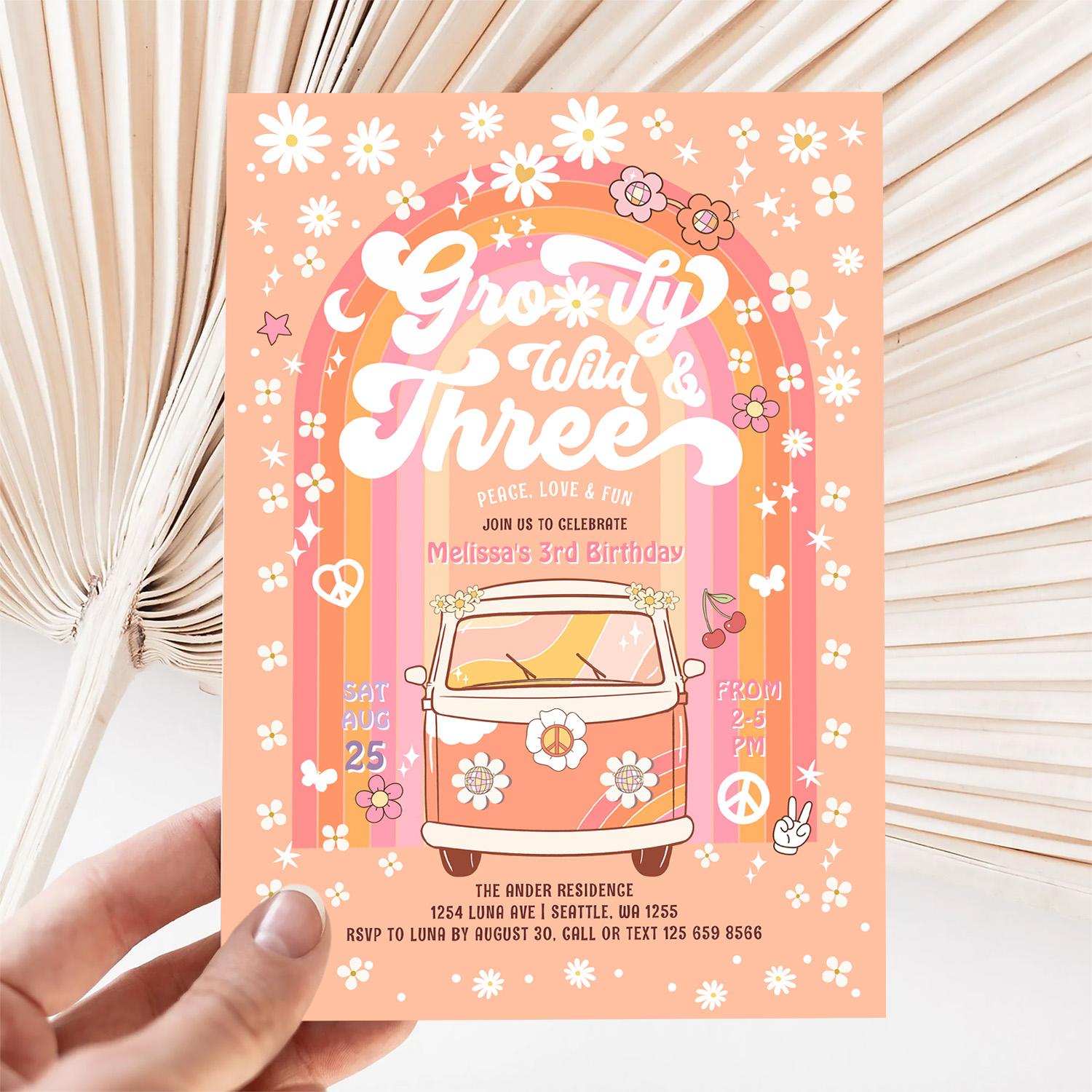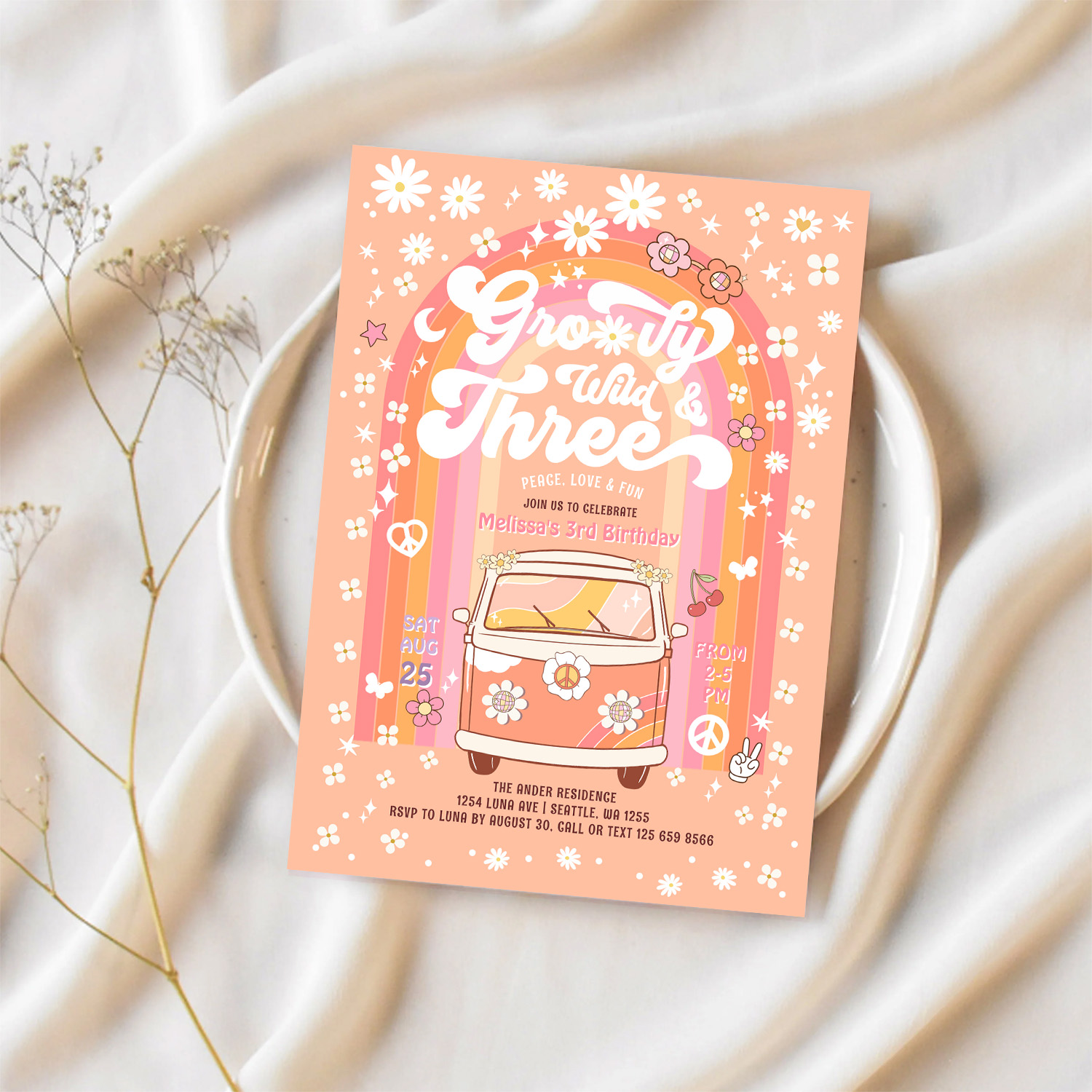 Groovy Wild And Three Van Bus 3rd Birthday Invitation - Related products