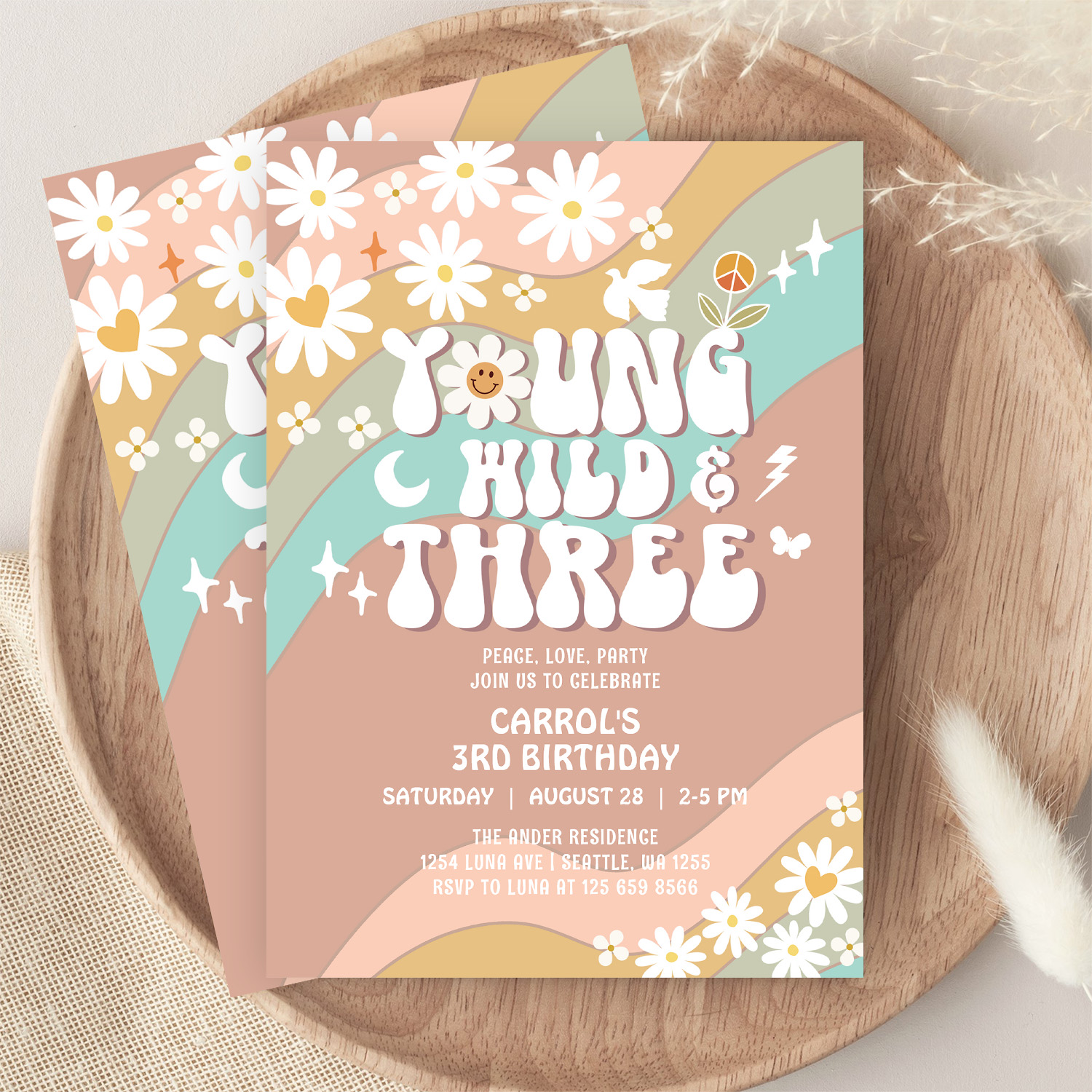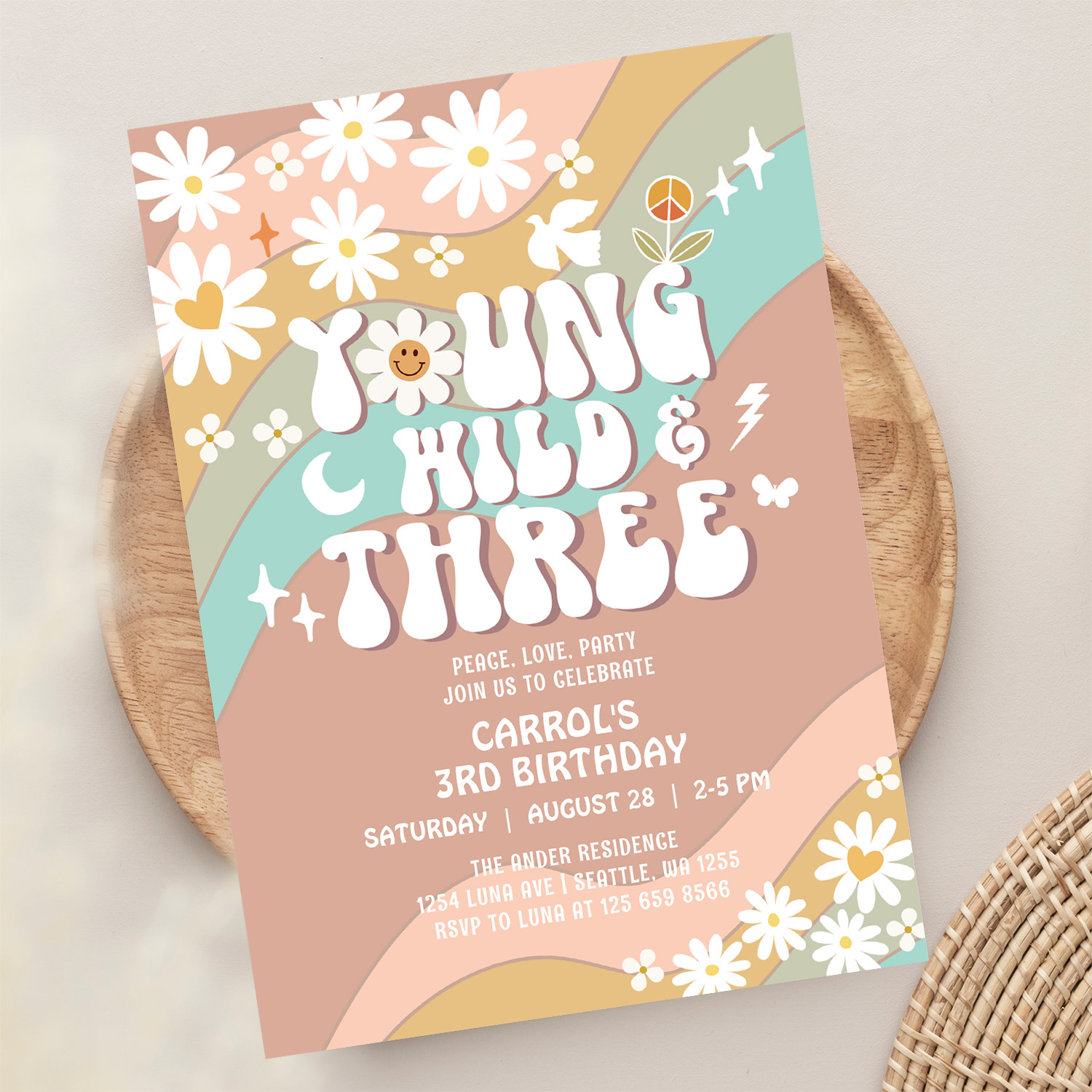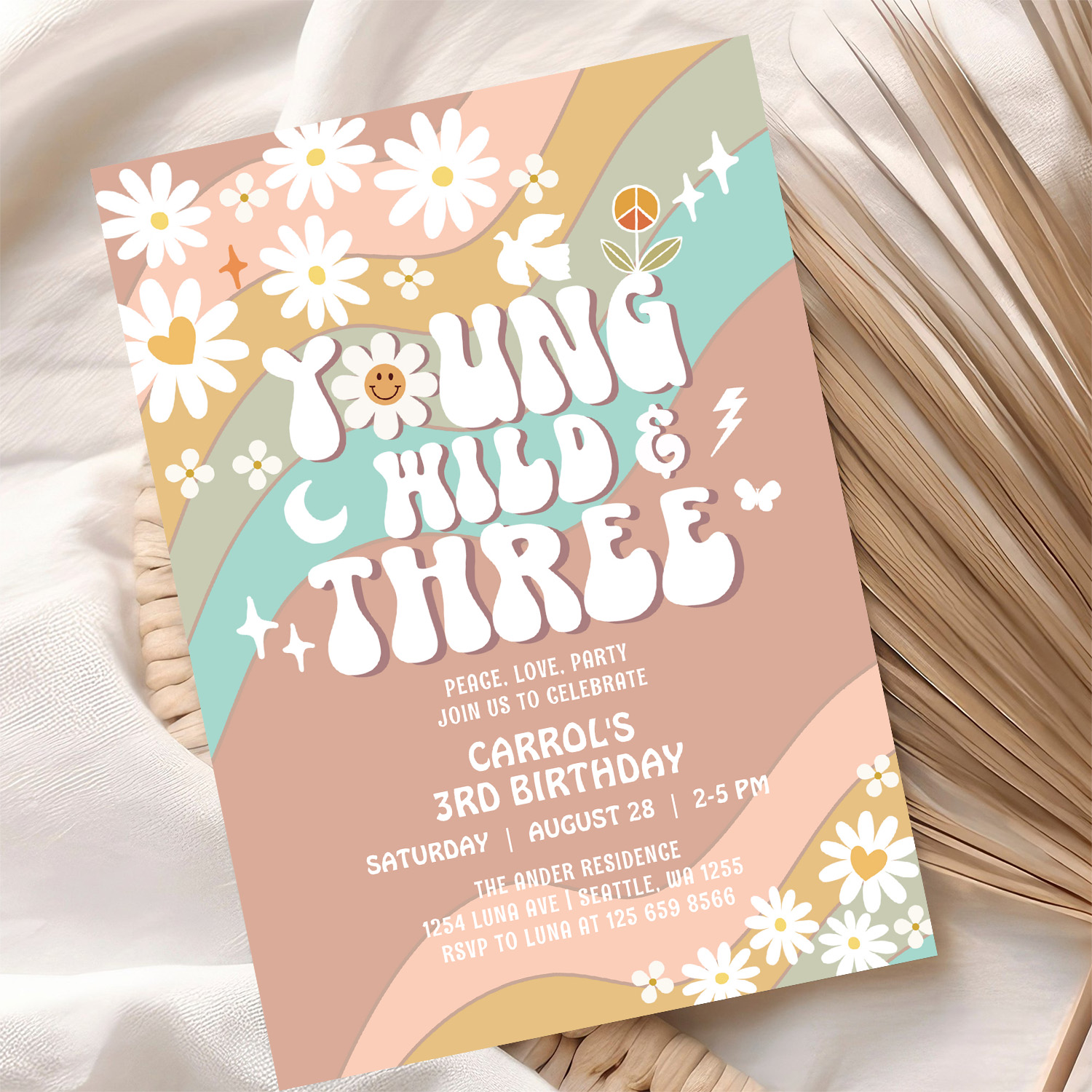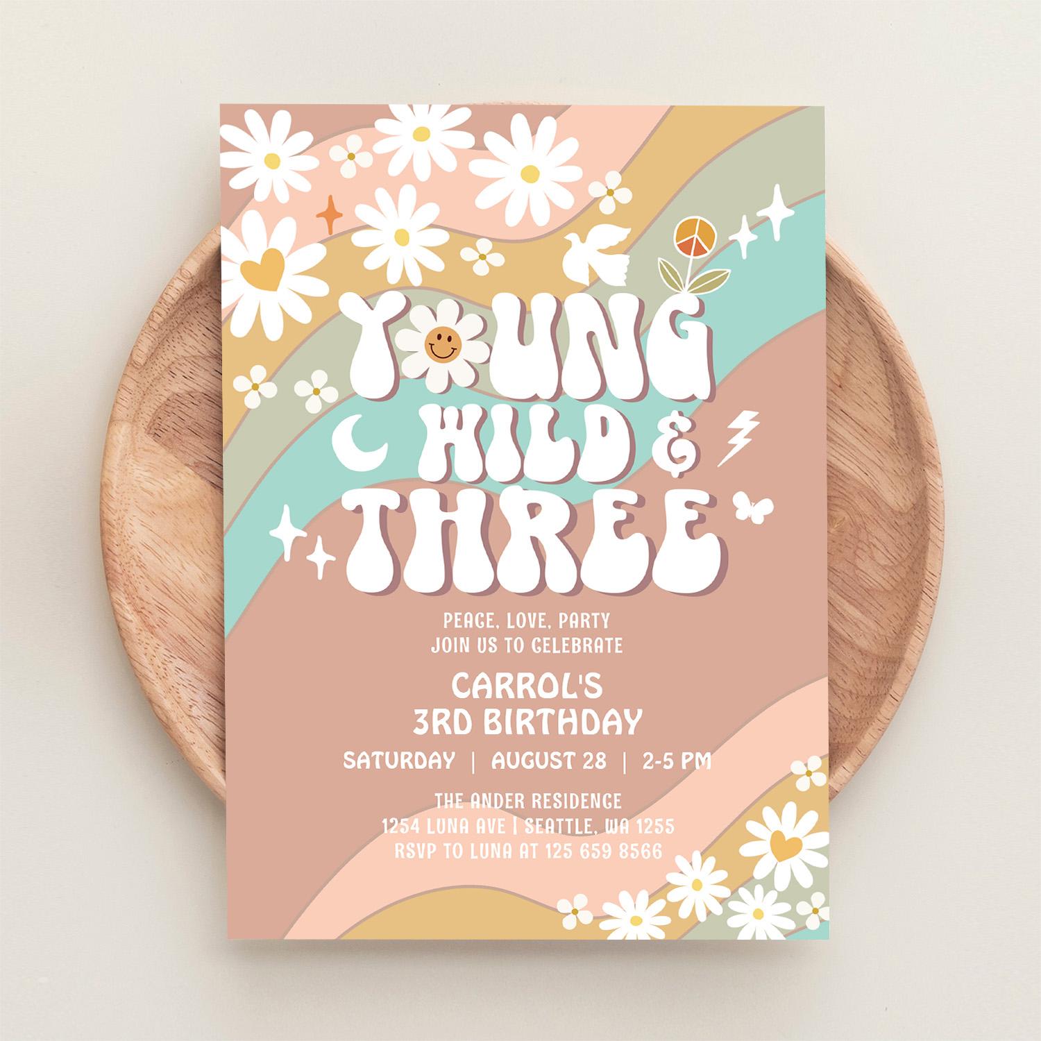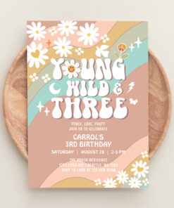 Groovy Young Wild And Three 3rd Birthday Invitation