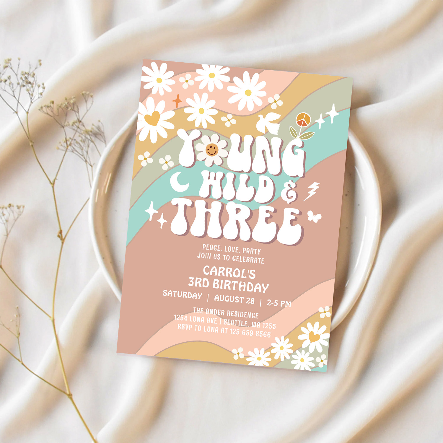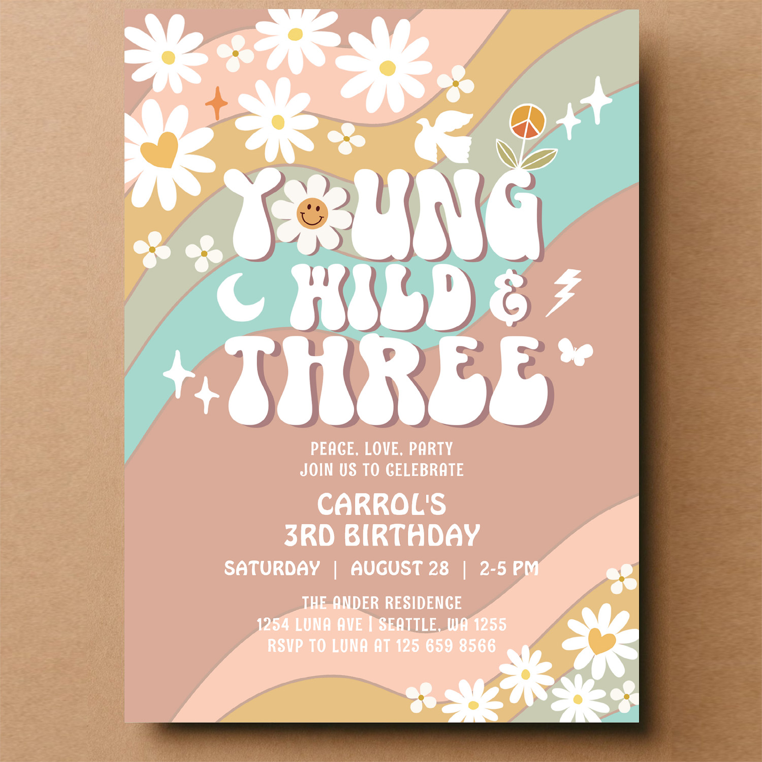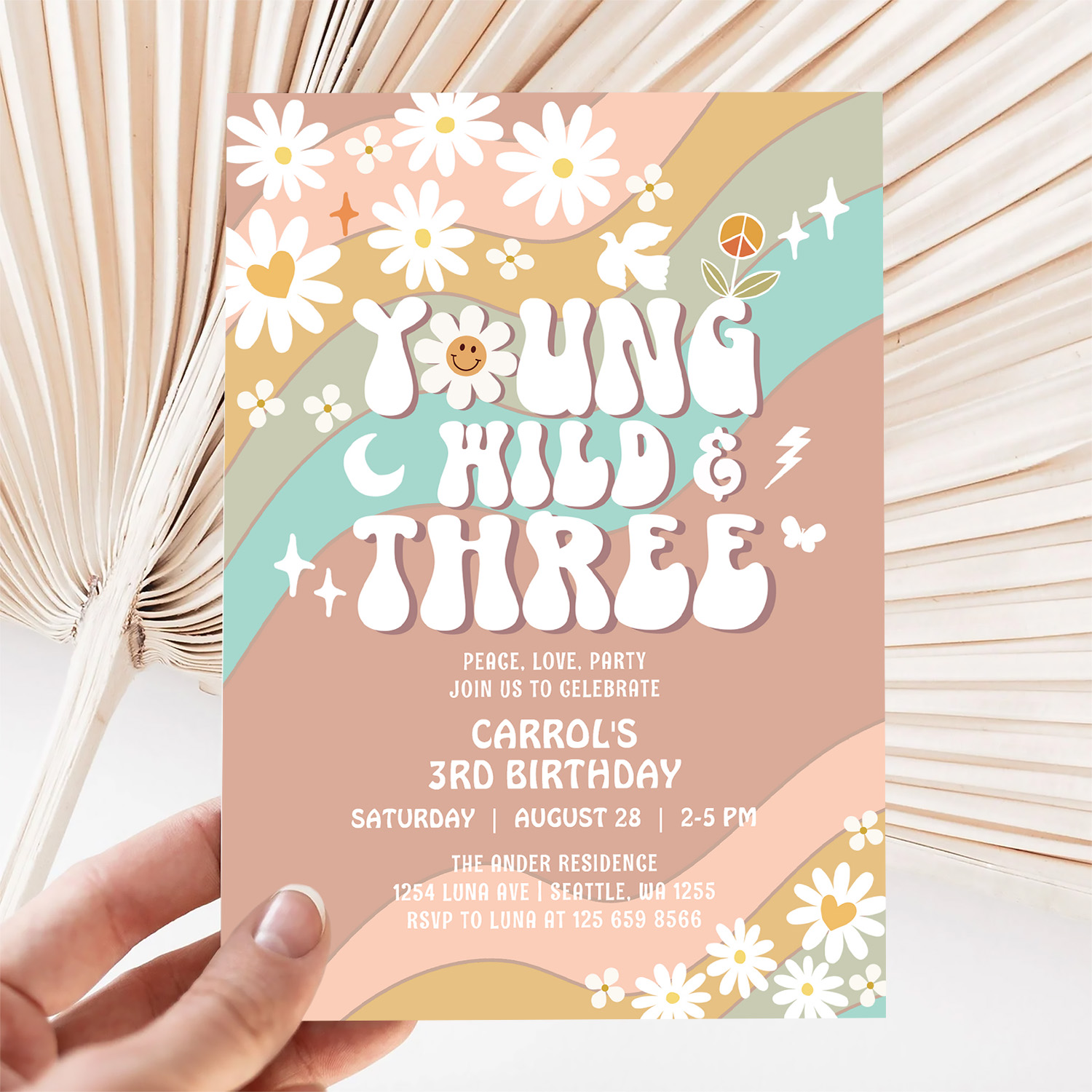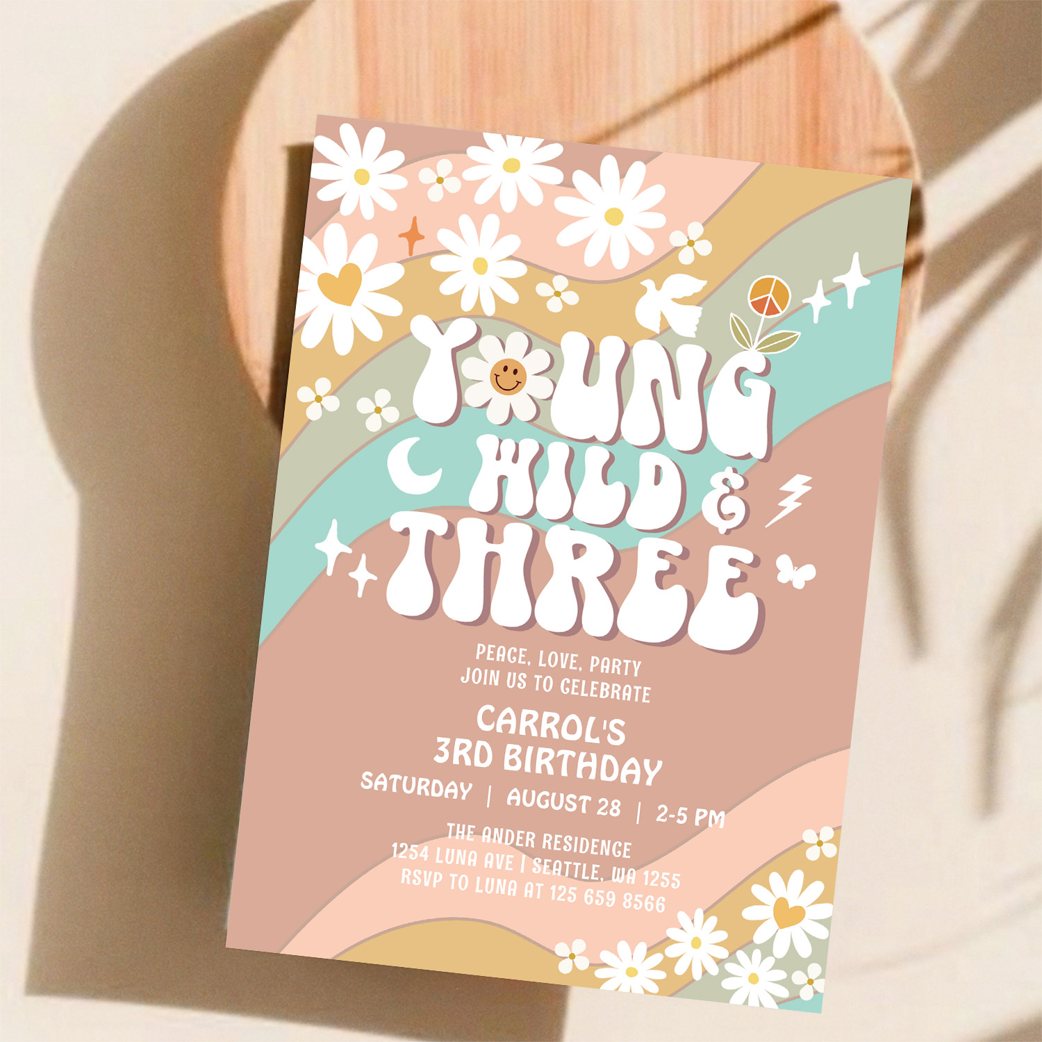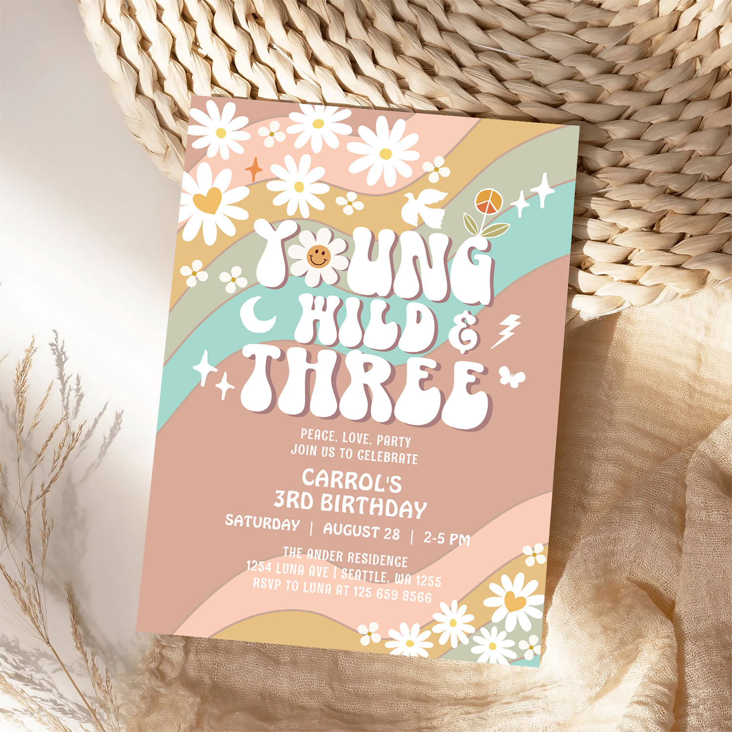 Groovy Young Wild And Three 3rd Birthday Invitation