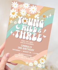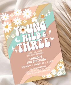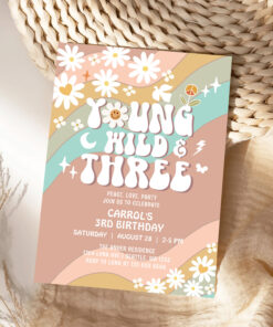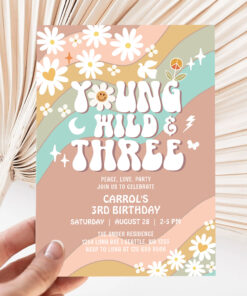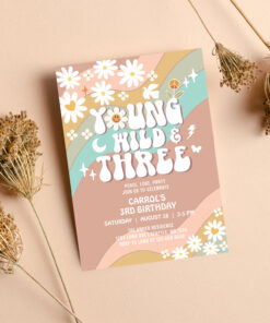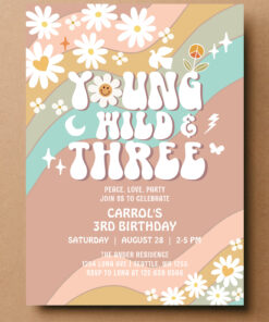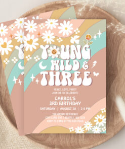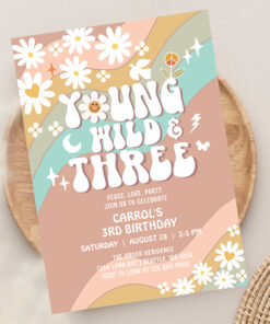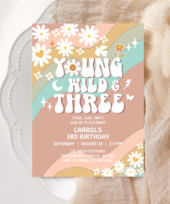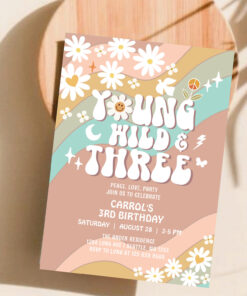 Groovy Young Wild And Three 3rd Birthday Invitation - Related products
