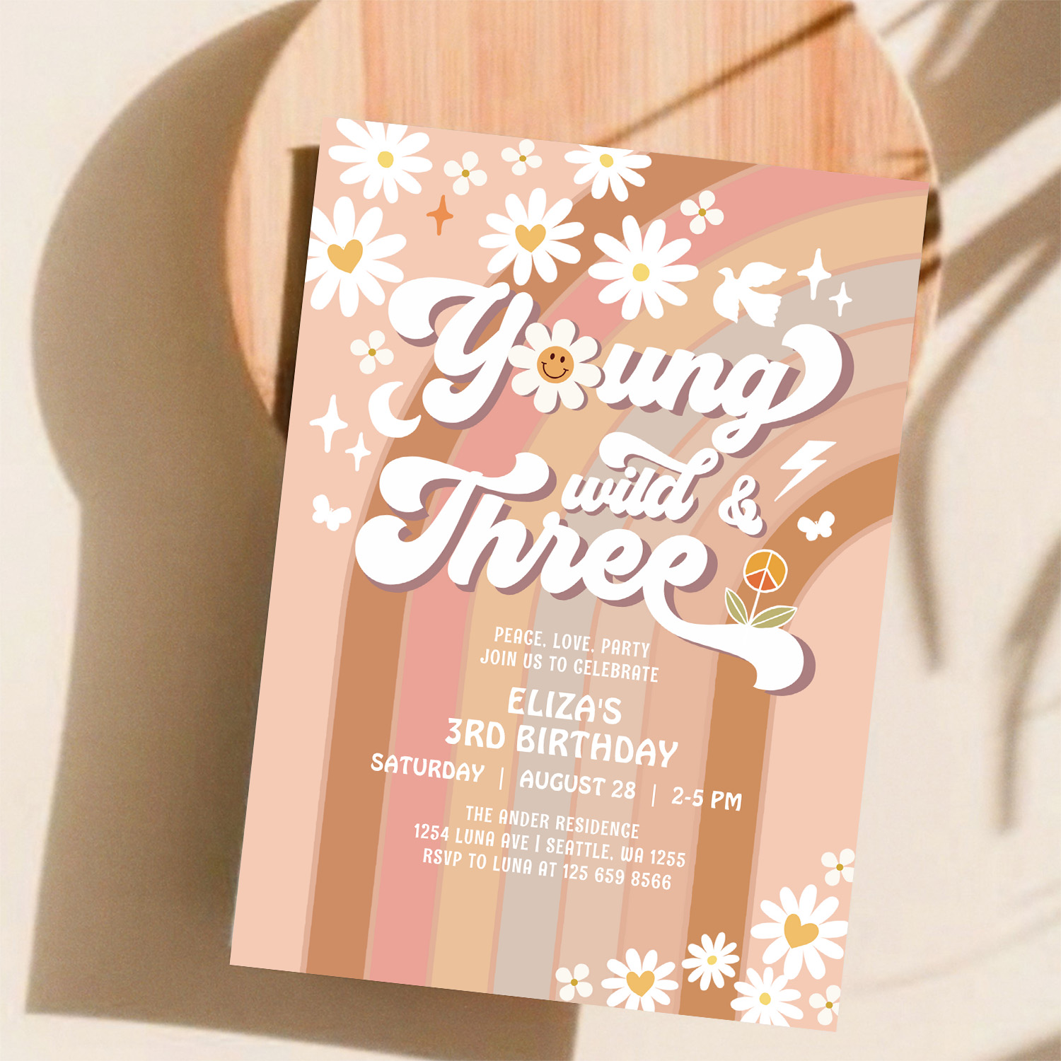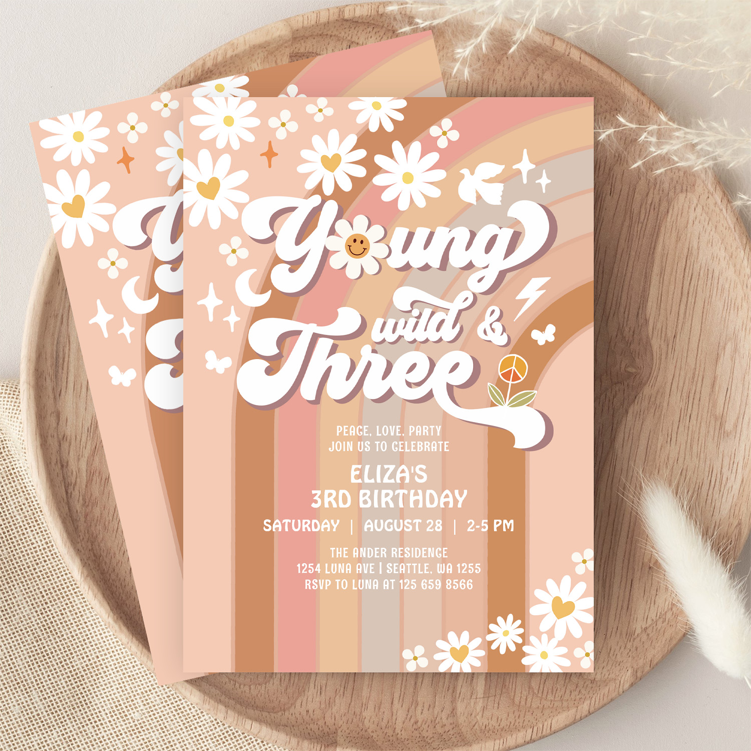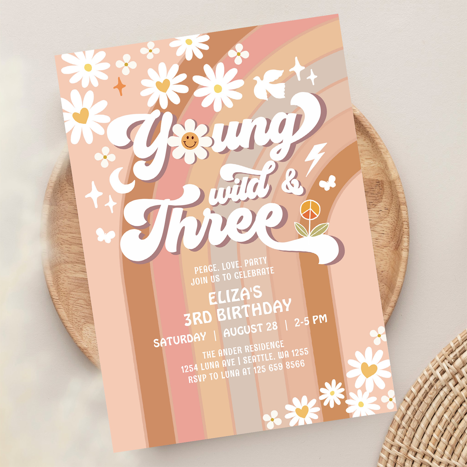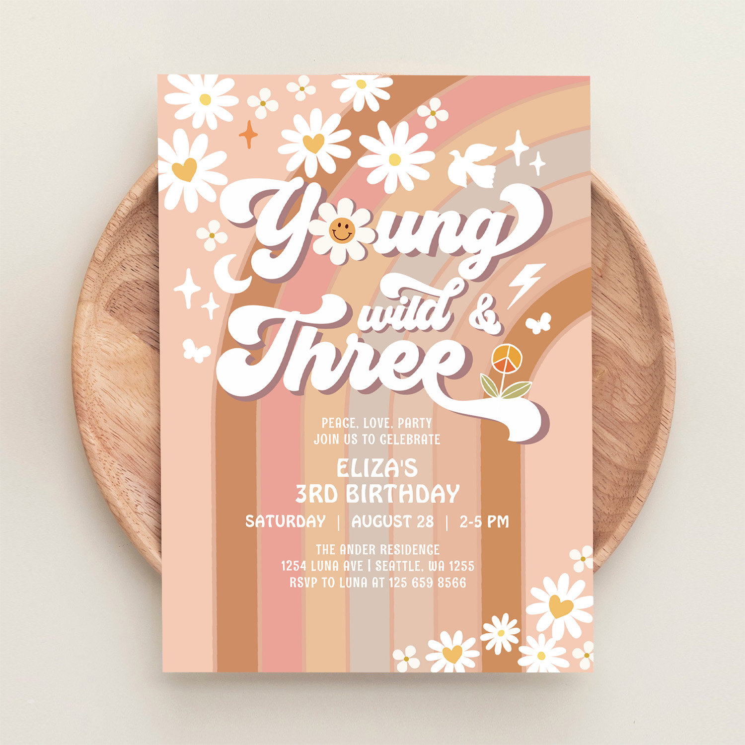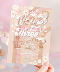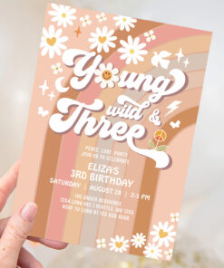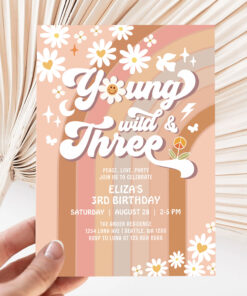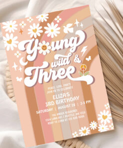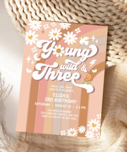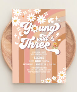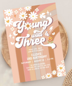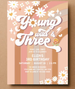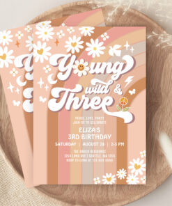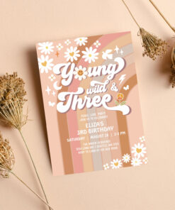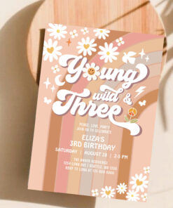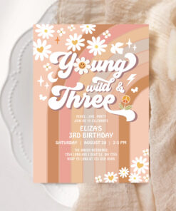 Groovy Young Wild And Three Mauve 3rd Birthday Invitation