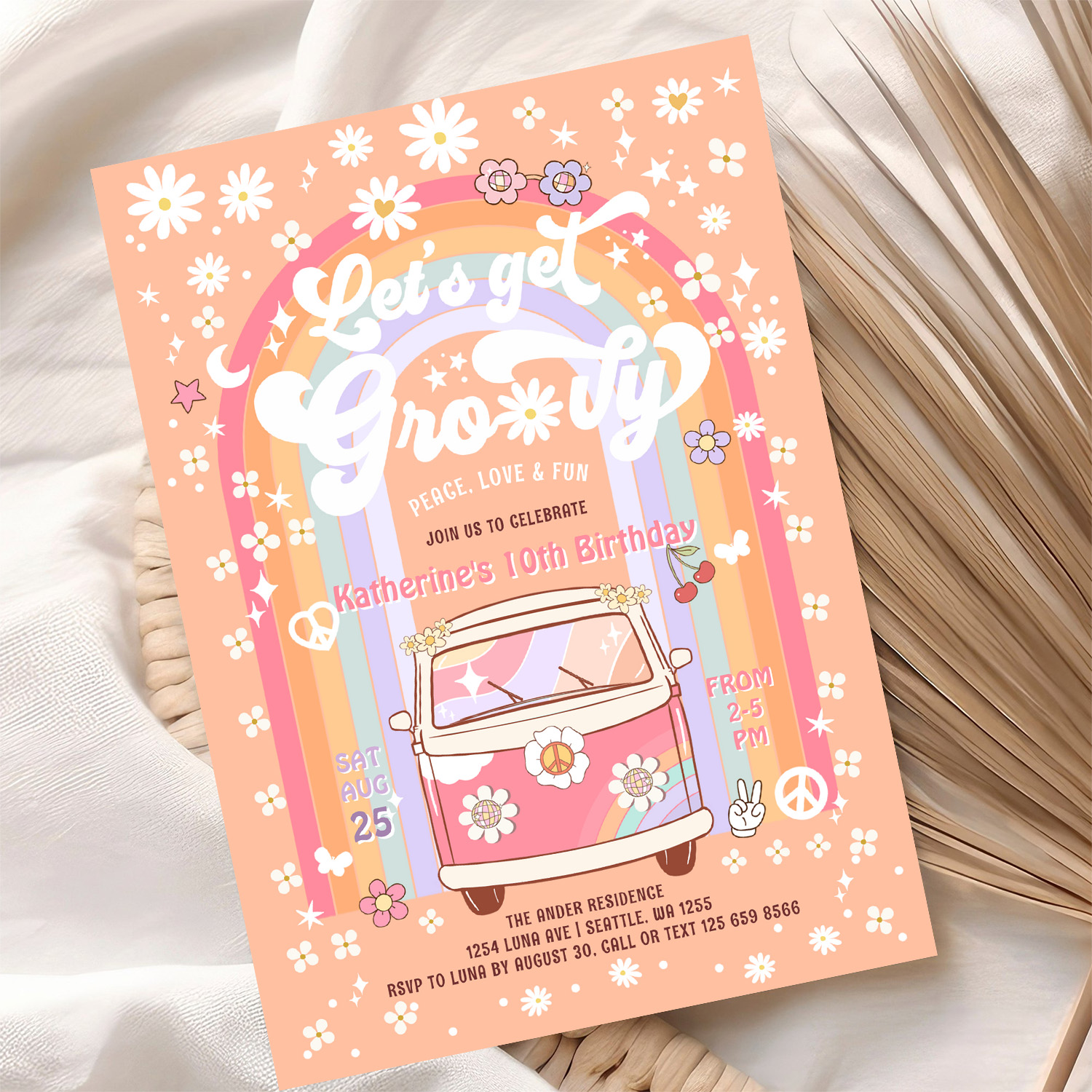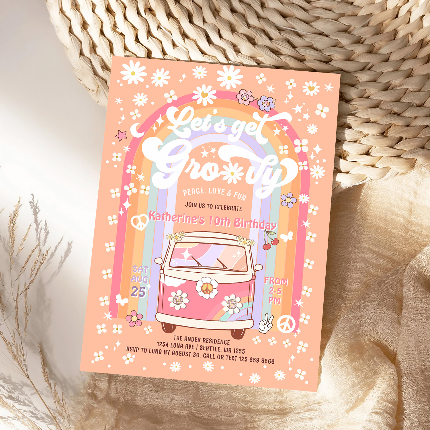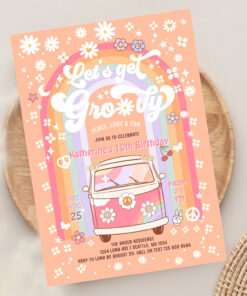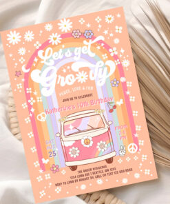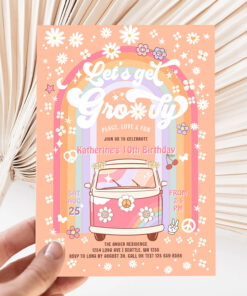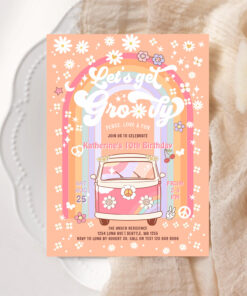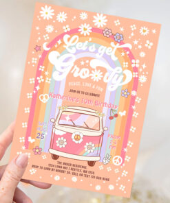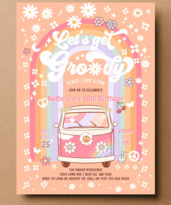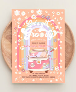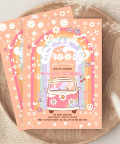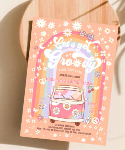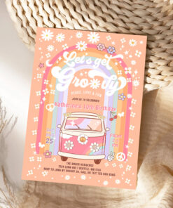 Lets Get Groovy Van Daisy Hippie 70S Birthday Invitation - Related products