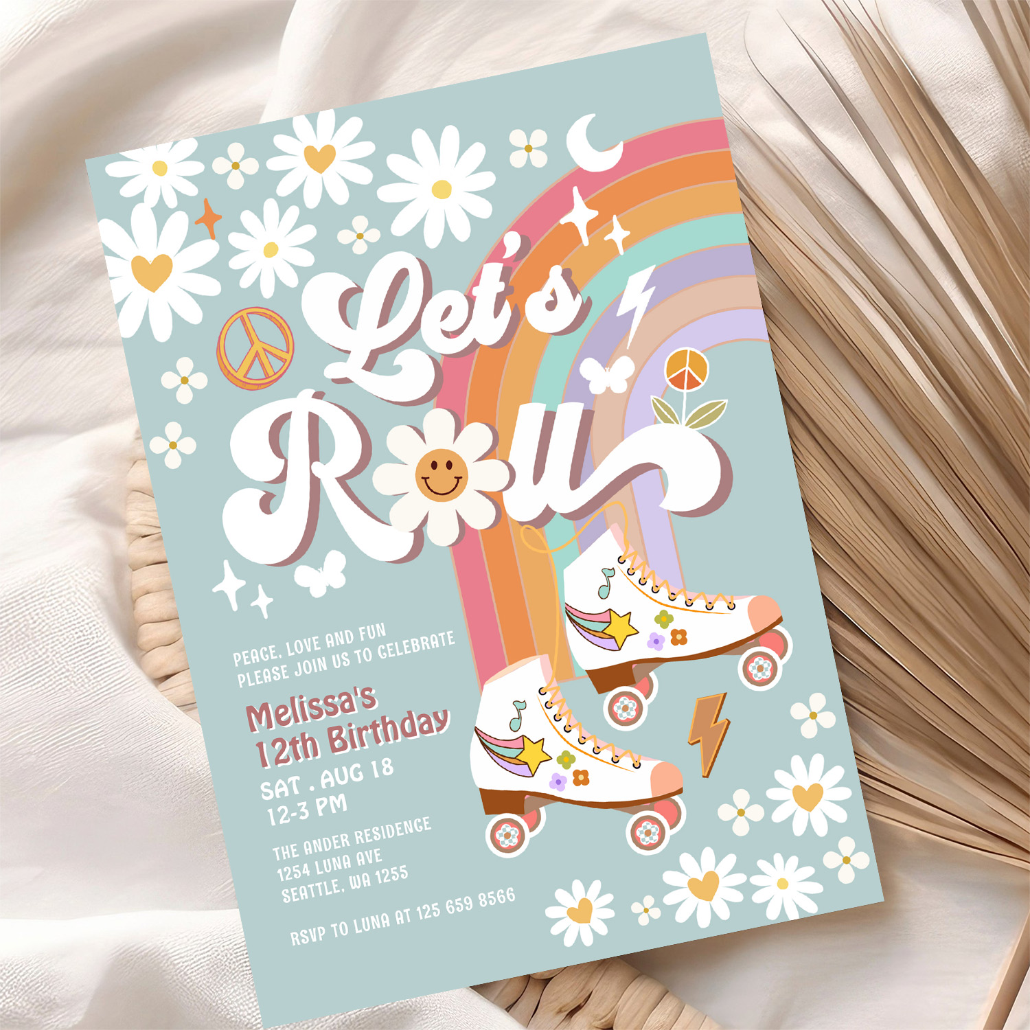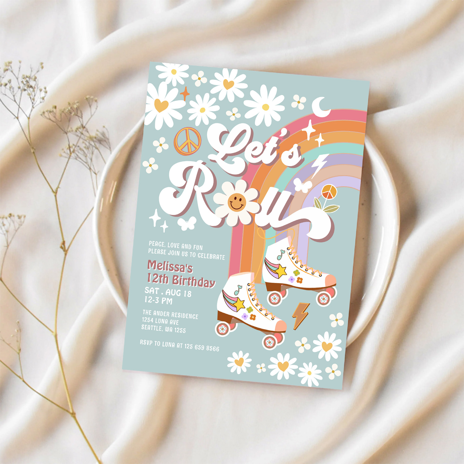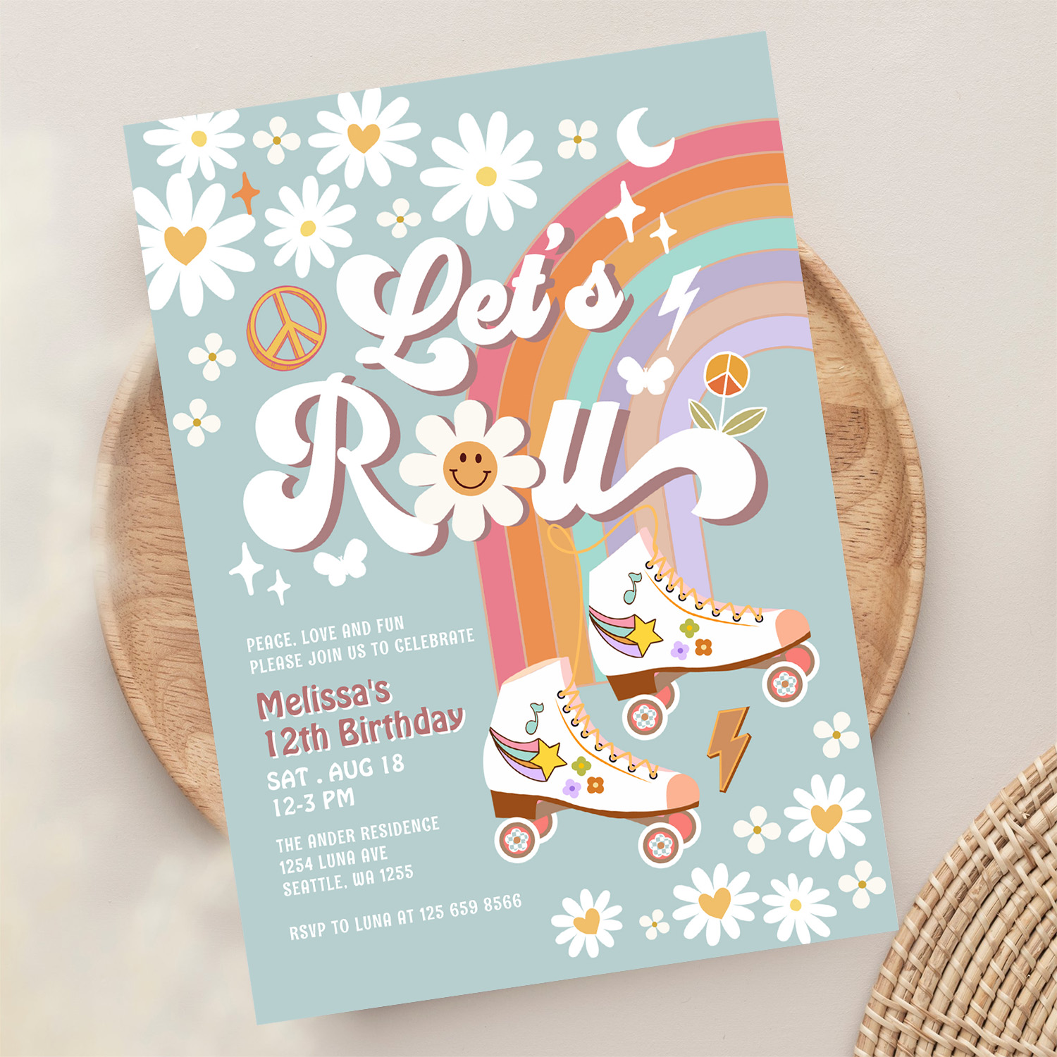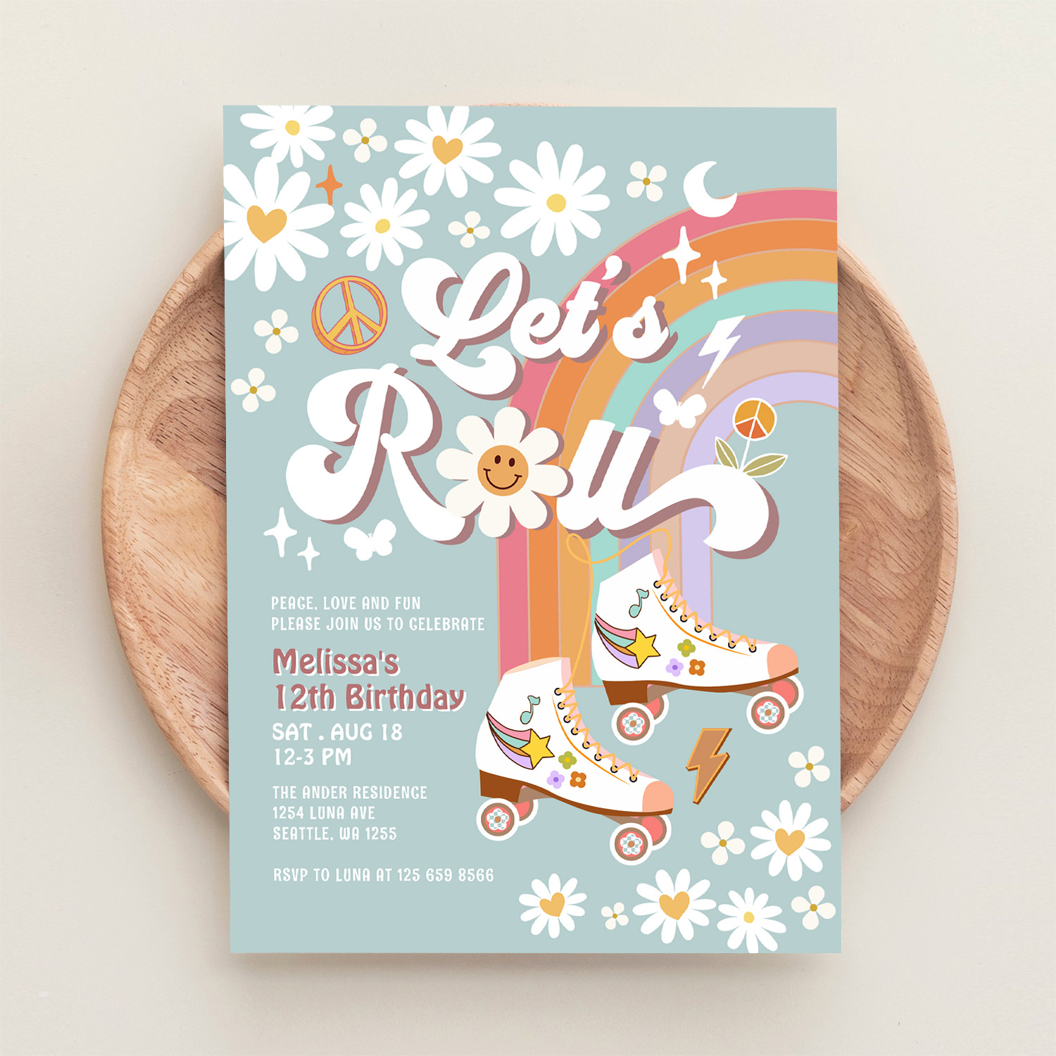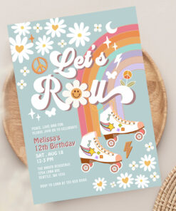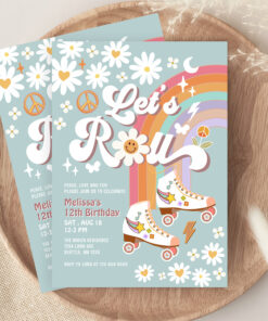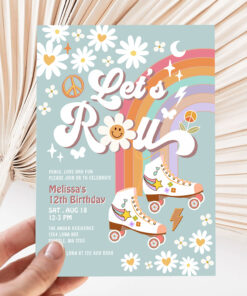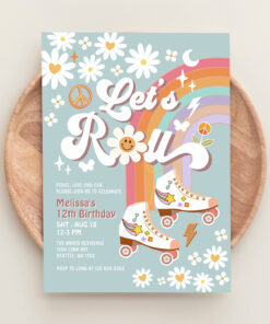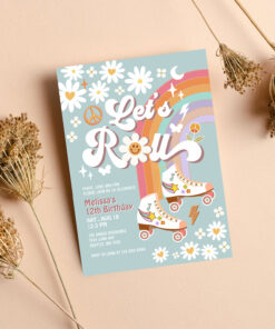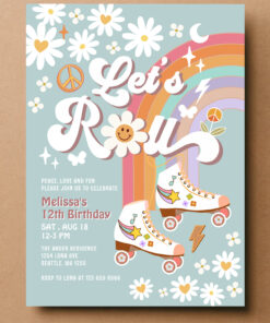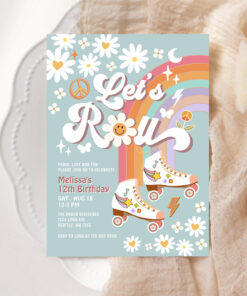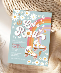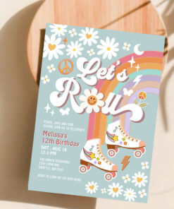 Lets Roll Retro Groovy Blue Roller Skate Birthday Invitation - Related products