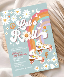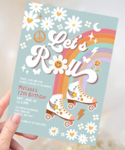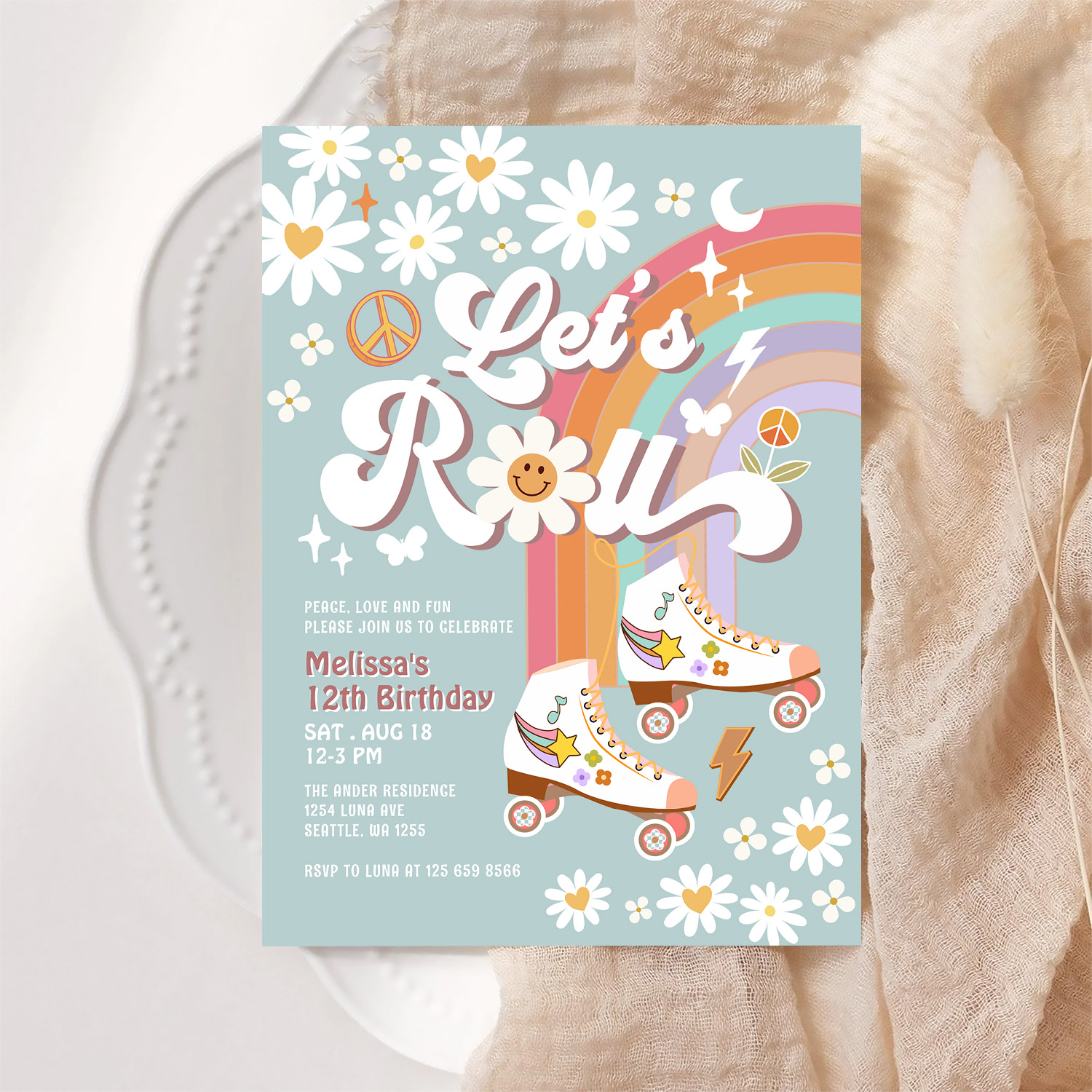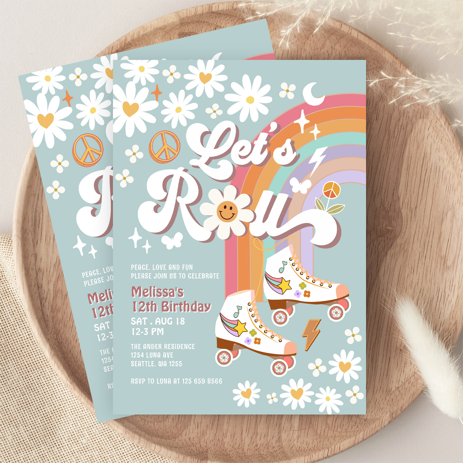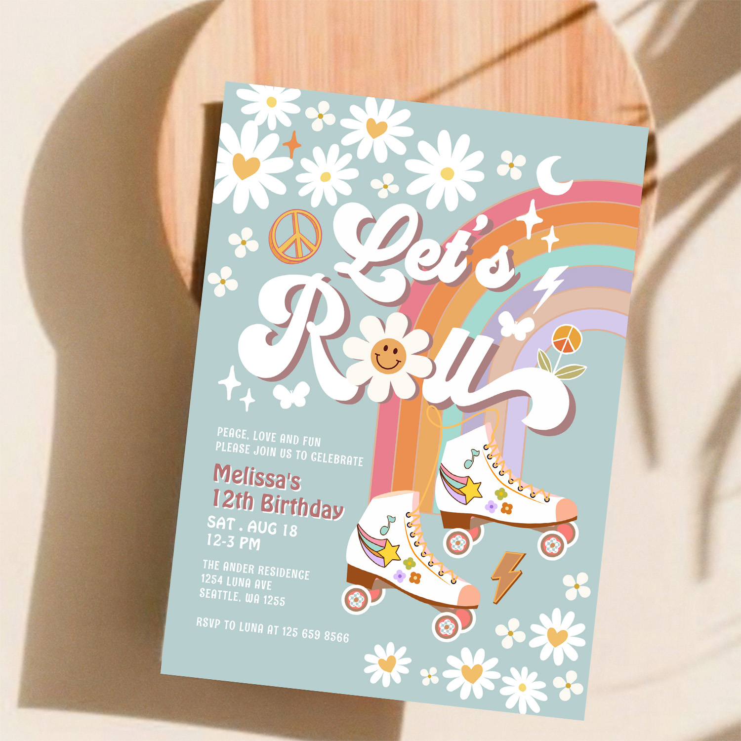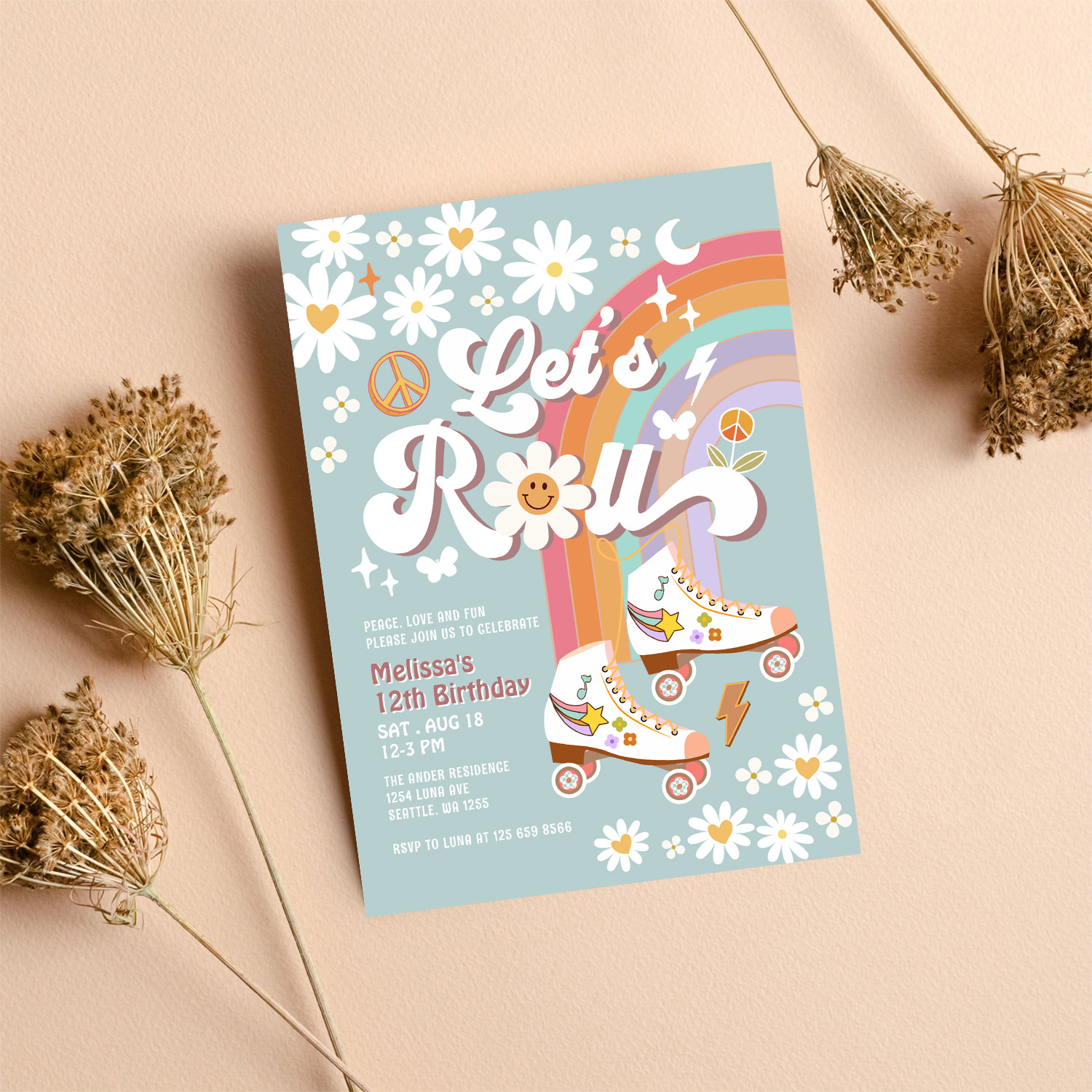 Lets Roll Retro Groovy Blue Roller Skate Birthday Invitation - Related products