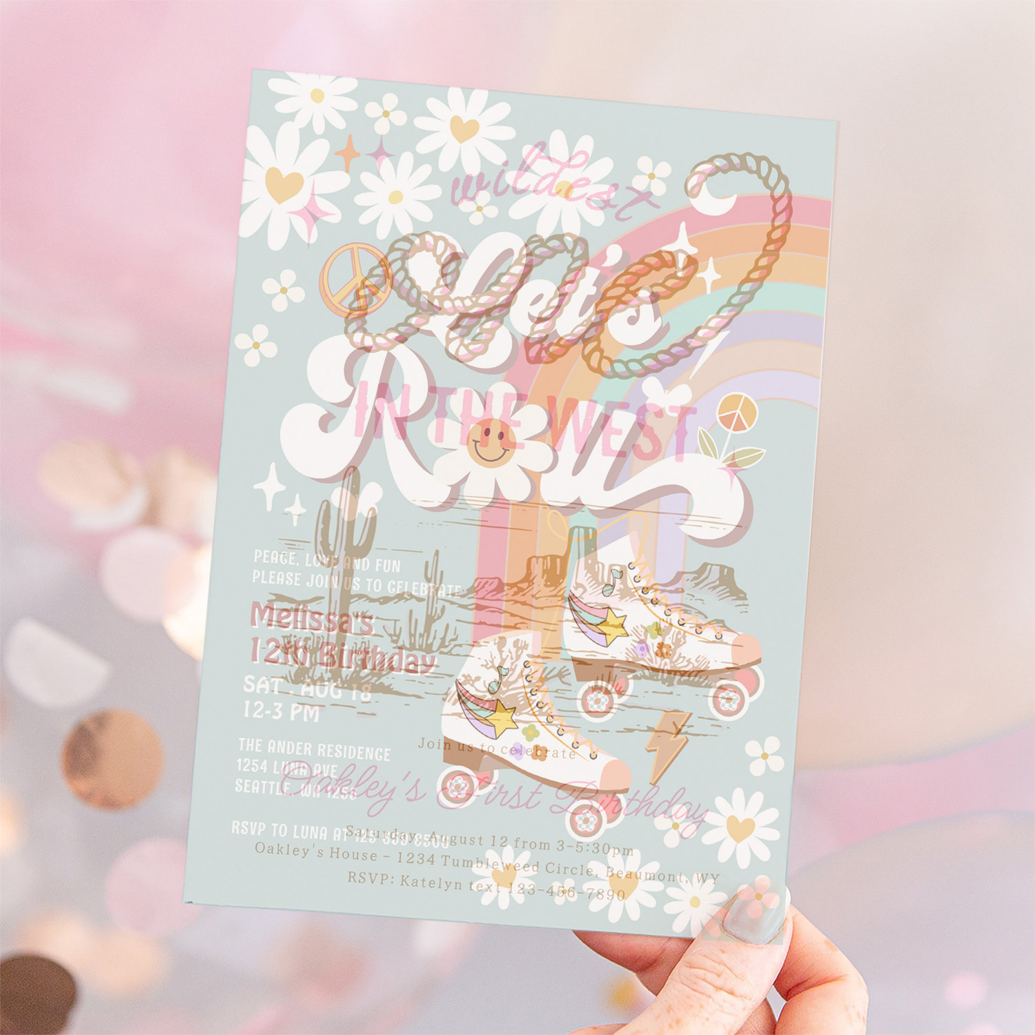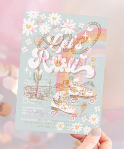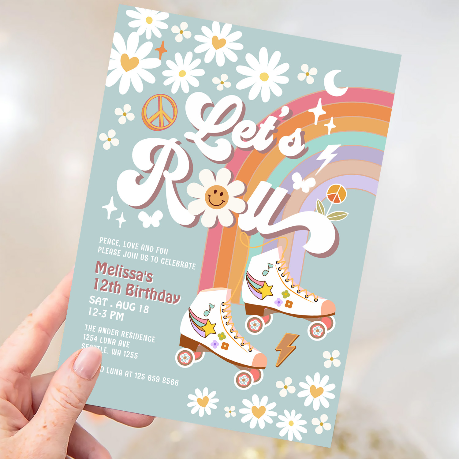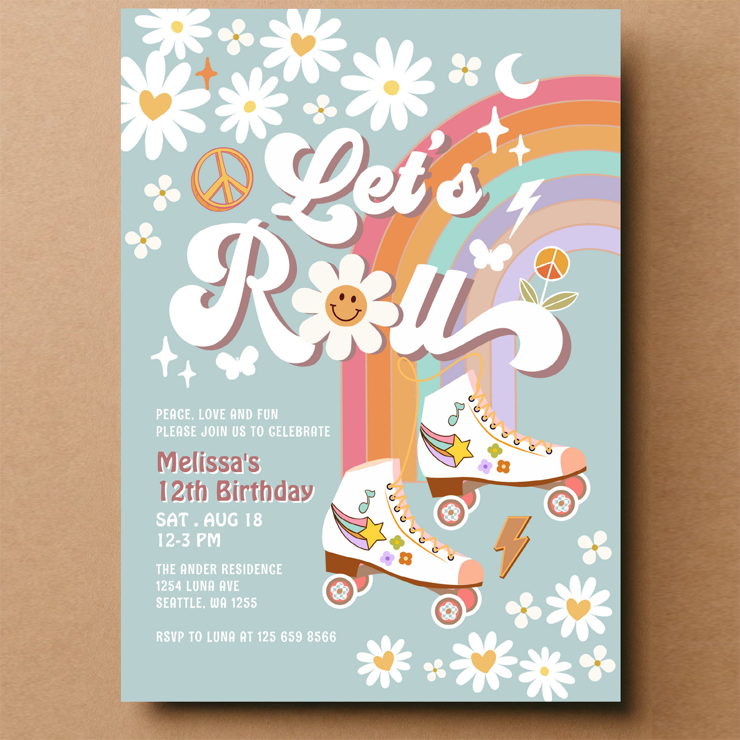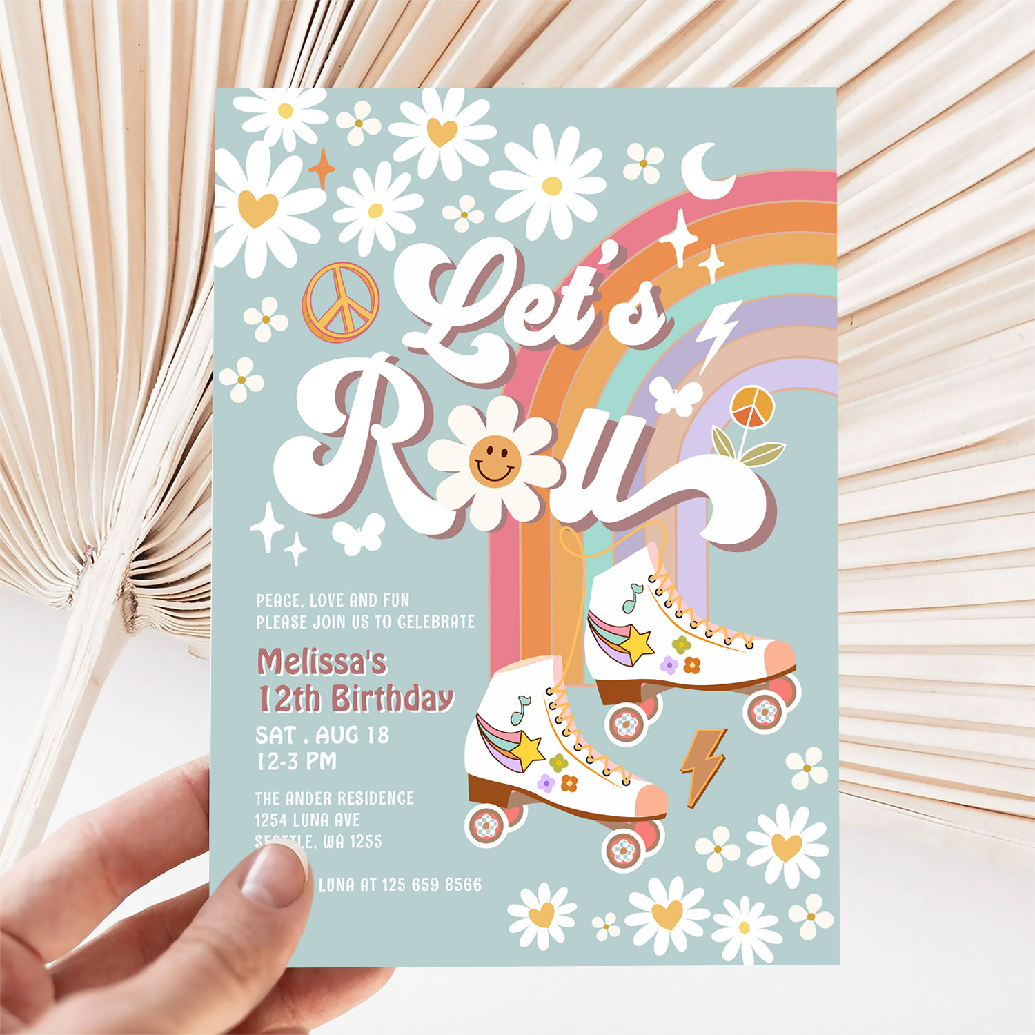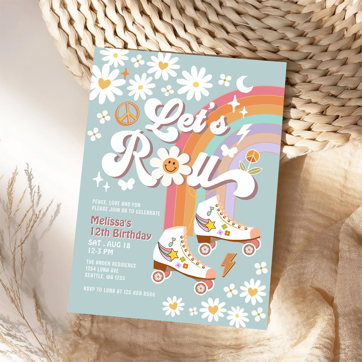 Lets Roll Retro Groovy Blue Roller Skate Birthday Invitation - Related products