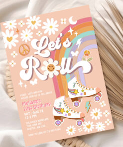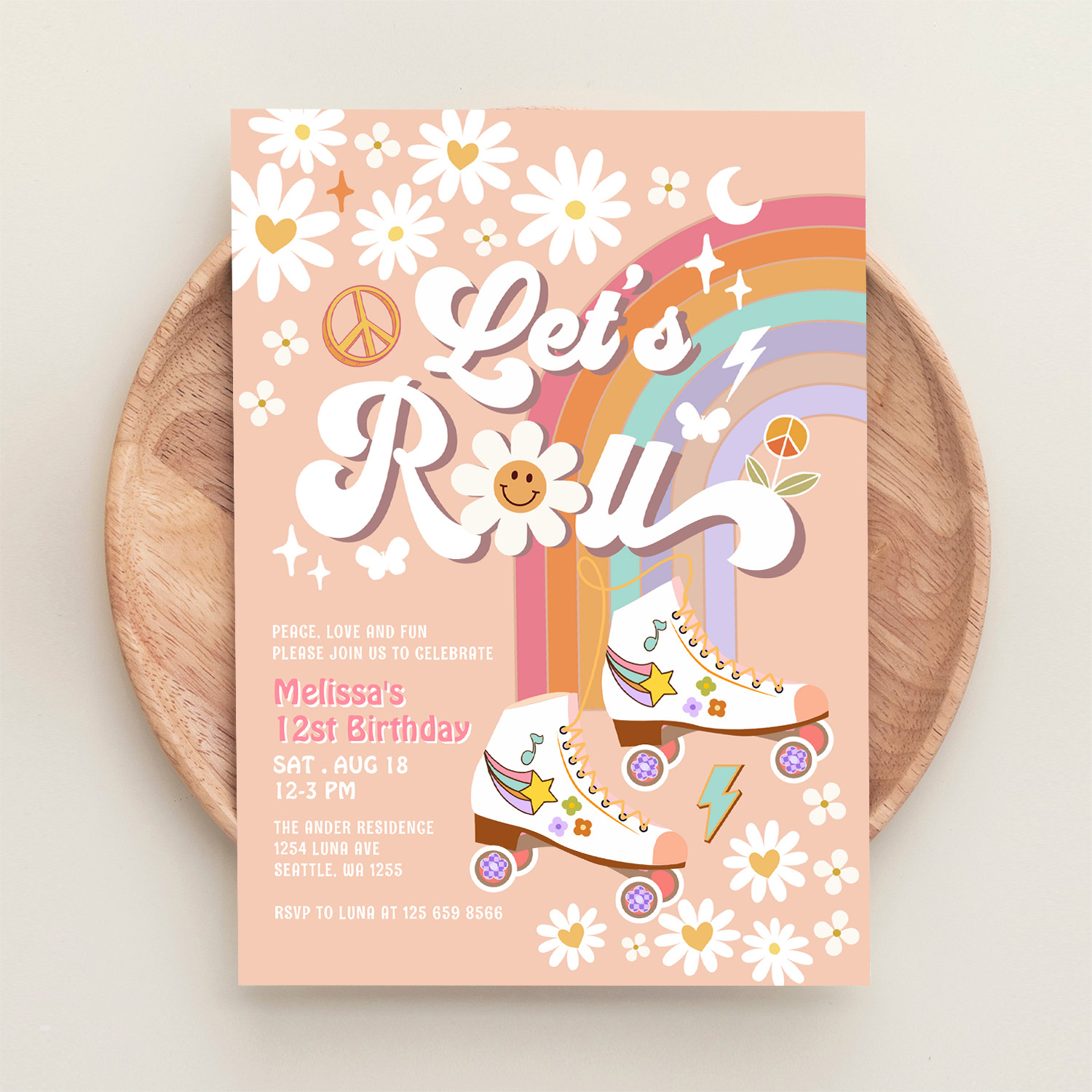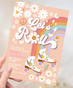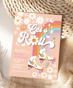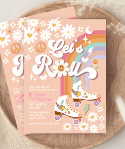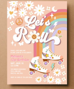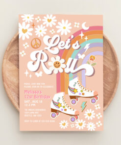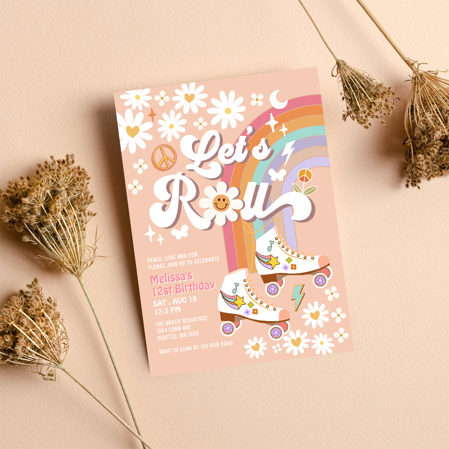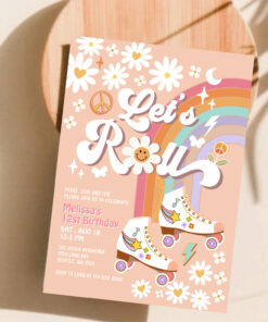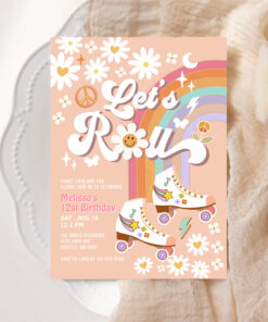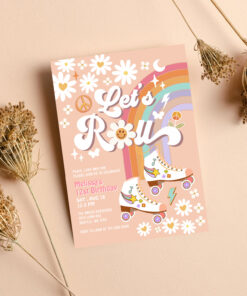 Lets Roll Retro Groovy Roller Skate Daisy Birthday Invitation - Related products